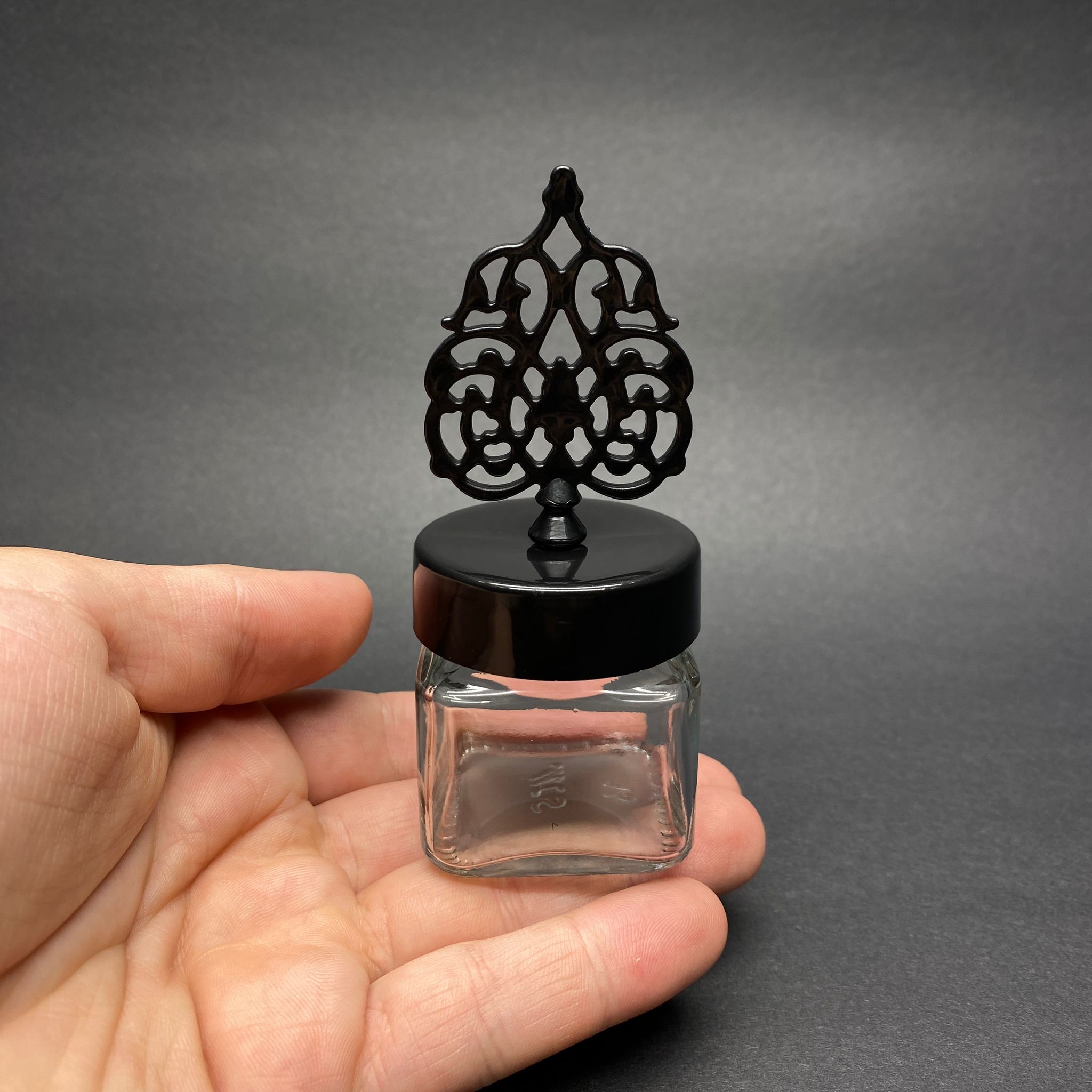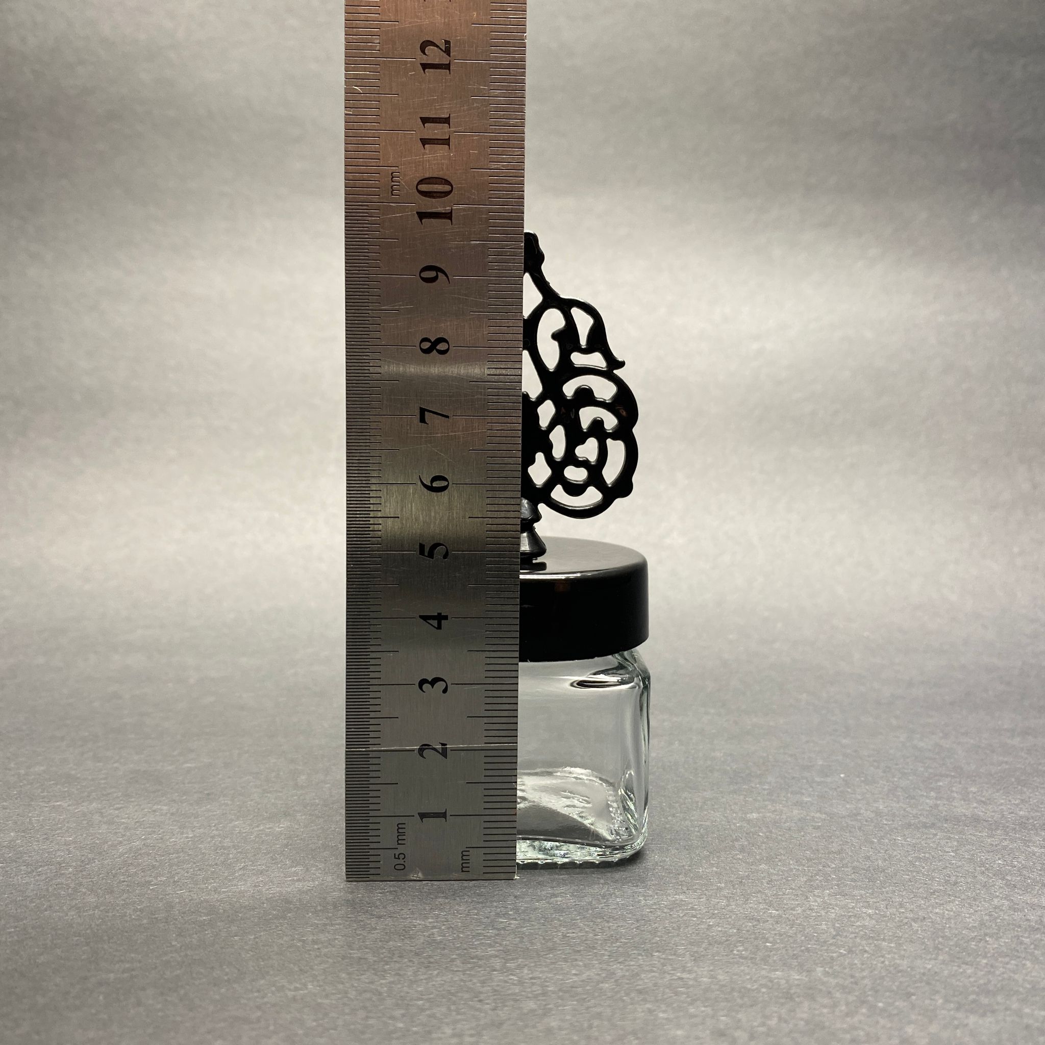 40 CC KARE KAVANOZ - SİYAH GÜNEŞ TEPELİKLİ KUBBELİ TUĞRALI KAPAK - 40 ML KÖŞELİ CAM KAVANOZ - 220 adet