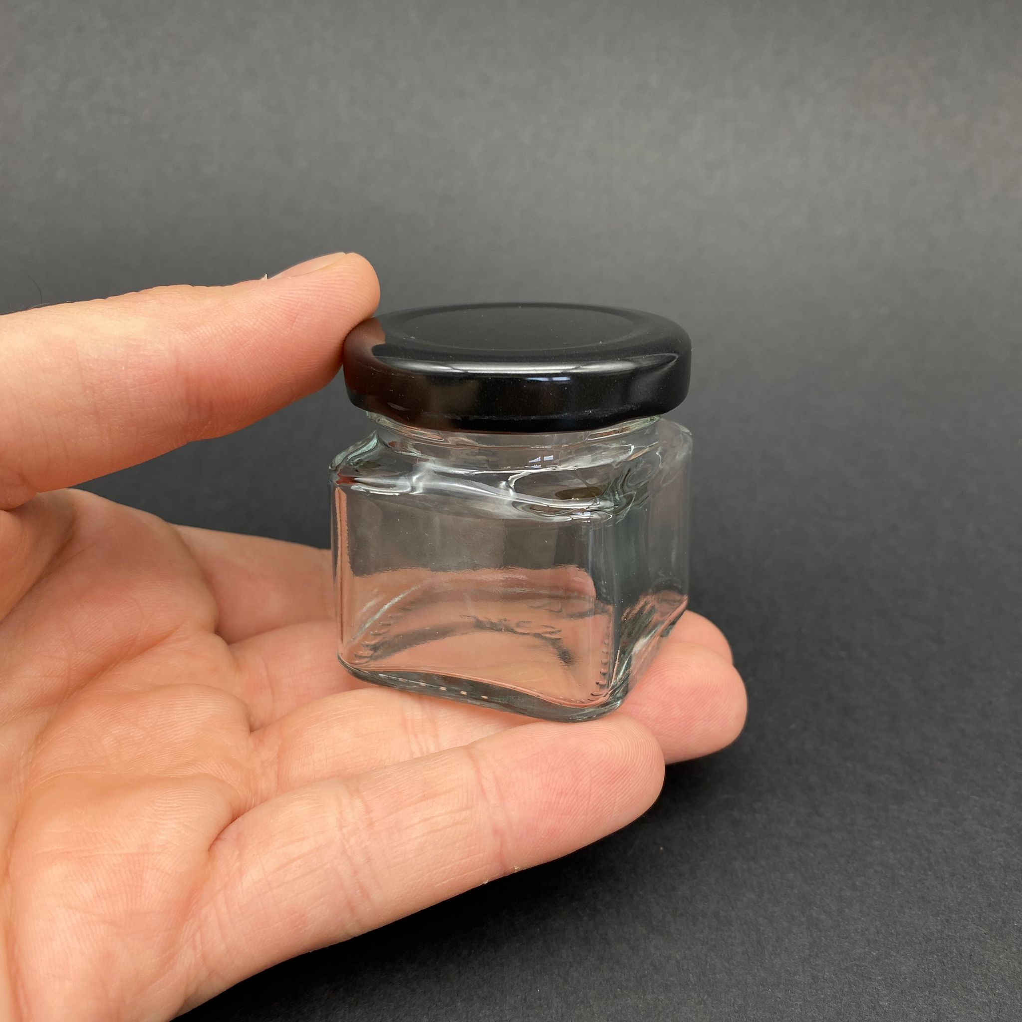 40 CC KARE KAVANOZ - SİYAH METAL KAPAKLI - 40 ML KÖŞELİ TİP CAM KAVANOZ - 220 adet