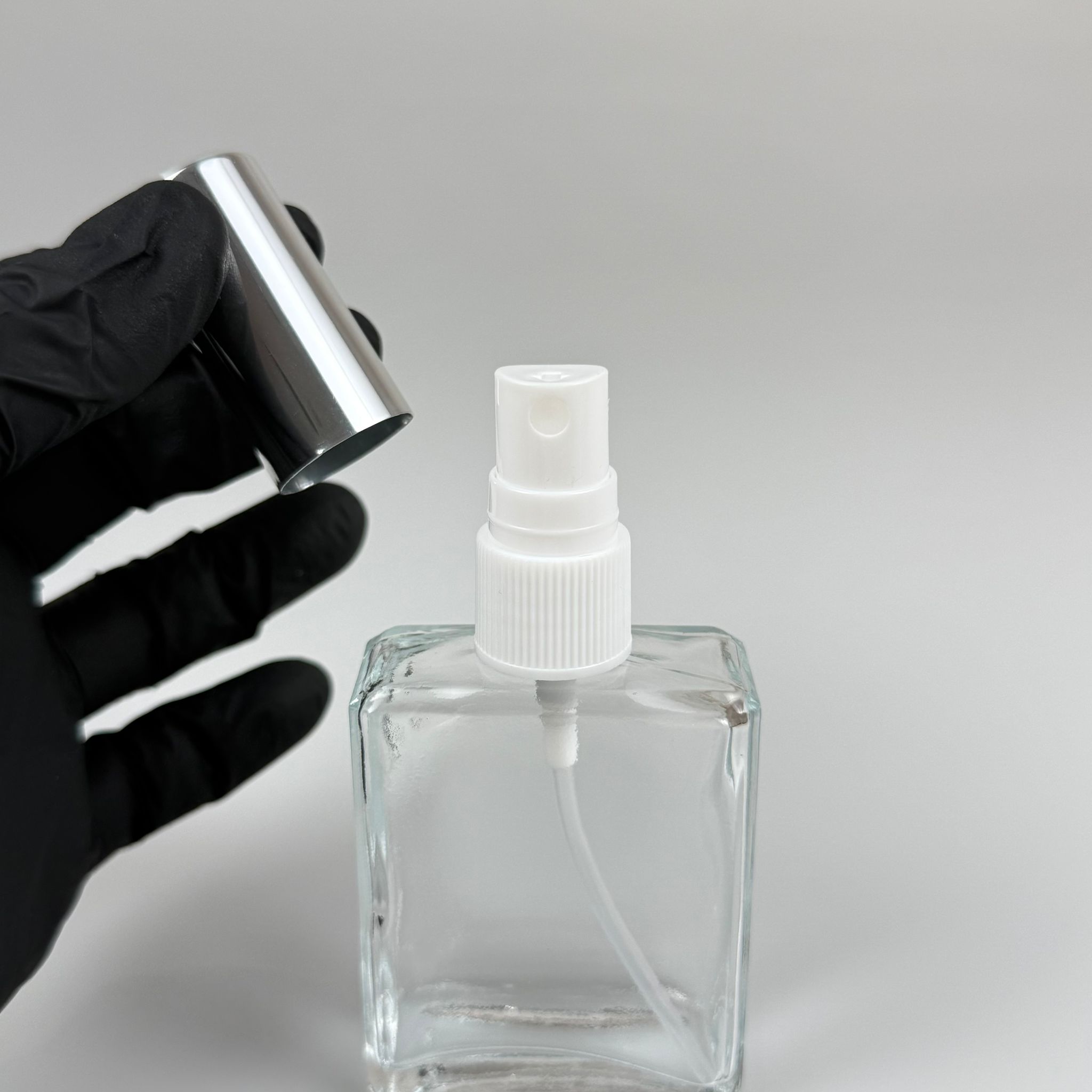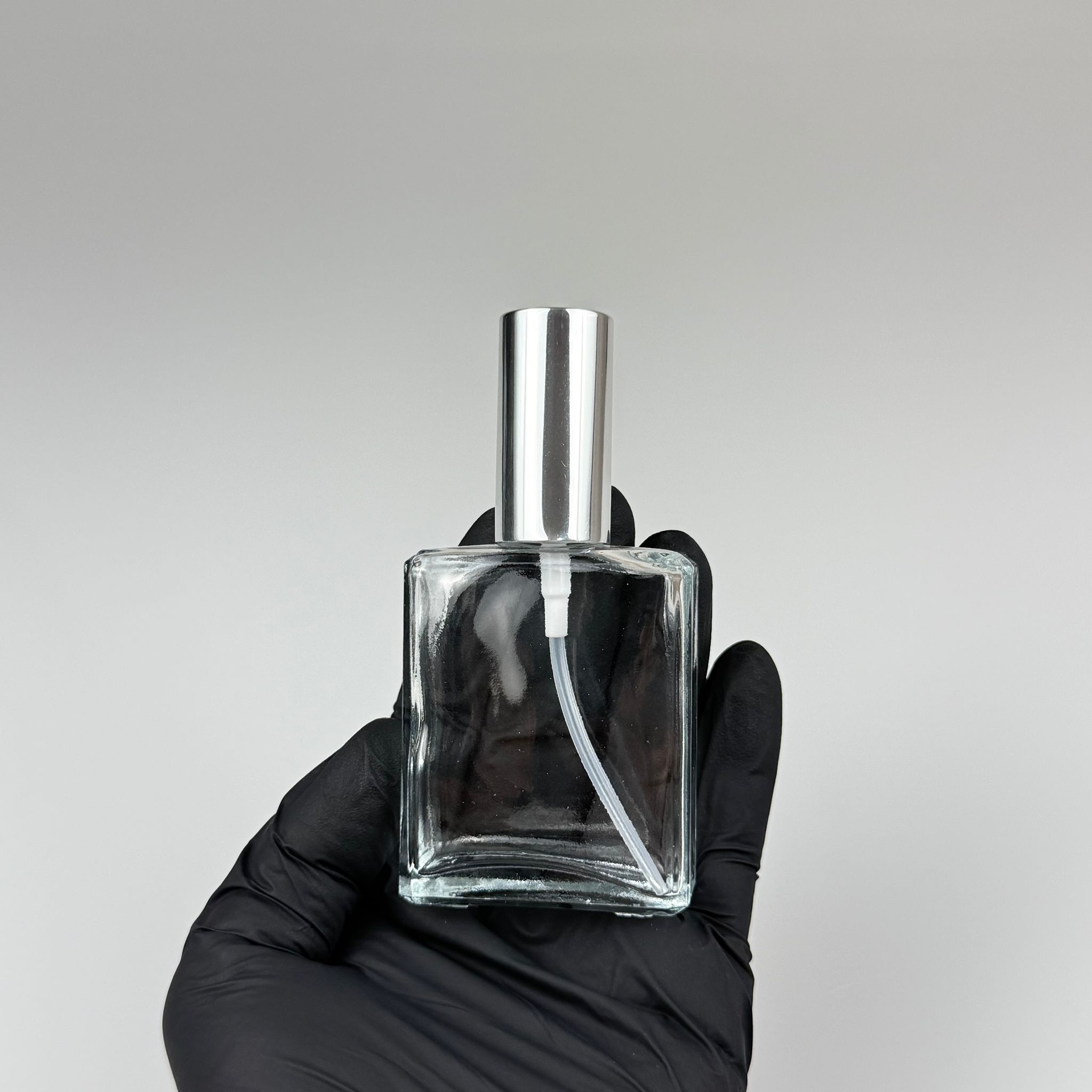 40 CC YASSI DİKDÖRTGEN KISA CAM ŞİŞE - VİDALI GÜMÜŞ SPREYLİ PARFÜM KOLONYA ŞİŞESİ TAKIM - 40 ML PRESTİJLİ ŞİŞE - 330 adet