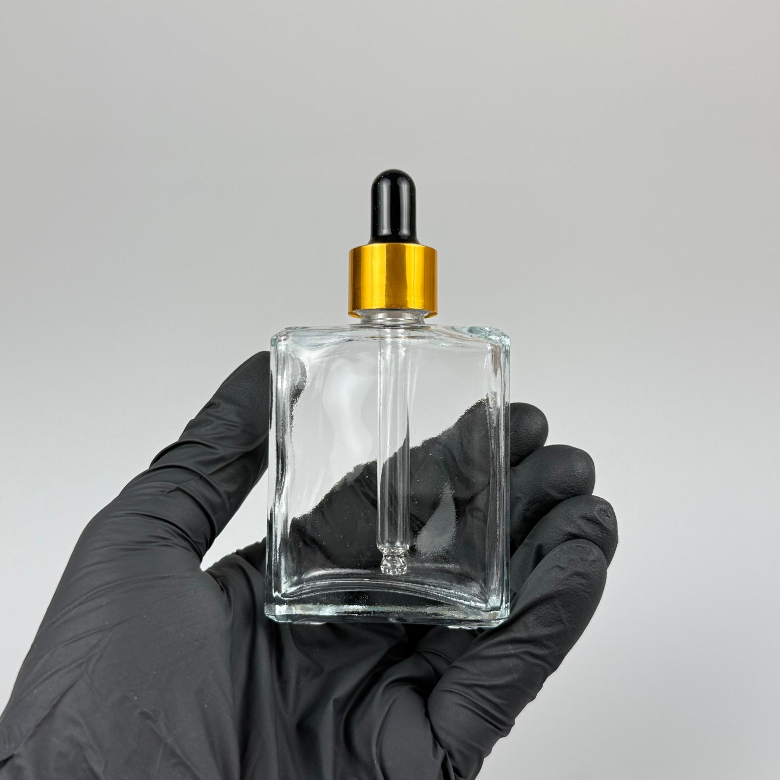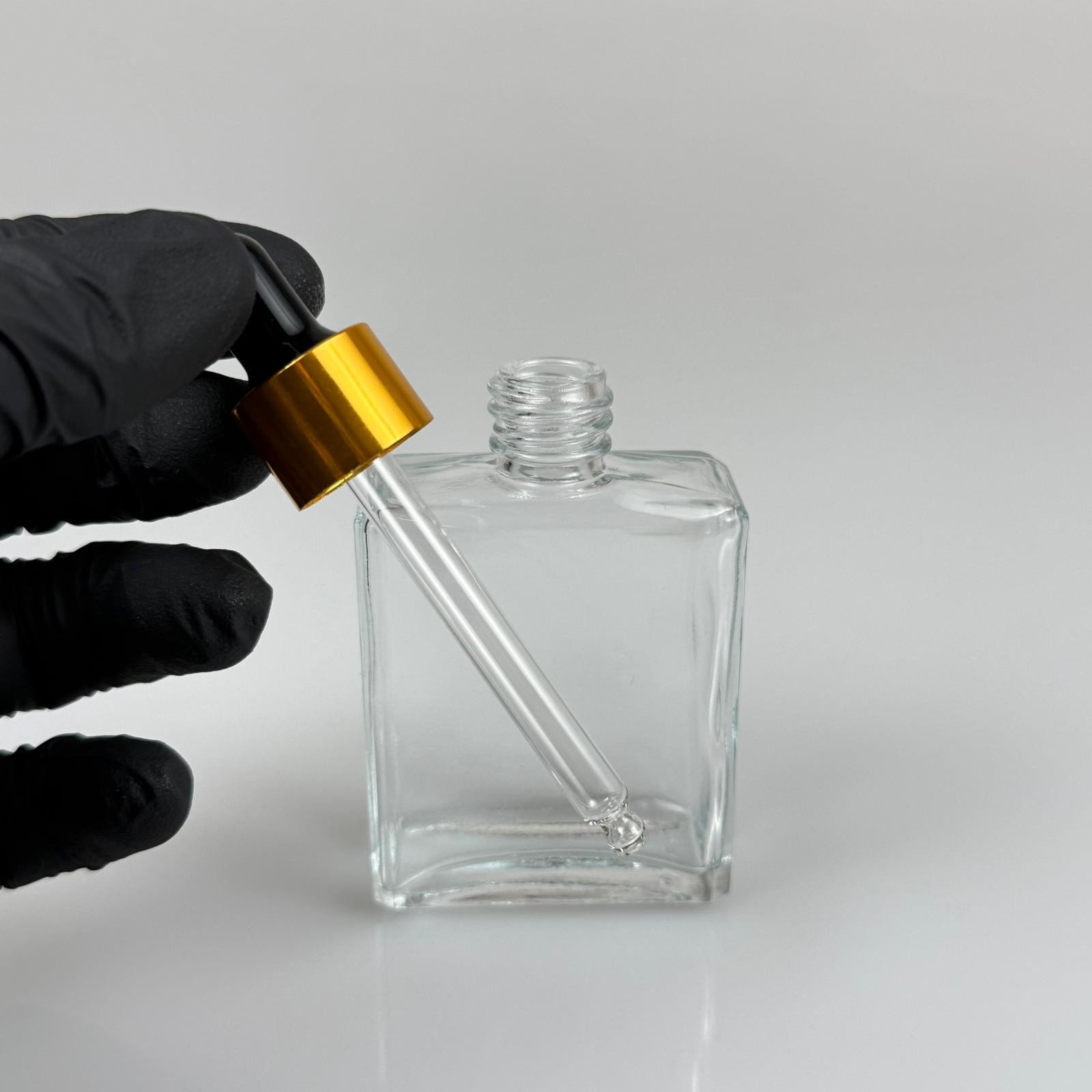 40 CC YASSI DİKDÖRTGEN KÖŞELİ KISA PRESTİJLİ CAM DAMLALIKLI ŞİŞE - SİYAH EMZİK - GOLD METALİK KAPAK - 40 ML CAM DAMLALIKLI ŞİŞE - DAMLALIKLI BOŞ ŞİŞE - 330 adet