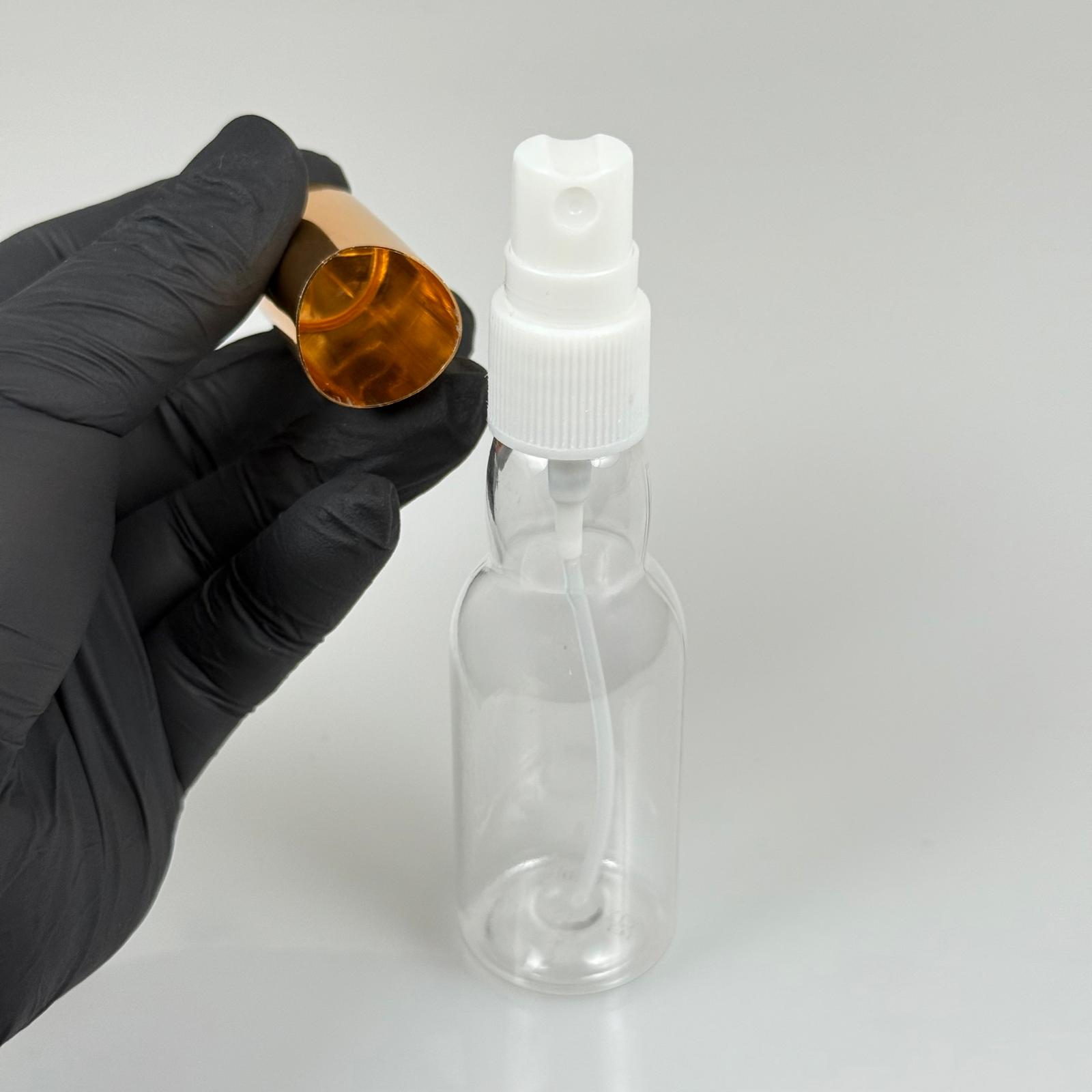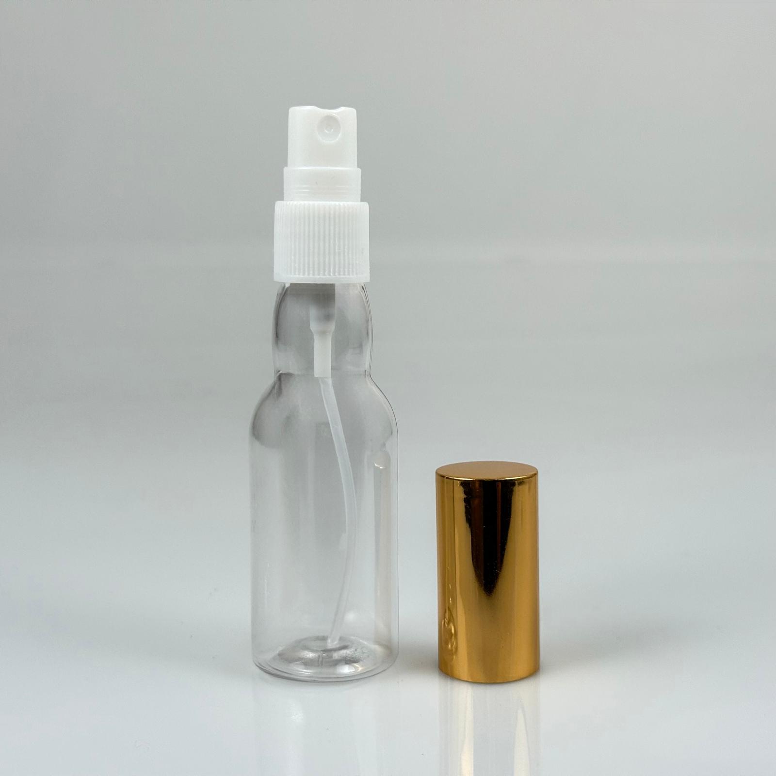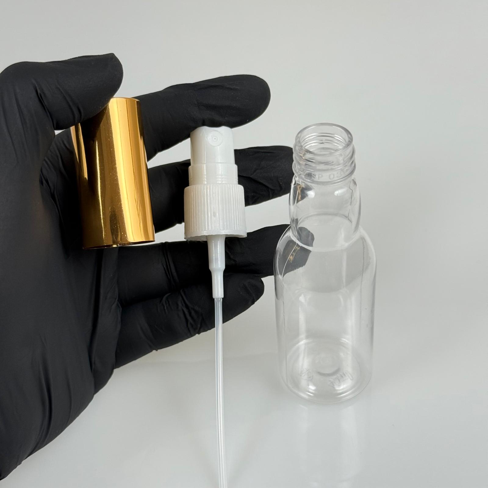 40 ML PET KOLONYA, PARFÜM VB ŞİŞELERİ - METAL ALÜMİNYUM GOLD KAPAK + VİDALI SPREY + 40 CC BOĞAZLI ŞİŞE SET TAKIM - 1000 adet