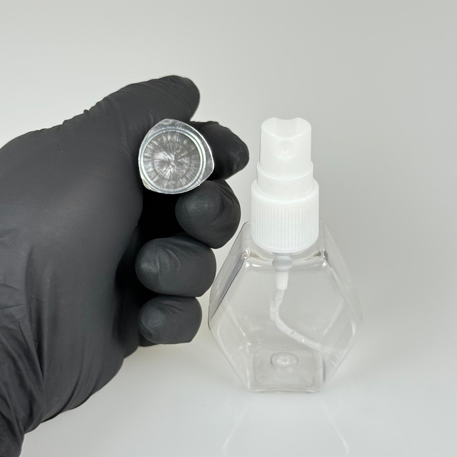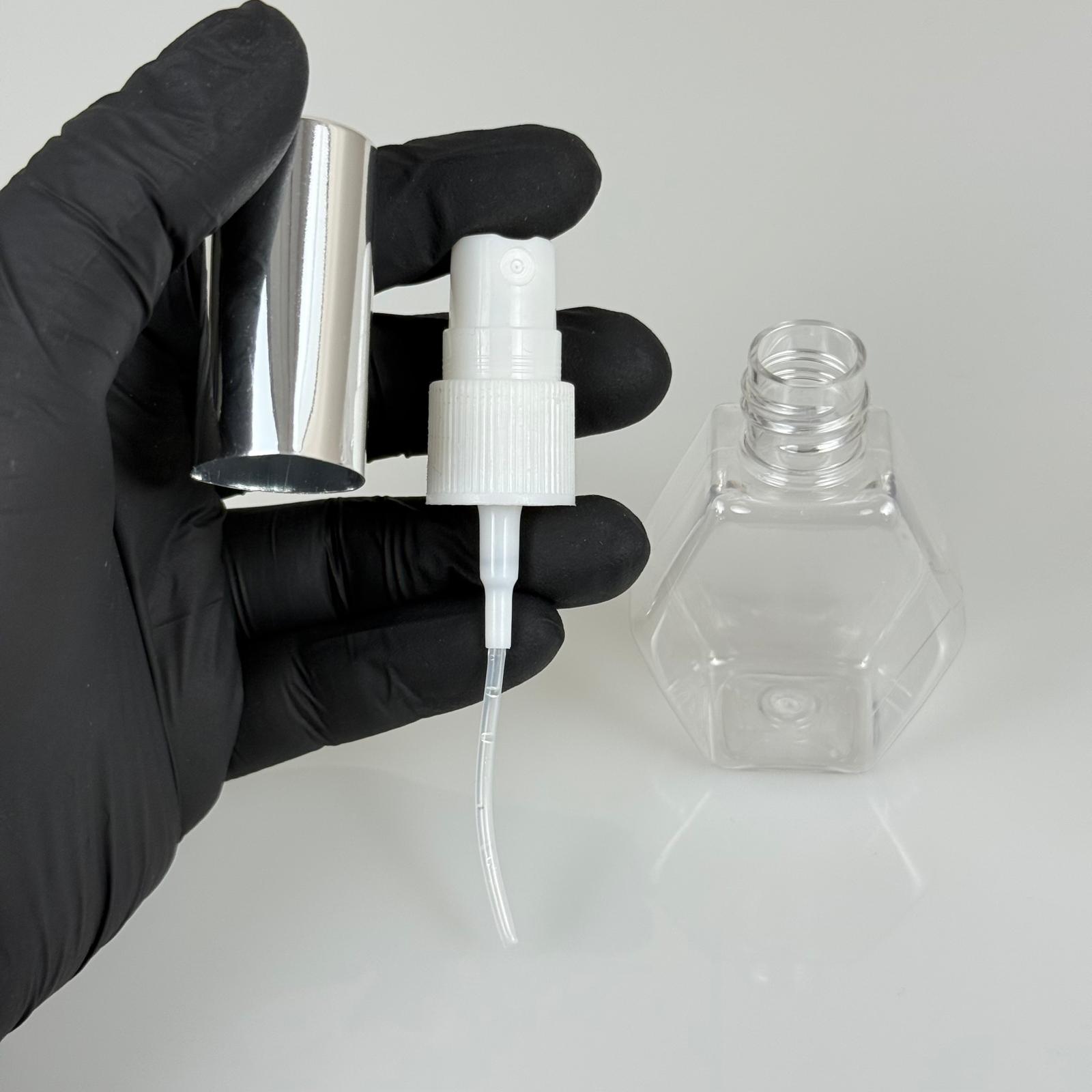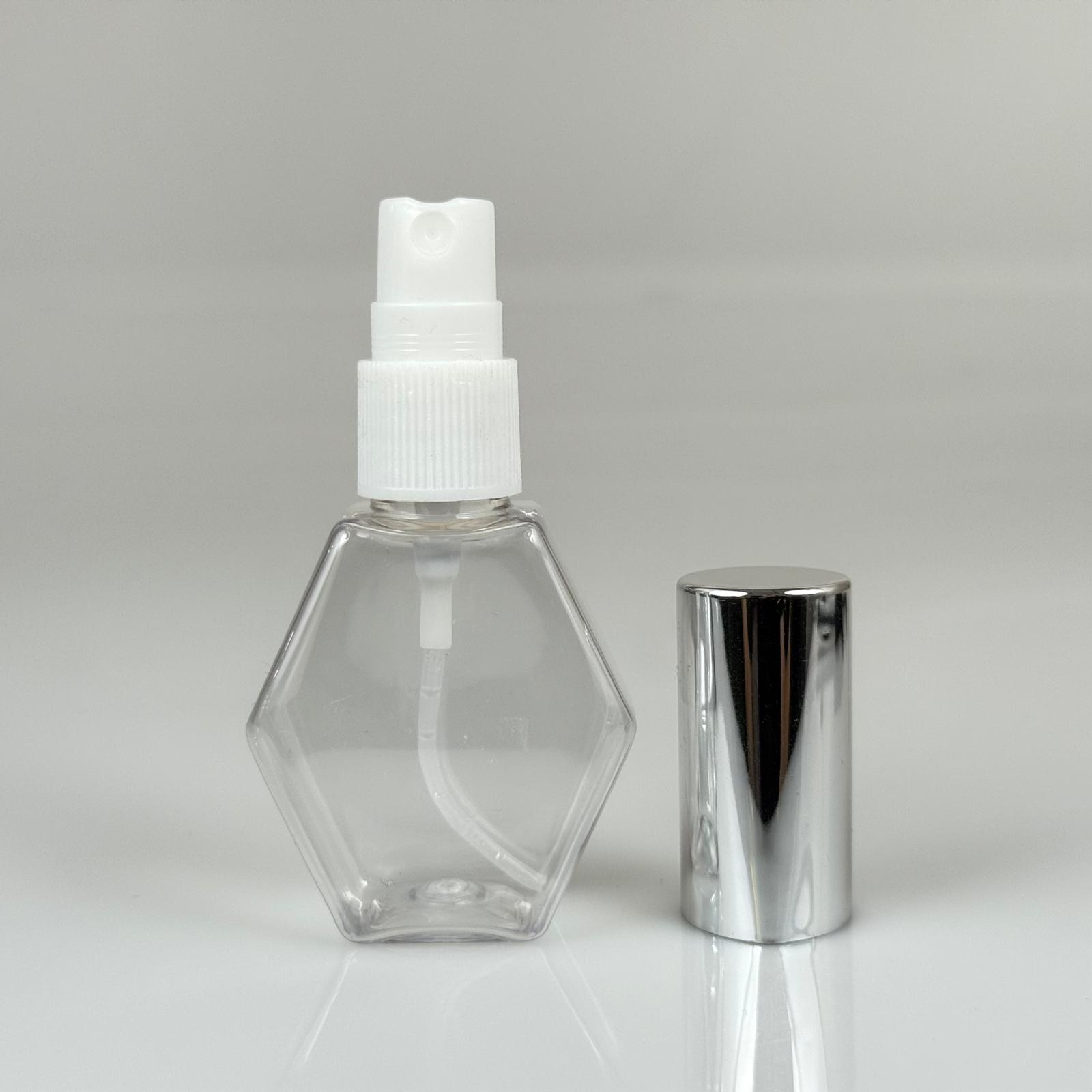 40 ML PET KOLONYA, PARFÜM VB ŞİŞELERİ - METAL ALÜMİNYUM GÜMÜŞ KAPAK + VİDALI SPREY + 40 CC ALTIGEN ŞİŞE SET TAKIM - 1000 adet