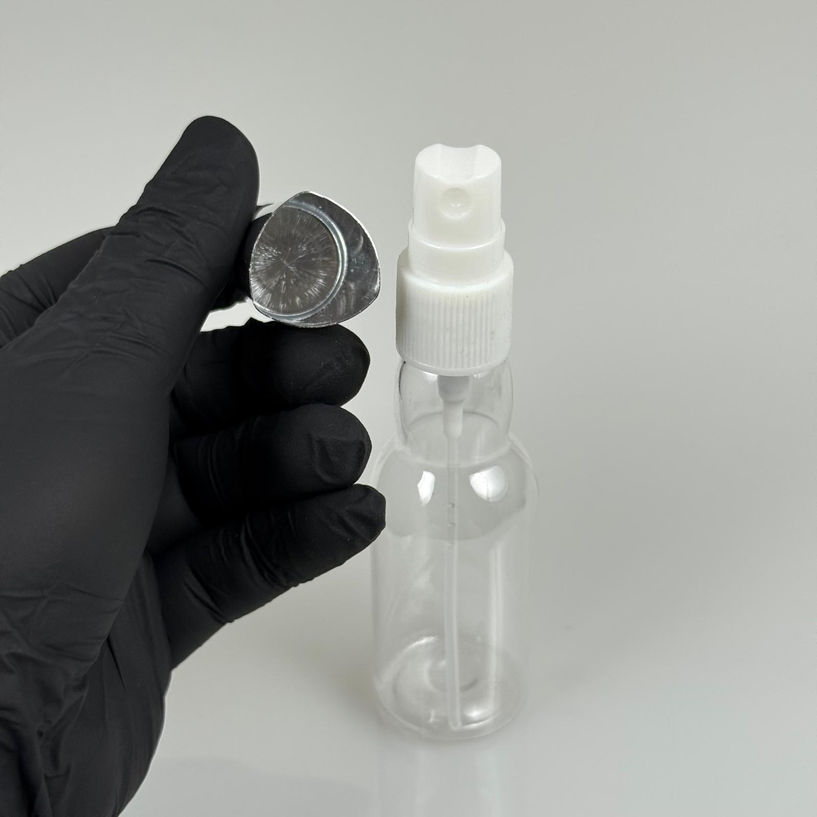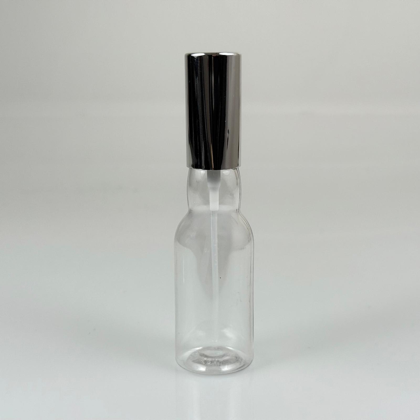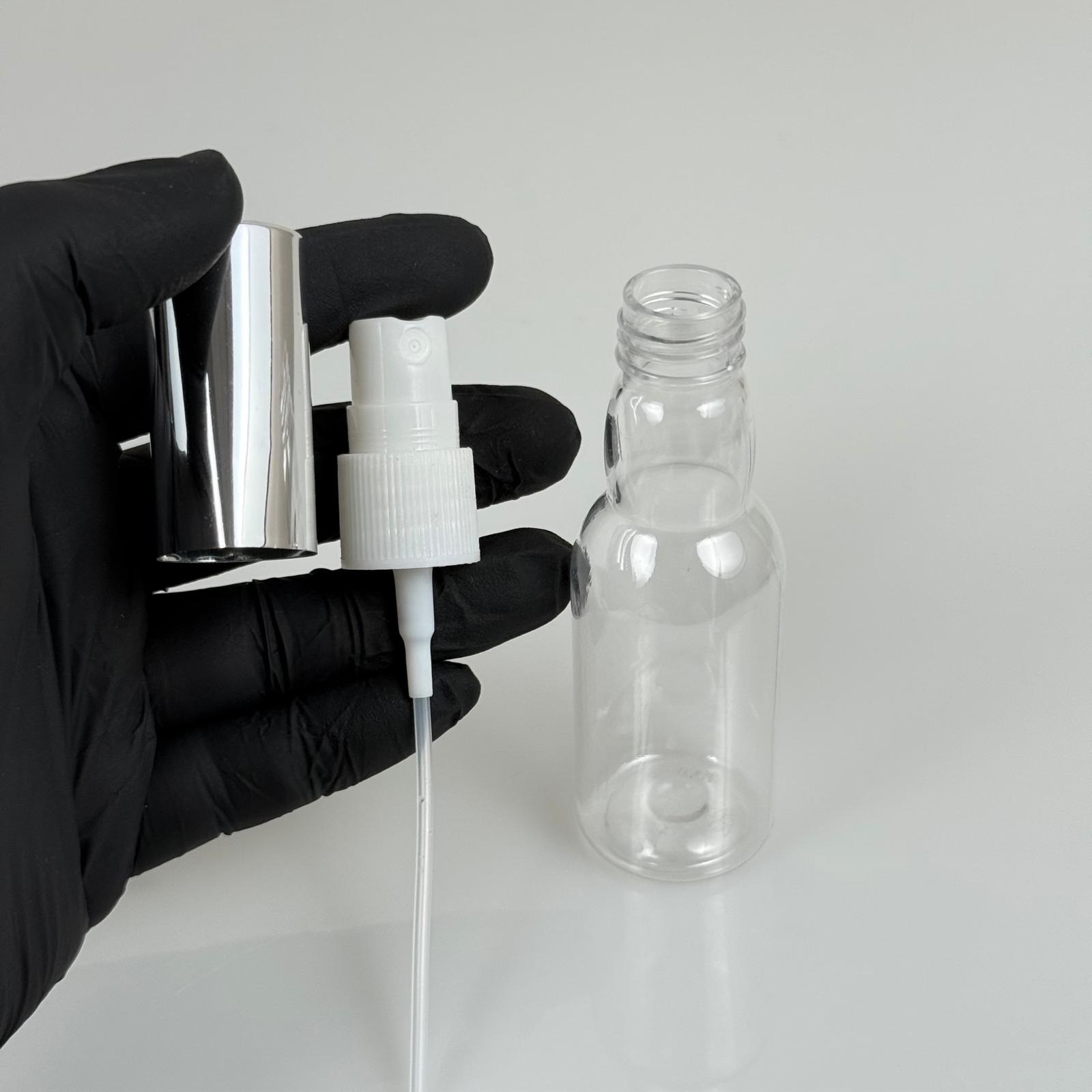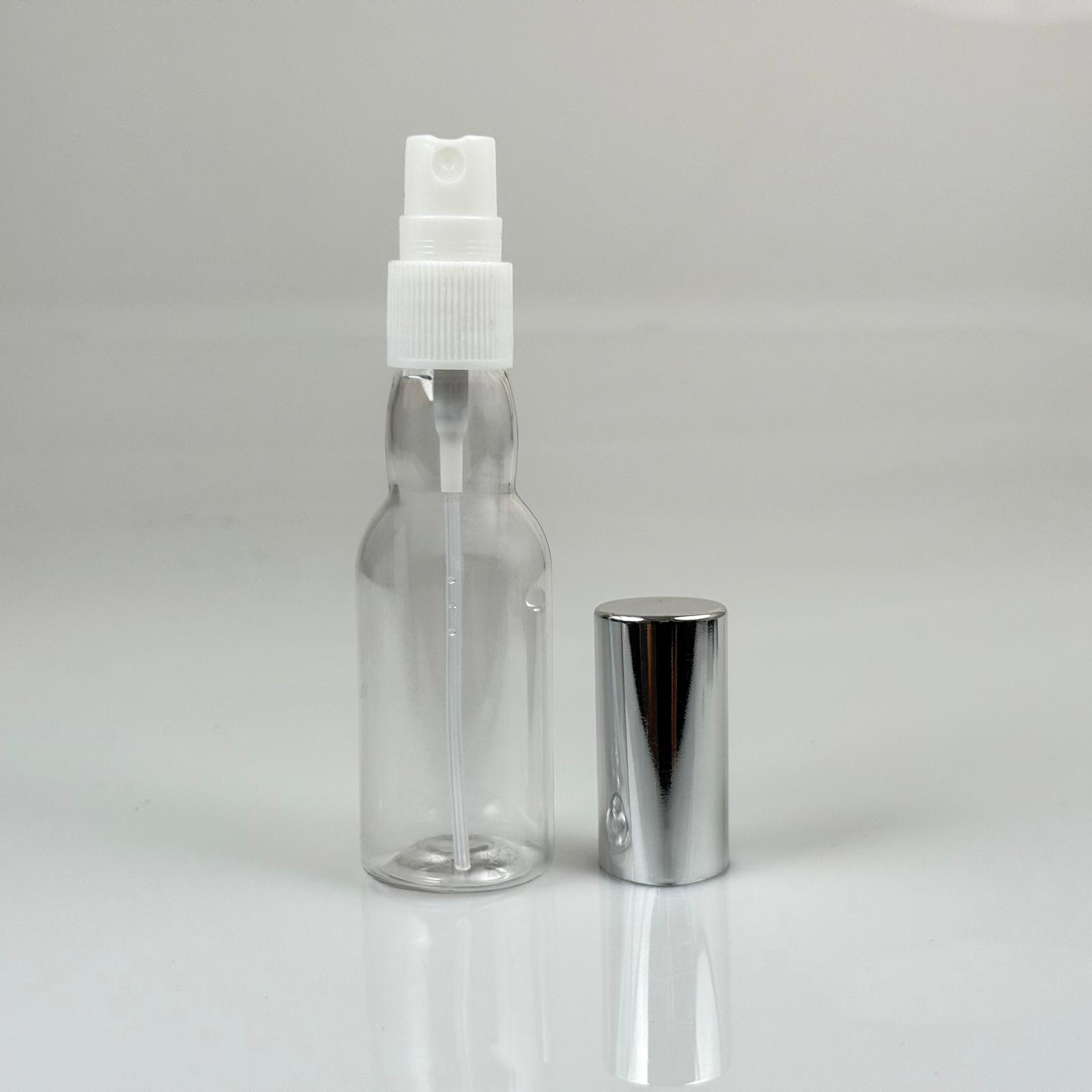 40 ML PET KOLONYA, PARFÜM VB ŞİŞELERİ - METAL ALÜMİNYUM GÜMÜŞ KAPAK + VİDALI SPREY + 40 CC BOĞAZLI ŞİŞE SET TAKIM - 1000 adet