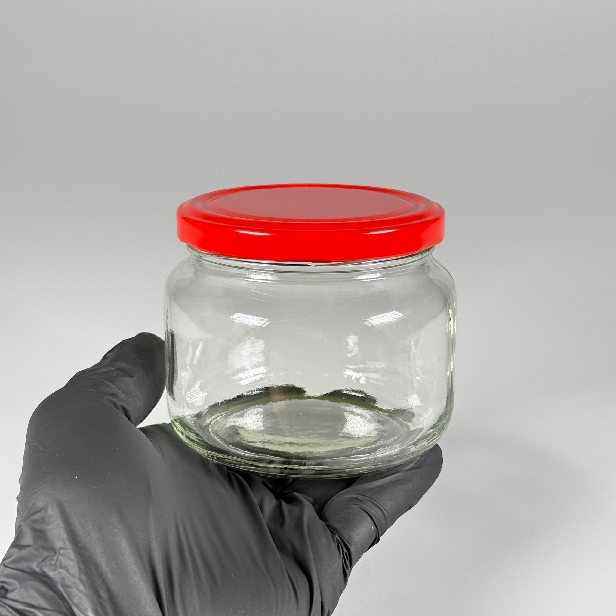 400 CC BASIK CAM KAVANOZ - KIRMIZI METAL KAPAKLI - 400 ML CAM KAVANOZ - KESTANE ŞEKERİ KAVANOZU - 112 adet