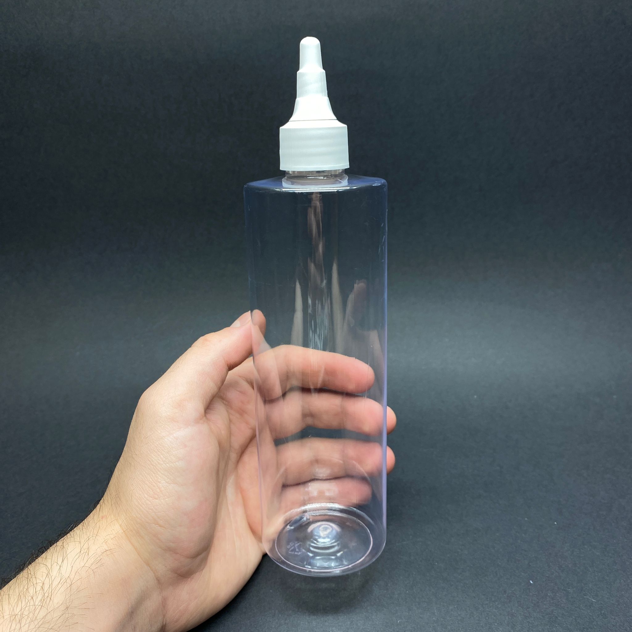 400 CC KÜT BOYUNLU SİLİNDİR PET ŞİŞE (30 GR) - BEYAZ ASANSÖR AKITICI KAPAKLI - 400 ML PLASTİK ŞİŞE - ŞEFFAF - 288 adet