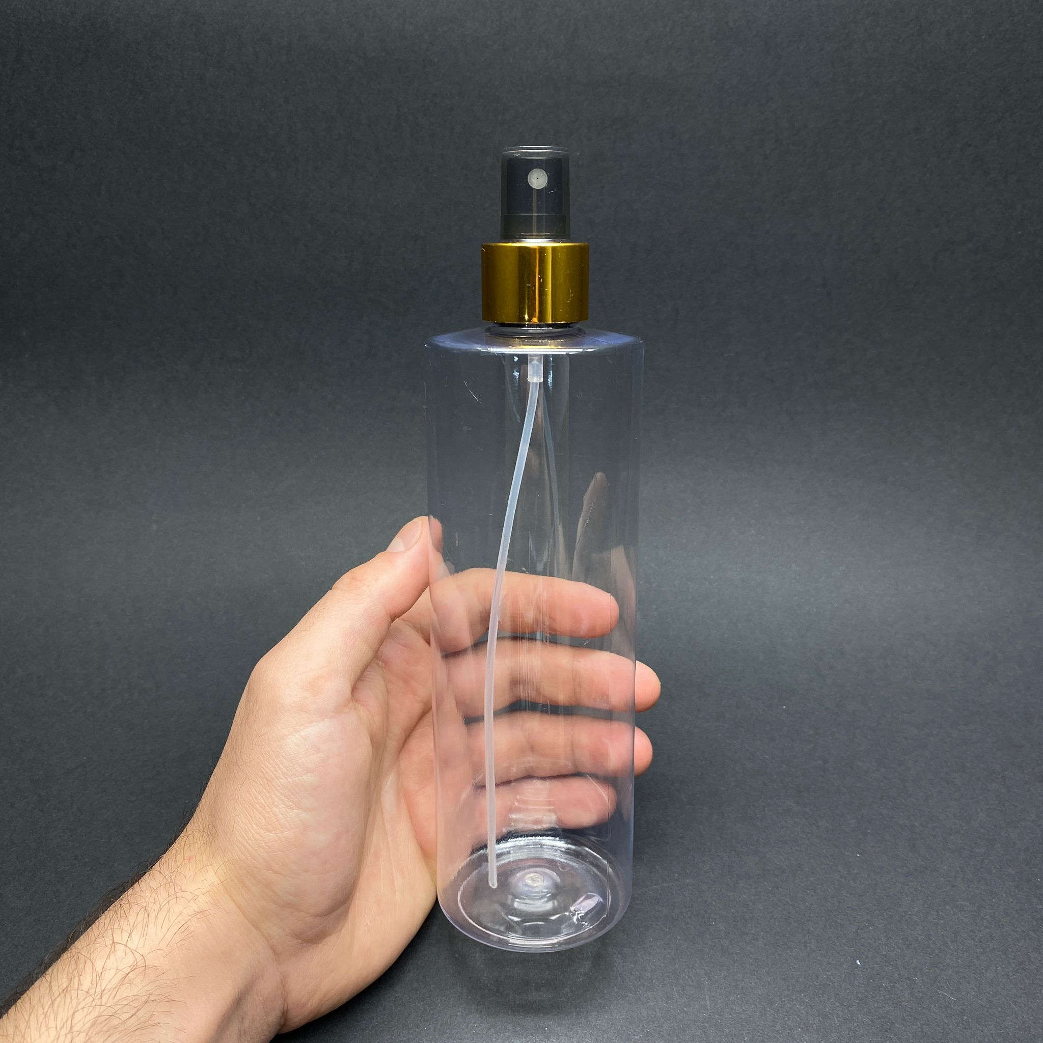400 CC KÜT BOYUNLU SİLİNDİR PET ŞİŞE (30 GR) - GOLD PARMAK SPREYLİ TAKIM - 400 ML PLASTİK ŞİŞE - ŞEFFAF - 288 adet