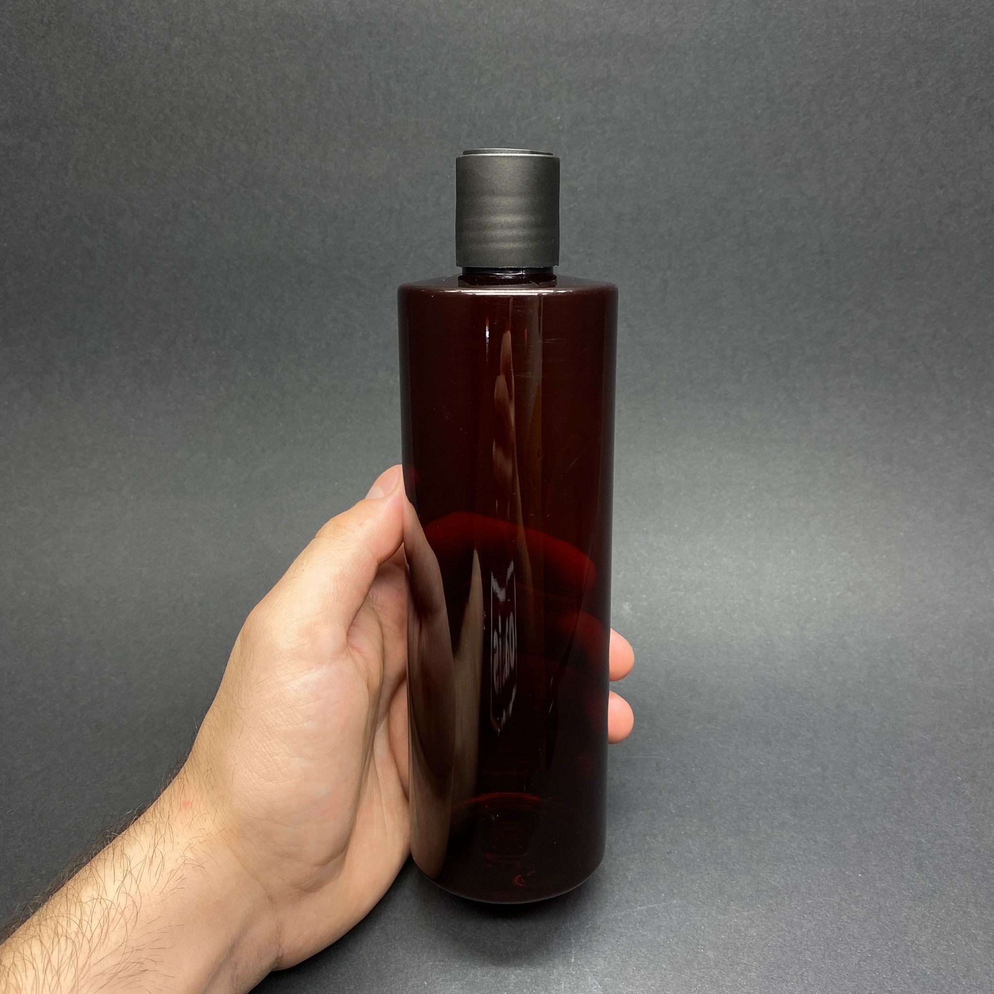 400 CC KÜT BOYUNLU SİLİNDİR PET ŞİŞE (30 GR) - SİYAH DİSKTOP ŞAMPUAN KAPAKLI - 400 ML PLASTİK ŞİŞE - AMBER - 288 adet