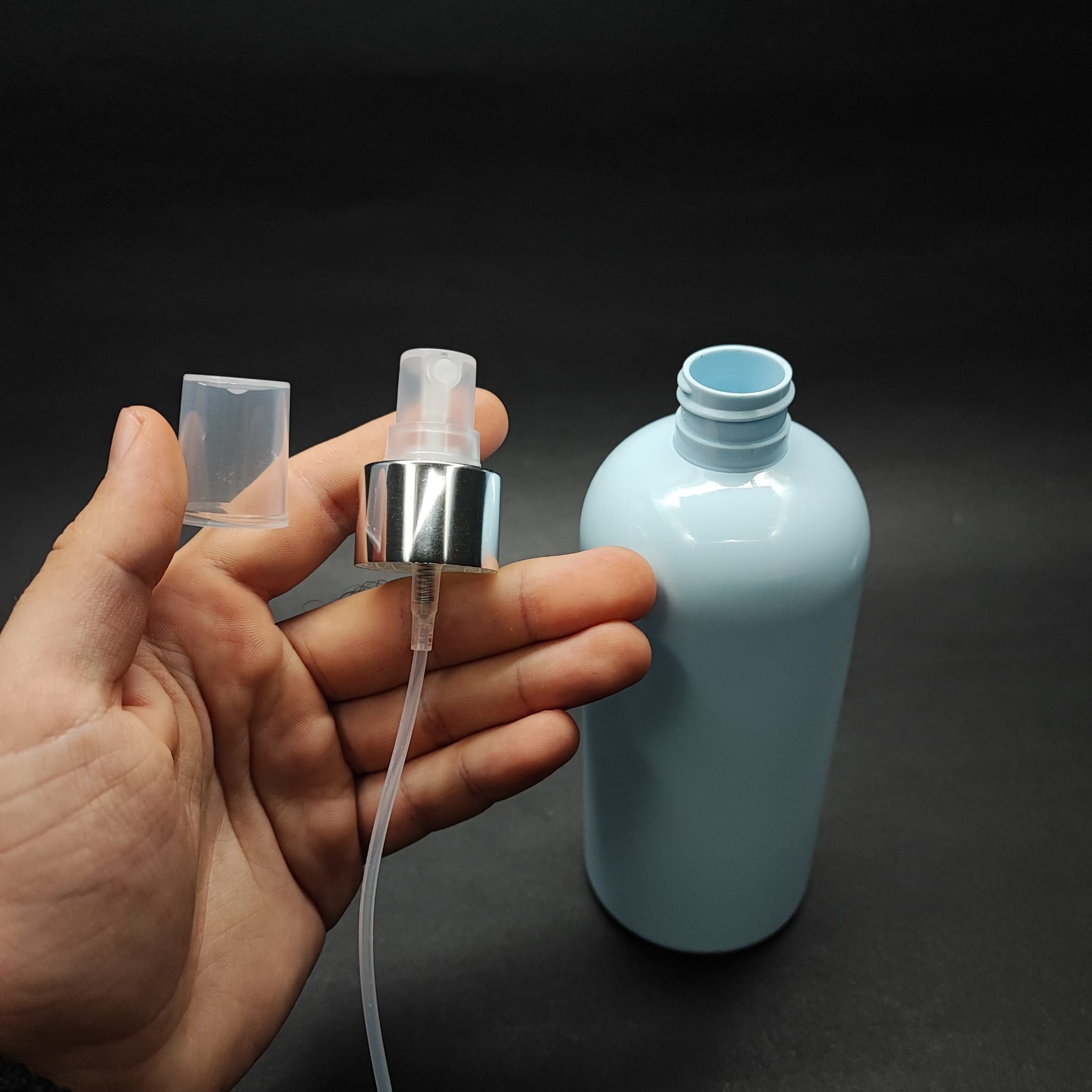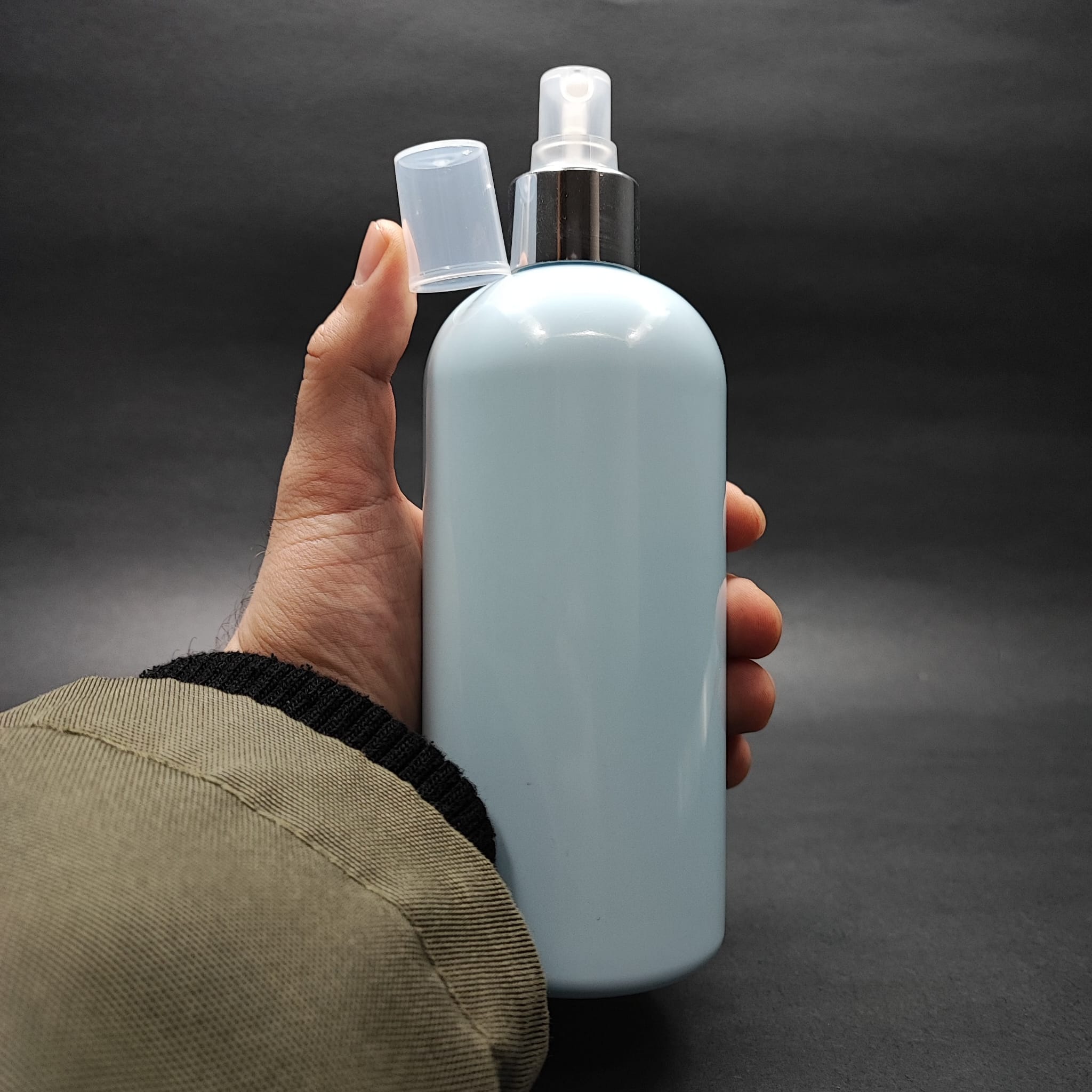 400 CC OVAL BOYUNLU SİLİNDİR PET ŞİŞE (30 GR) - GÜMÜŞ SPREYLİ - 400 ML PLASTİK ŞİŞE - BEBEK MAVİSİ - 210 adet