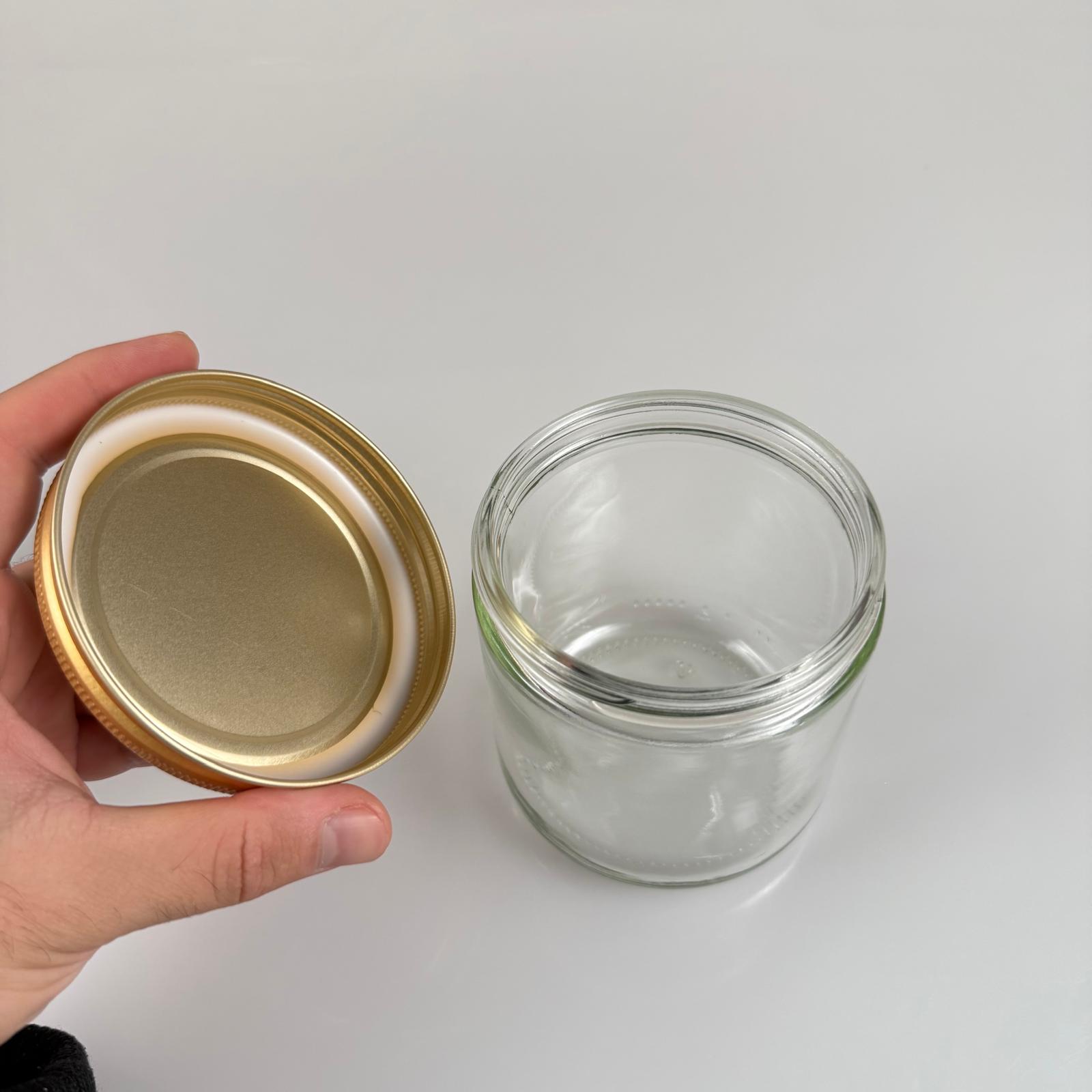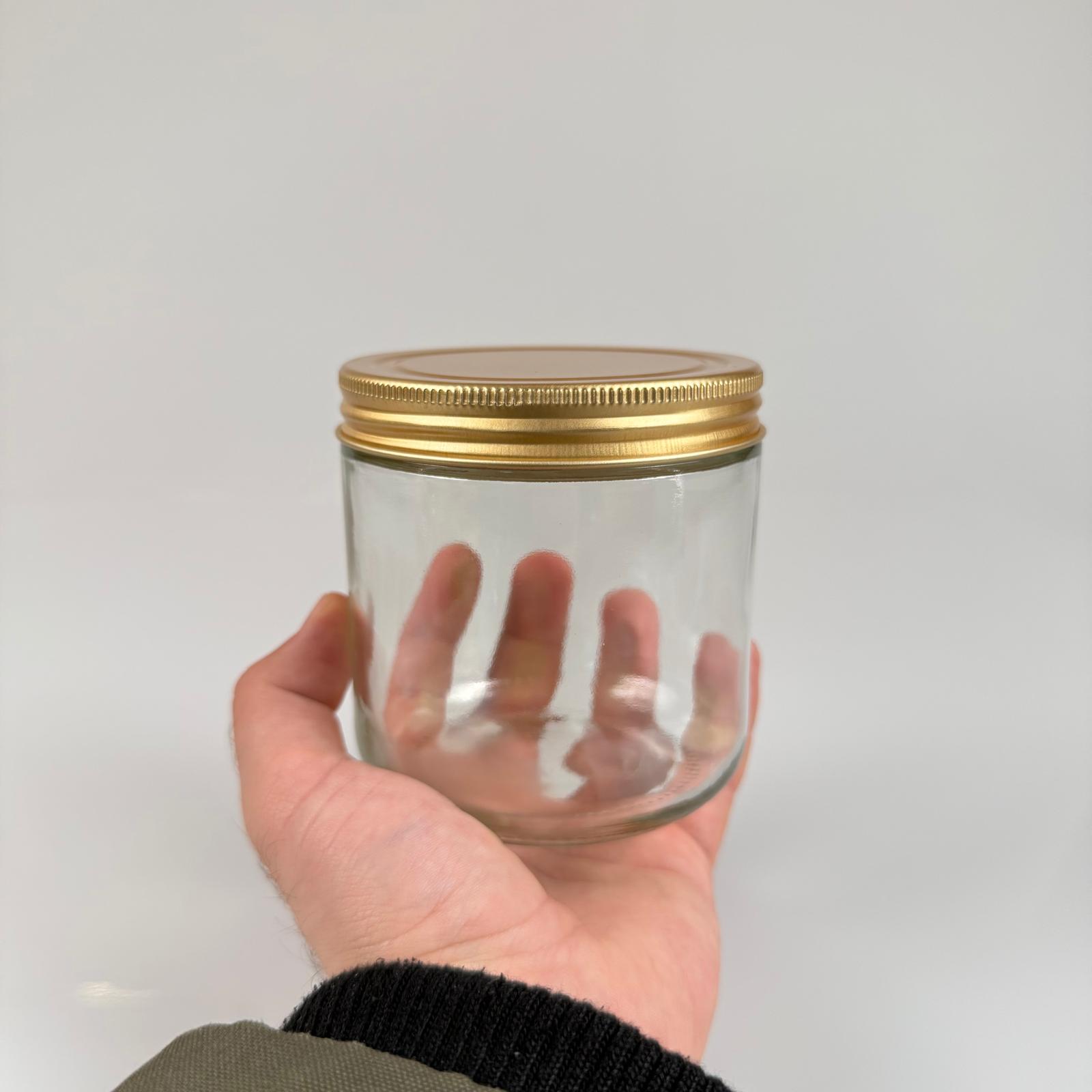 450 CC GENİŞ AĞIZ CAM KAVANOZ - GOLD METAL KAPAKLI - 450 ML ZEYTİN KAVANOZU - MUM KAVANOZU - 200 adet