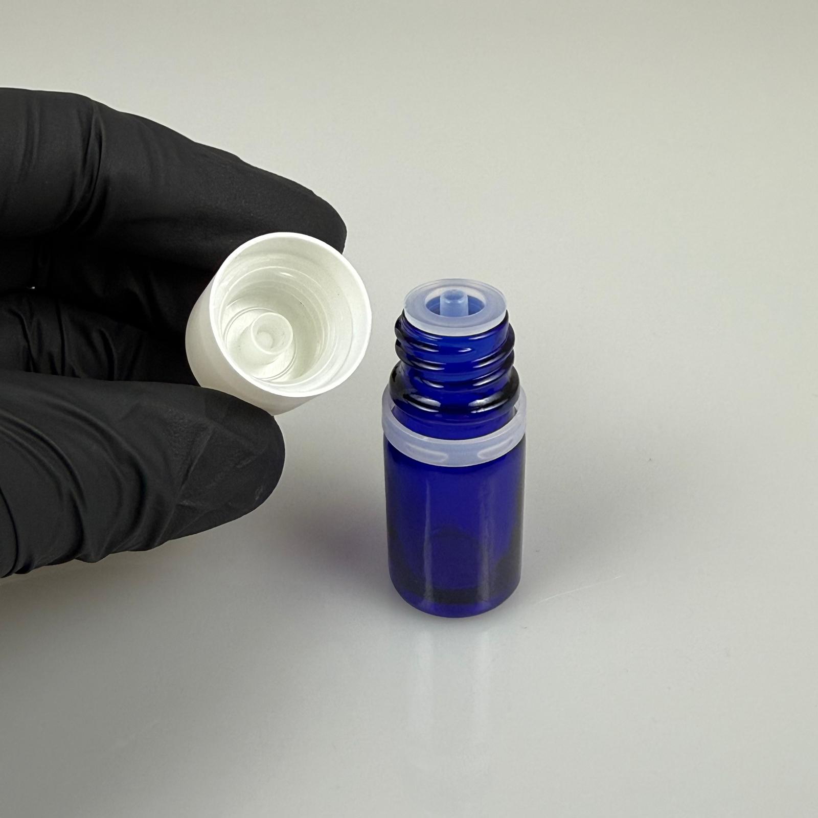 5 CC MAVİ CAM ŞİŞE + İÇTEN DAMLALIKLI ÇOCUK KİLİTLİ BEYAZ KAPAK - MAVİ 5 ML KİLİT KAPAKLI DAMLATMALI ŞİŞE - 510 adet