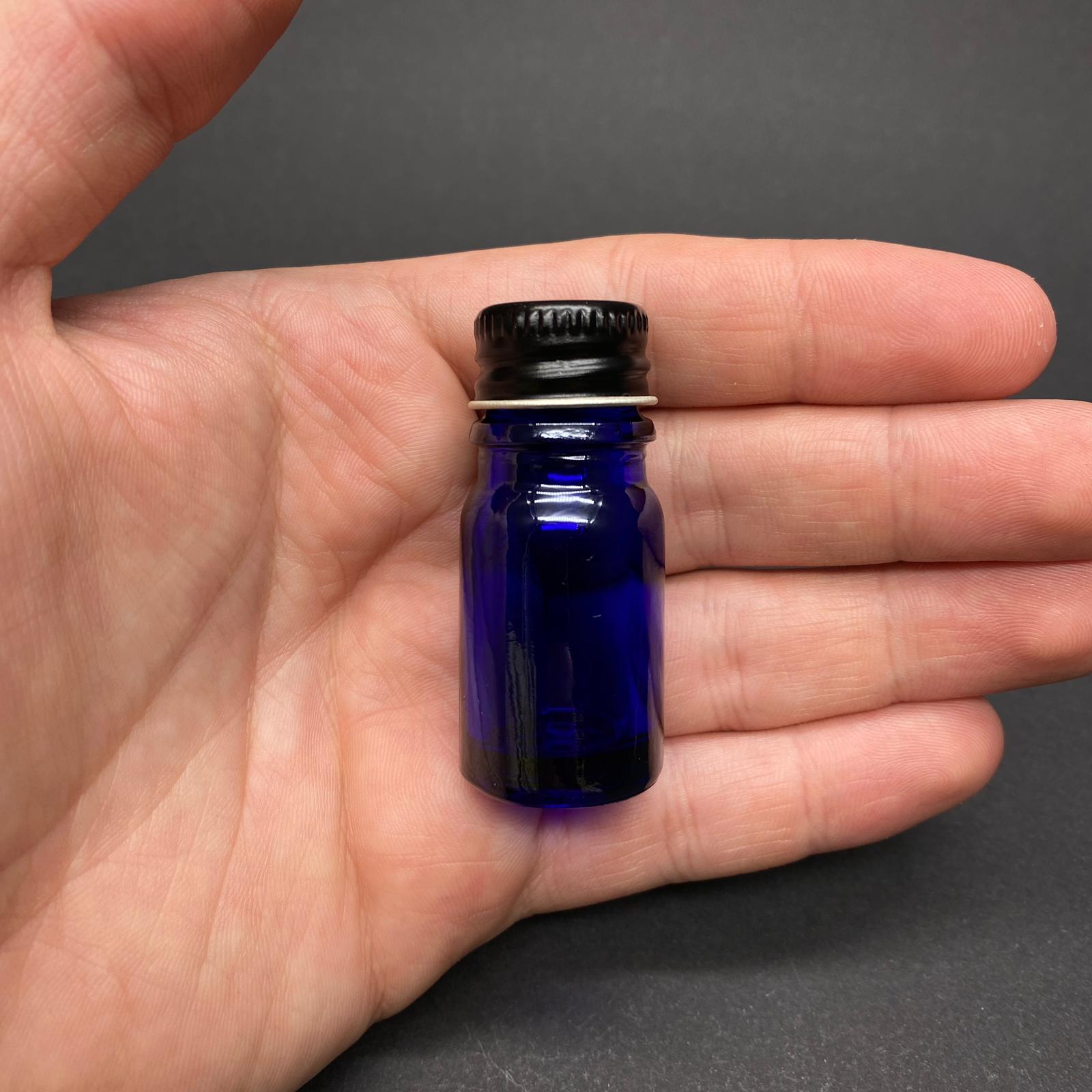 5 CC MAVİ CAM ŞİŞE - SİYAH CONTALI METAL KAPAKLI - 5 ML MAVİ CAM ŞİŞE - 510 adet