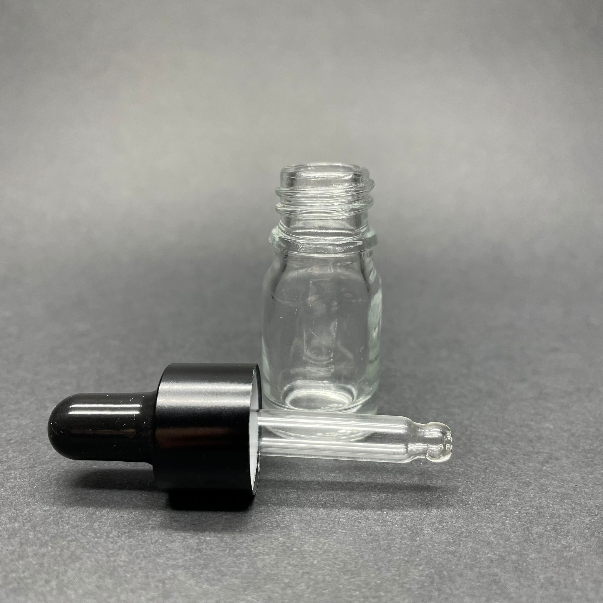 5 CC ŞEFFAF CAM DAMLALIKLI ŞİŞE - SİYAH EMZİK - SİYAH METALİK KAPAK - 5 ML SAYDAM CAM DAMLALIKLI ŞİŞE - 510 adet