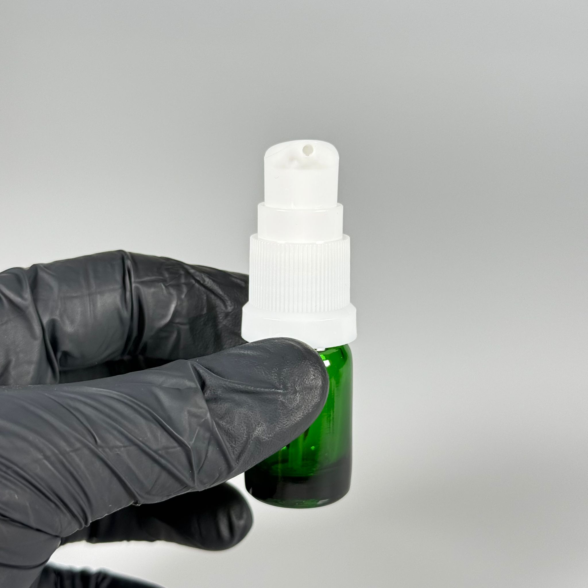 5 CC YEŞİL CAM ŞİŞE - SIZDIRMAZ ETEKLİ BEYAZ LOSYON POMPALI TAKIM - 5 ML LOSYON ŞİŞESİ - YAĞ, KREM GİBİ YOĞUN KIVAMLI SIVILAR İÇİN CAM AMBALAJ - 510 adet