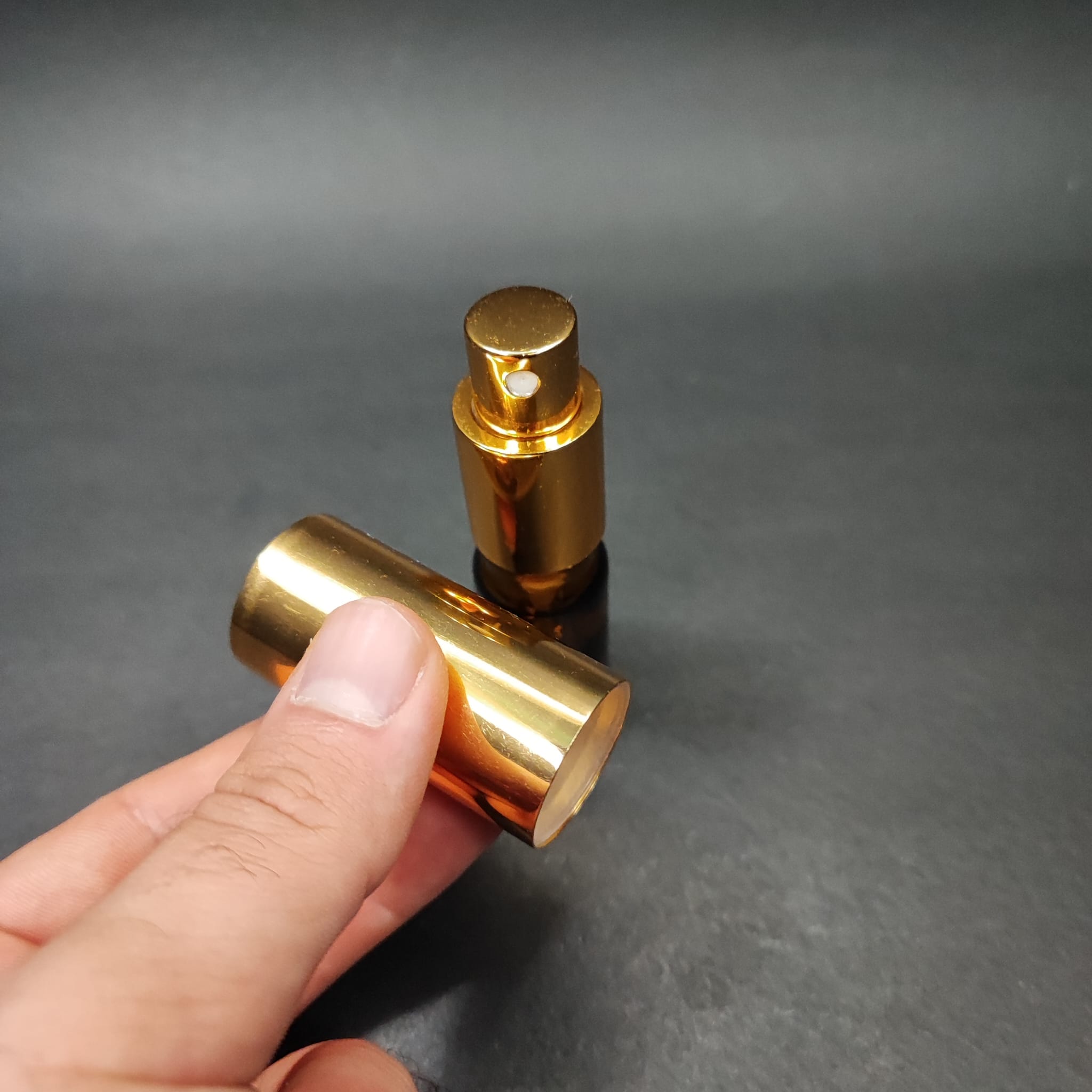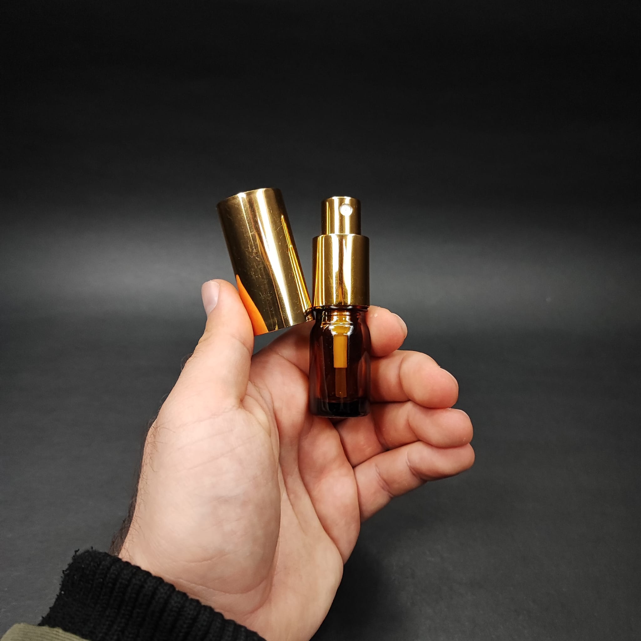 5 ML LÜKS VİDALI VALF ÇEVİRME PARFÜM ŞİŞELERİ - 5 CC AMBER CAM ŞİŞE - GOLD METAL SPREYLİ KAPAKLI SET - 510 adet