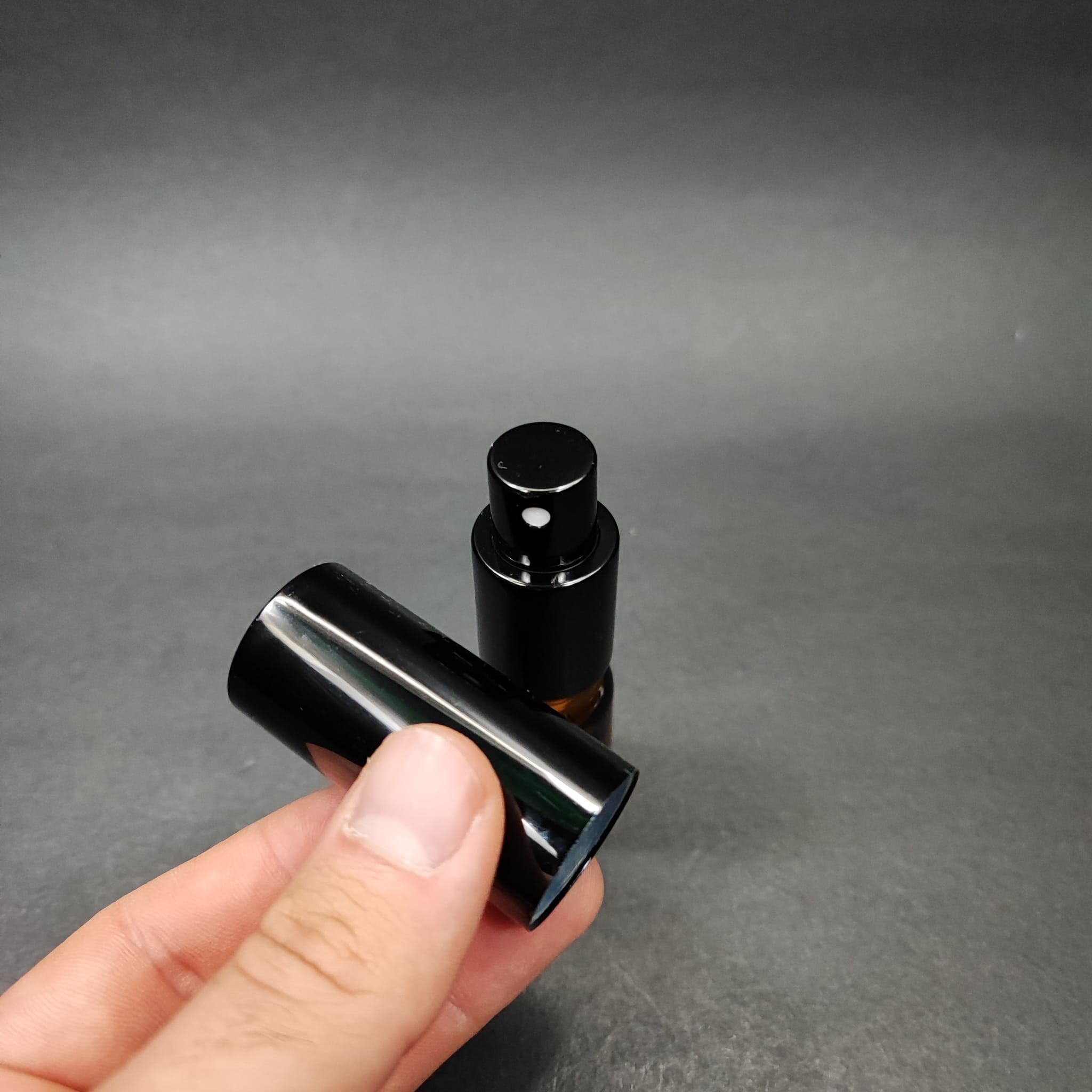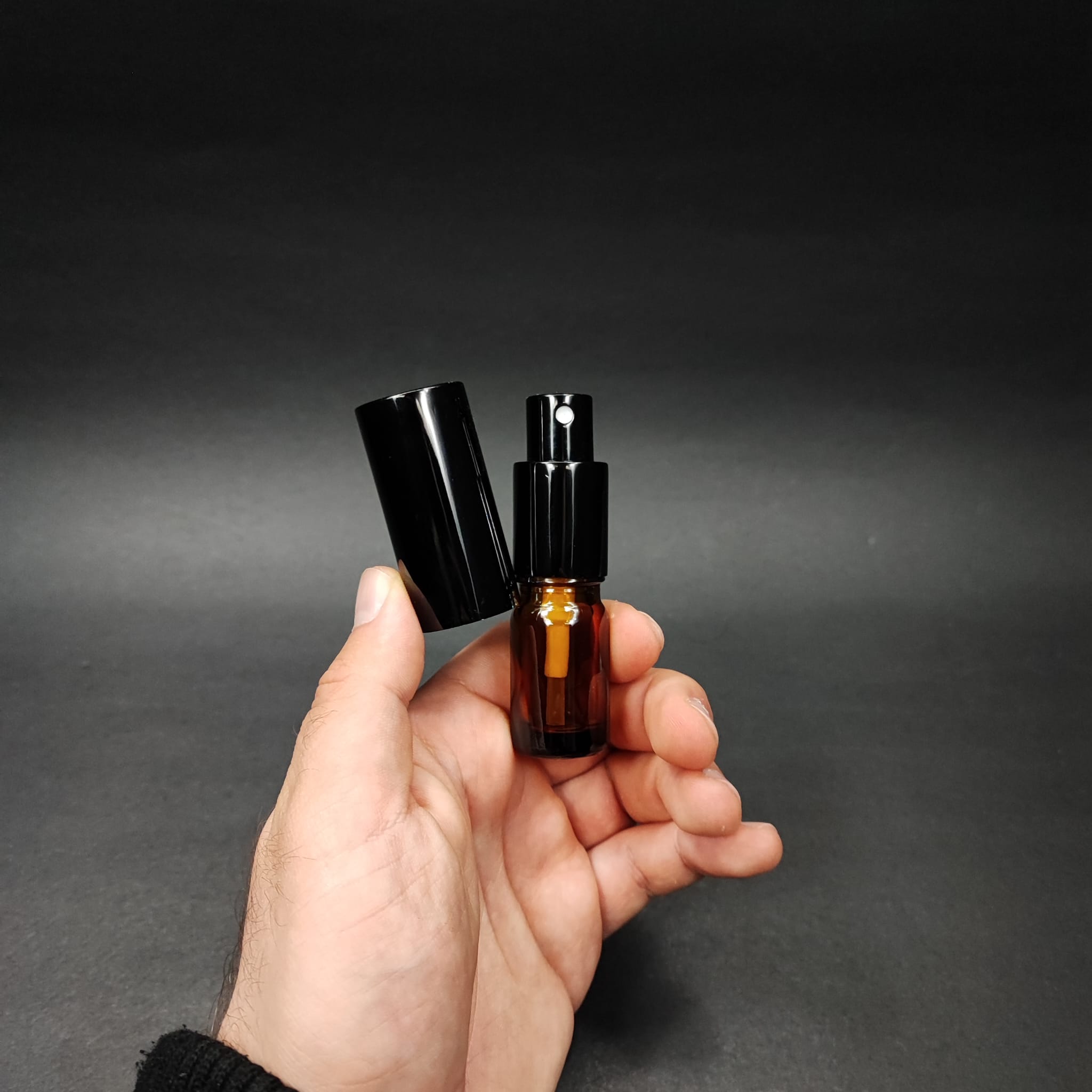 5 ML LÜKS VİDALI VALF ÇEVİRME PARFÜM ŞİŞELERİ - 5 CC AMBER CAM ŞİŞE - SİYAH METAL SPREYLİ KAPAKLI SET - 510 adet