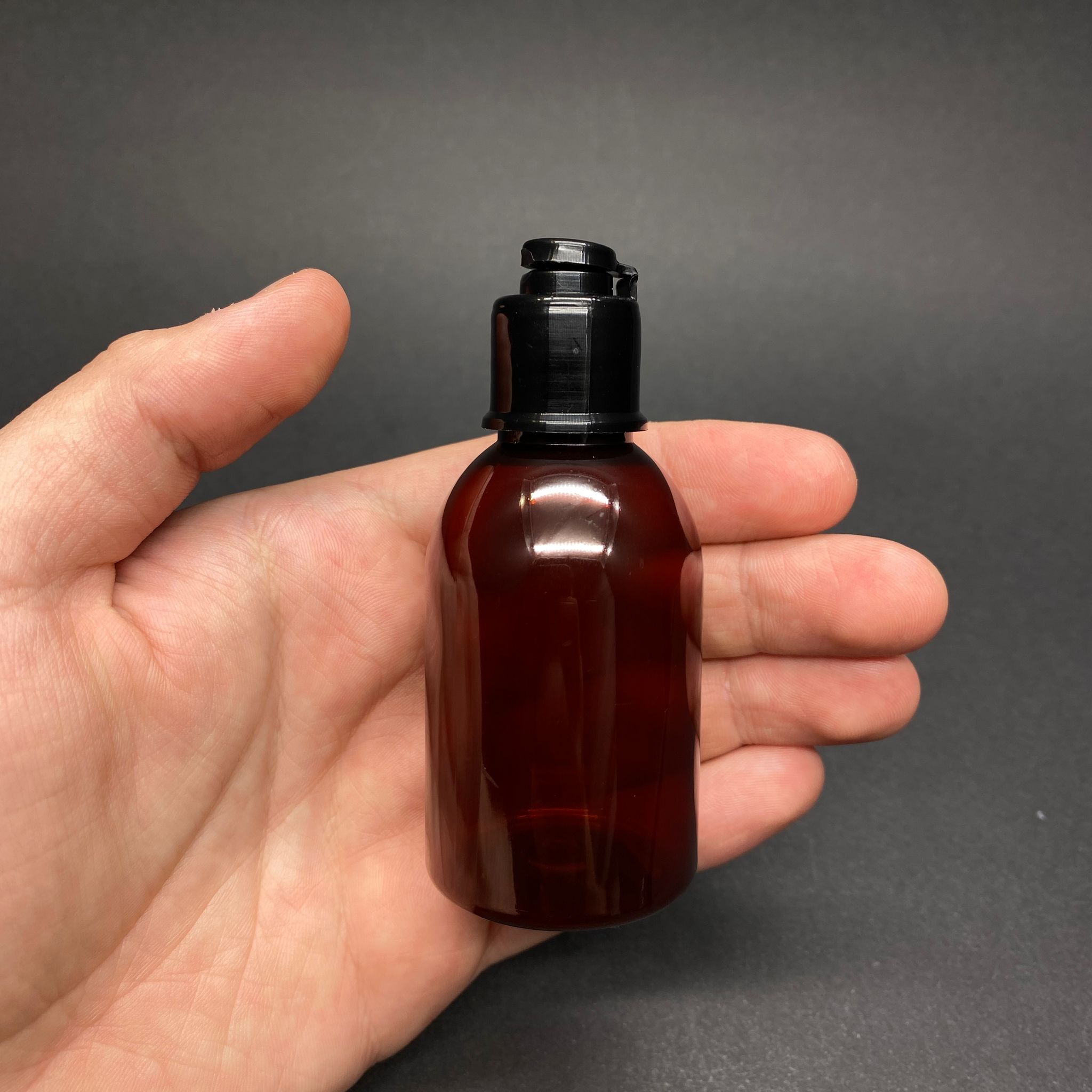 50 CC AMBER PET ŞİŞE - SİYAH YENİ FLİPTOP AKITICI KAPAKLI - 50 ML KAHVERENGİ PLASTİK ŞİŞE - 2760 adet