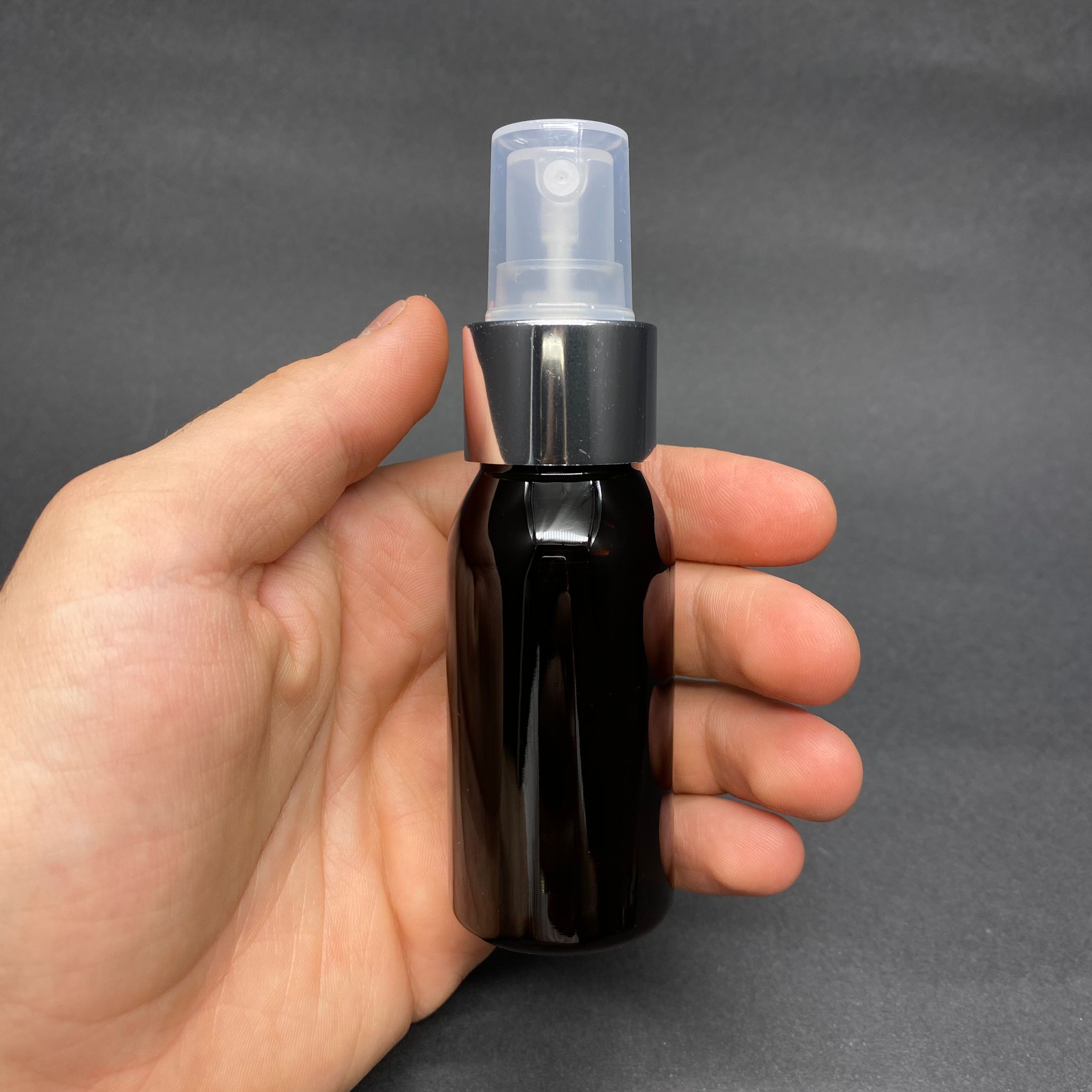 50 CC AMBER SERT MODEL PET ŞİŞE - GÜMÜŞ METAL SPREYLİ - 50 ML KAHVERENGİ SPREYLİ PLASTİK ŞİŞE - 1000 adet