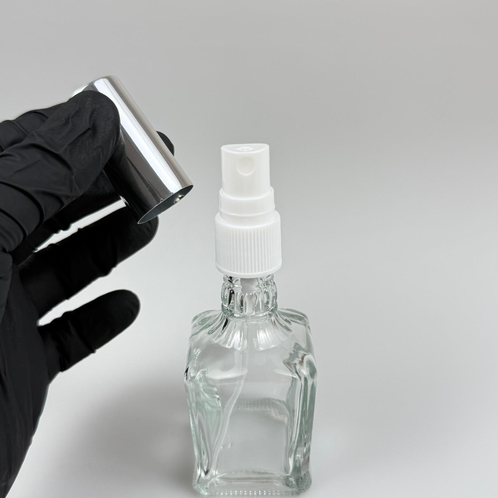 50 CC BOĞAZLI KONİK CAM ŞİŞE - VİDALI GÜMÜŞ SPREYLİ PARFÜM KOLONYA ŞİŞESİ TAKIM - 50 ML PRESTİJLİ ŞİŞE - 330 adet