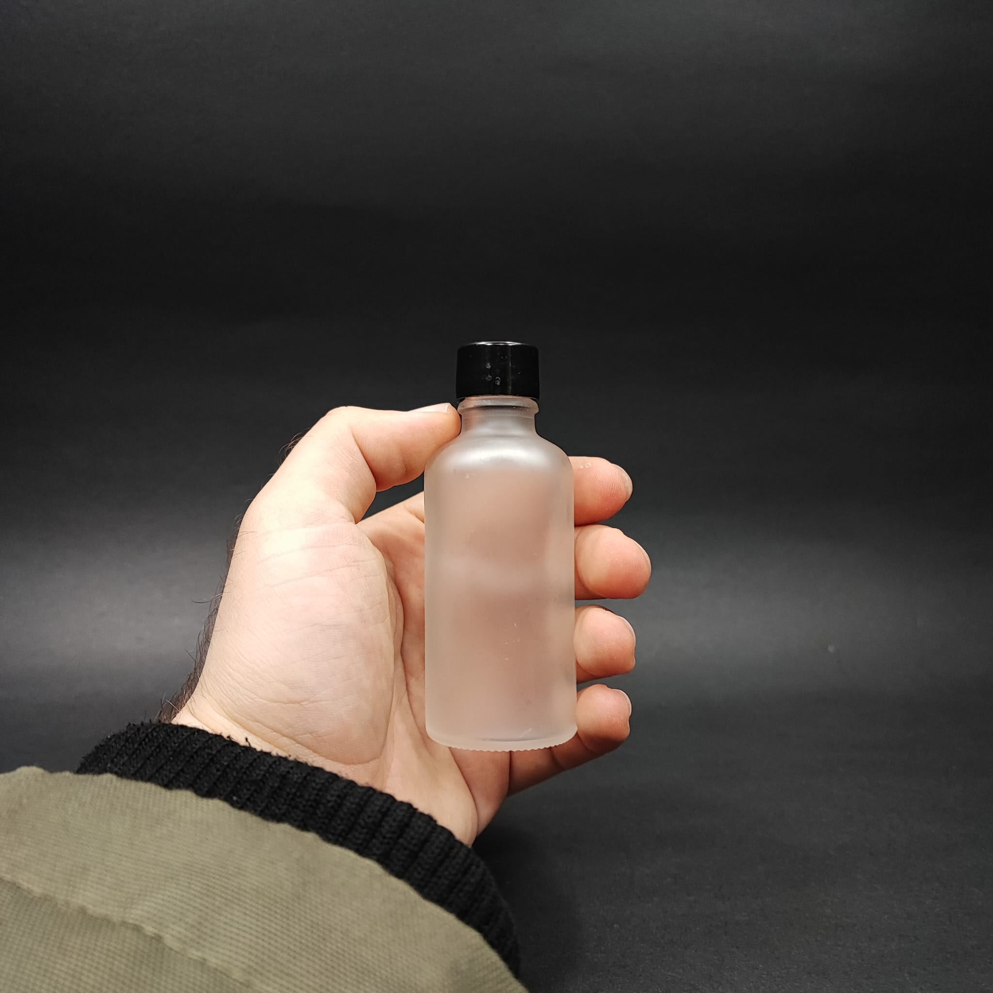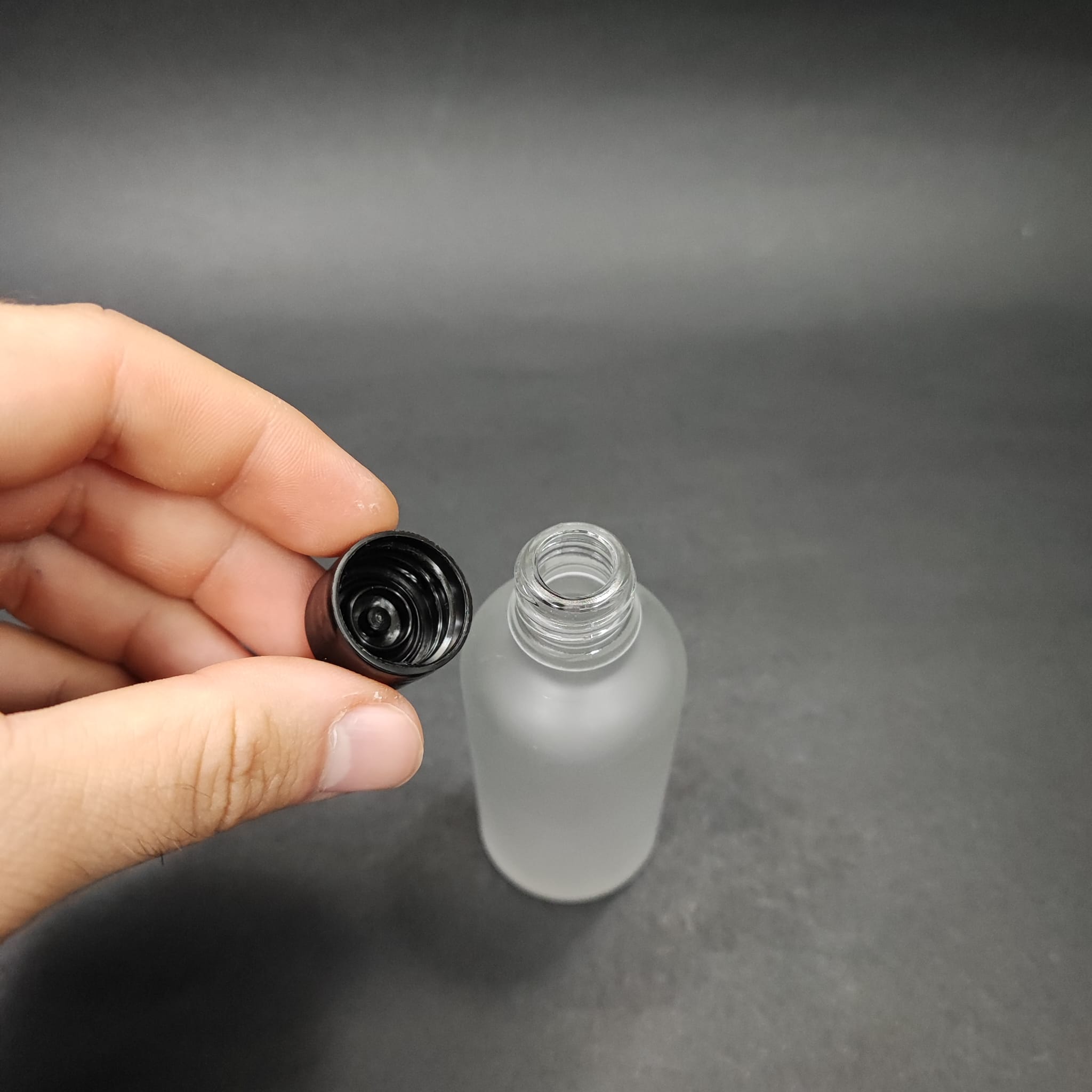 50 CC BUZLU CAM ŞİŞE + KENDİNDEN CONTALI SIZDIRMAZ SİYAH KAPAK - 50 ML KAPAKLI CAM ŞİŞE - 576 adet