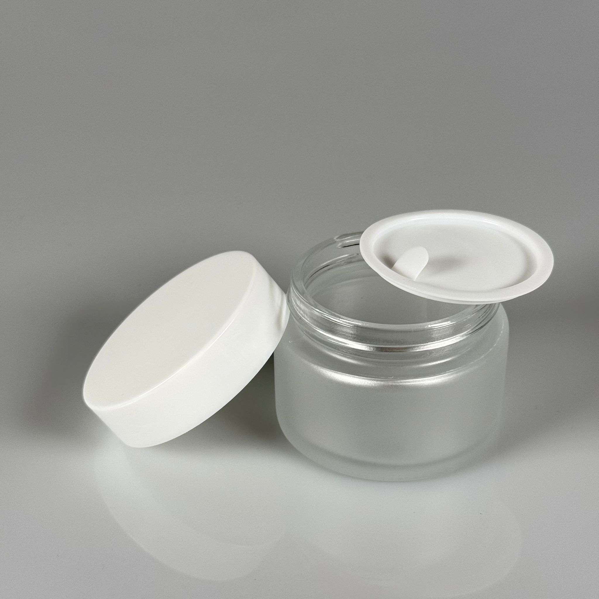 50 CC CAM BUZLU KREM KAVANOZU - BEYAZ KAPAKLI İÇ CONTALI - 50 ML BUZLU CAM KREM KAVANOZU - BUZLU KOZMETİK KAVANOZU - 168 adet