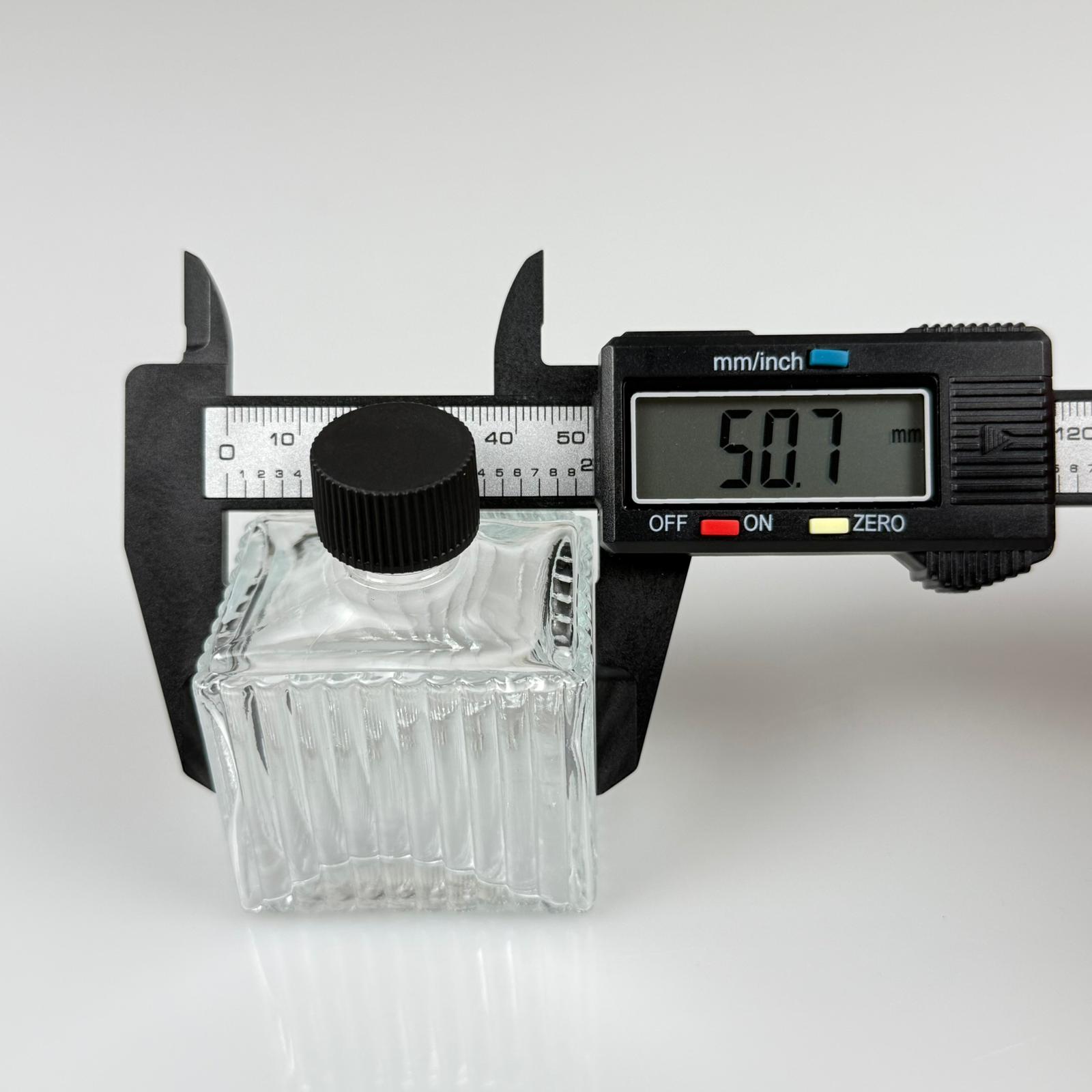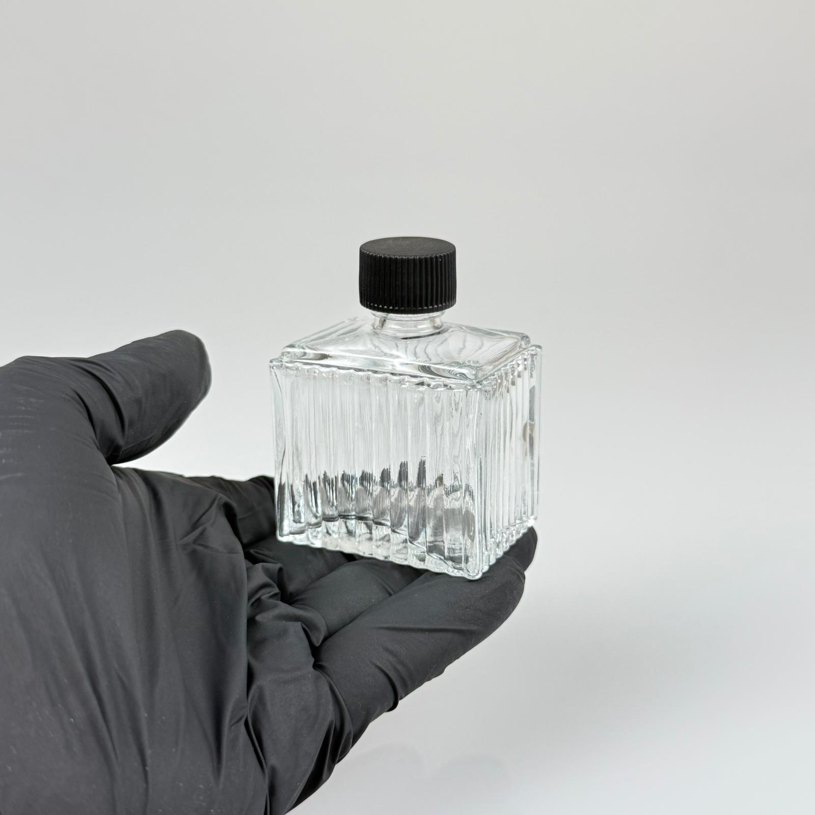 50 CC KÖŞELİ DESENLİ ÇİZGİLİ CAM ŞİŞE - SİYAH PLASTİK KAPAKLI - 50 ML PRESTİJLİ ŞİŞE - 330 adet