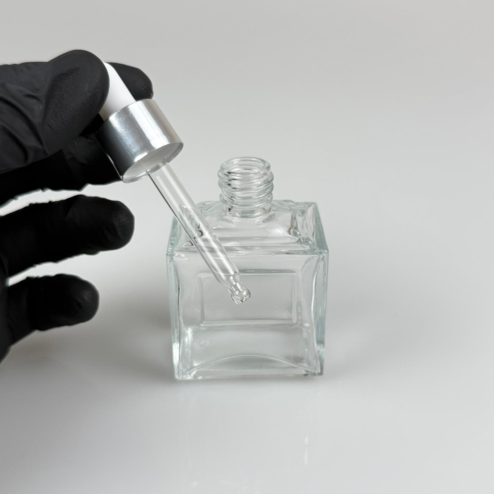 50 CC KÖŞELİ PRİZMA PRESTİJLİ CAM DAMLALIKLI ŞİŞE - BEYAZ EMZİK - GÜMÜŞ METALİK KAPAK - 50 ML CAM DAMLALIKLI ŞİŞE - DAMLALIKLI BOŞ ŞİŞE - 330 adet
