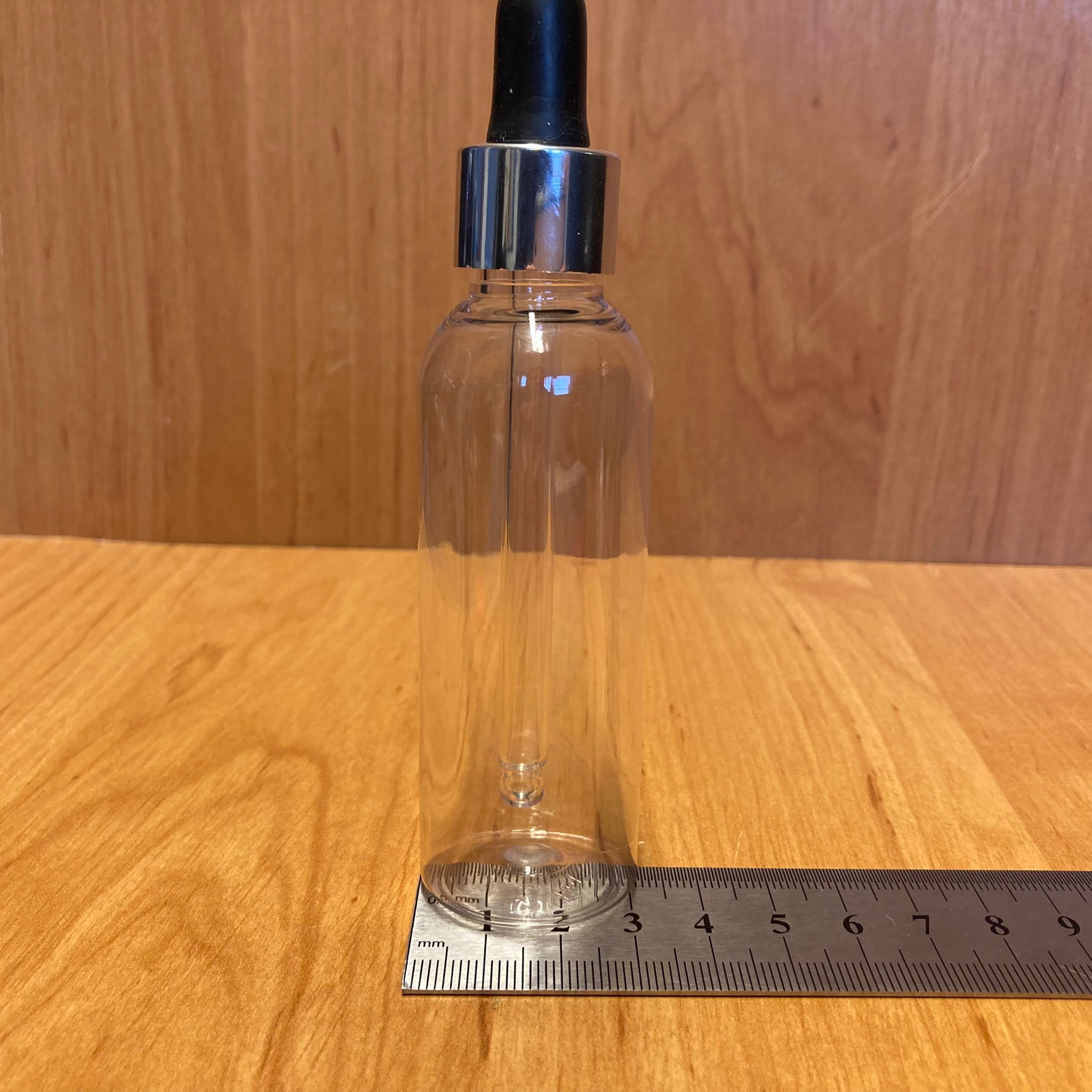 50 CC ŞEFFAF SİLİNDİR PLASTİK CAM DAMLALIKLI ŞİŞE - SİYAH EMZİK - GÜMÜŞ METALİK KAPAK - 50 ML PLASTİK CAM DAMLALIKLI ŞİŞE - 1000 adet