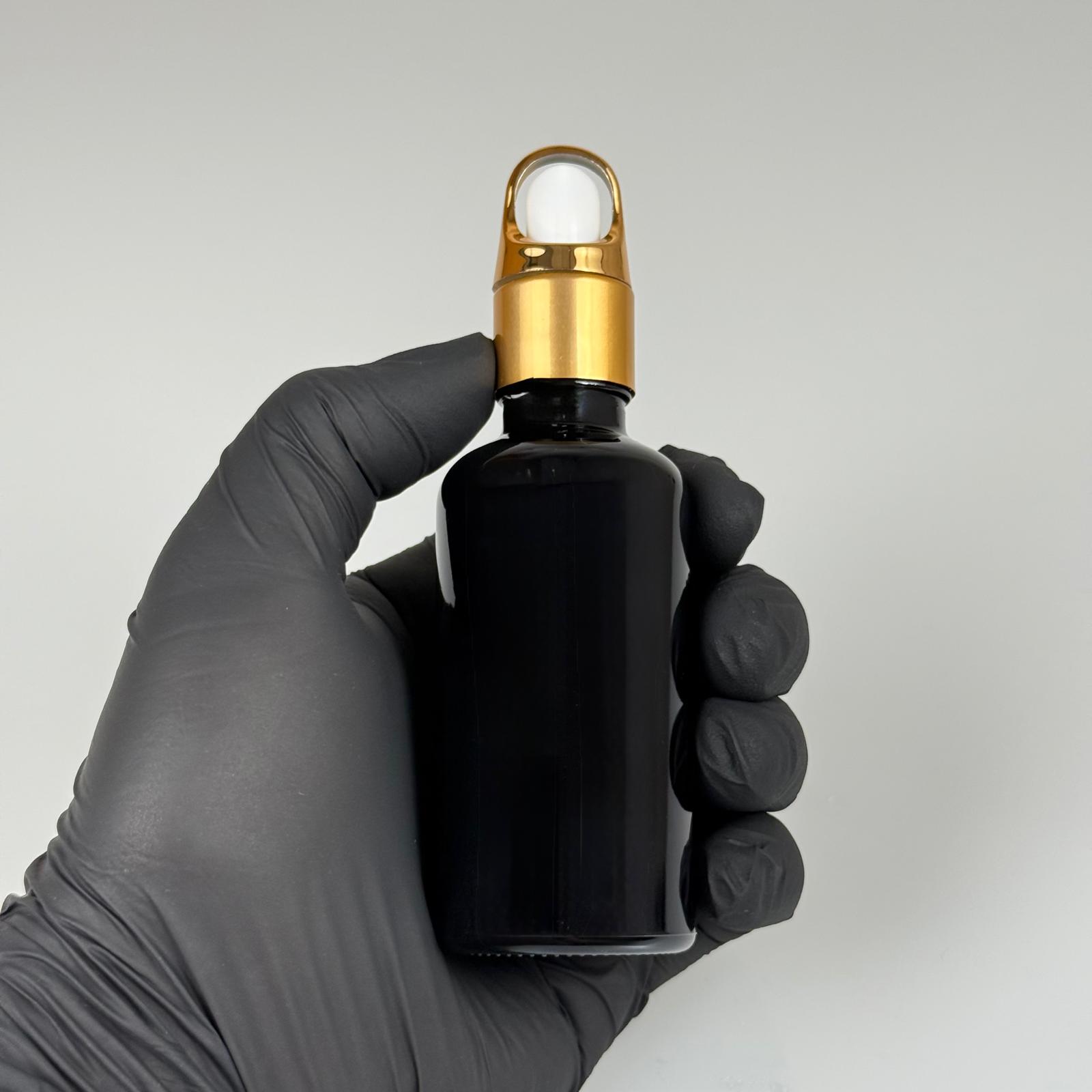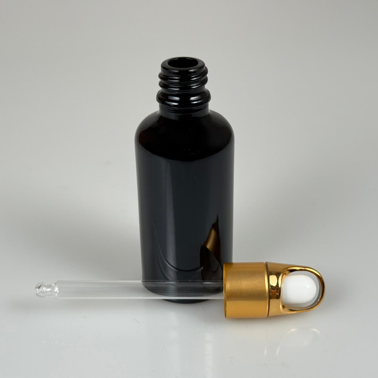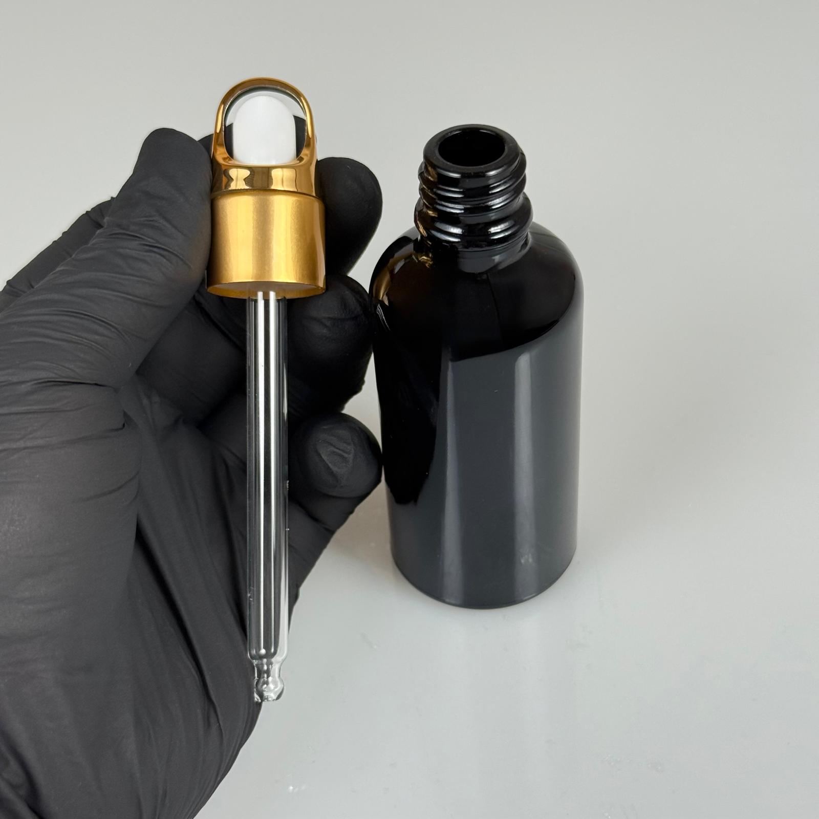 50 CC SİYAH CAM DAMLALIKLI ŞİŞE - BEYAZ EMZİK - GOLD FLOWER SEPET MODEL METALİK KAPAK - 50 ML CAM DAMLALIKLI ŞİŞE - 176 adet