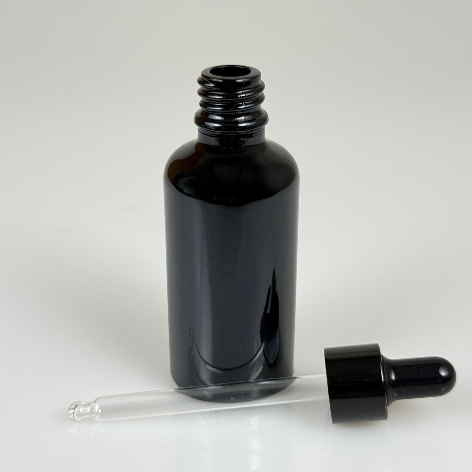 50 CC SİYAH CAM DAMLALIKLI ŞİŞE - SİYAH EMZİK - SİYAH METALİK KAPAK - 50 ML SİYAH CAM DAMLALIKLI ŞİŞE - 176 adet