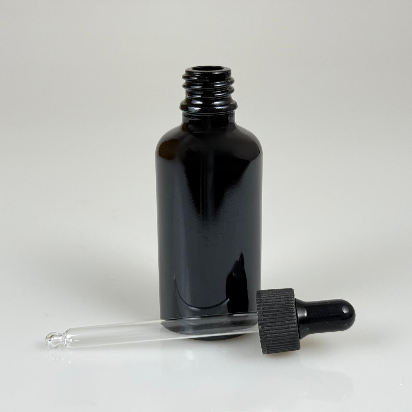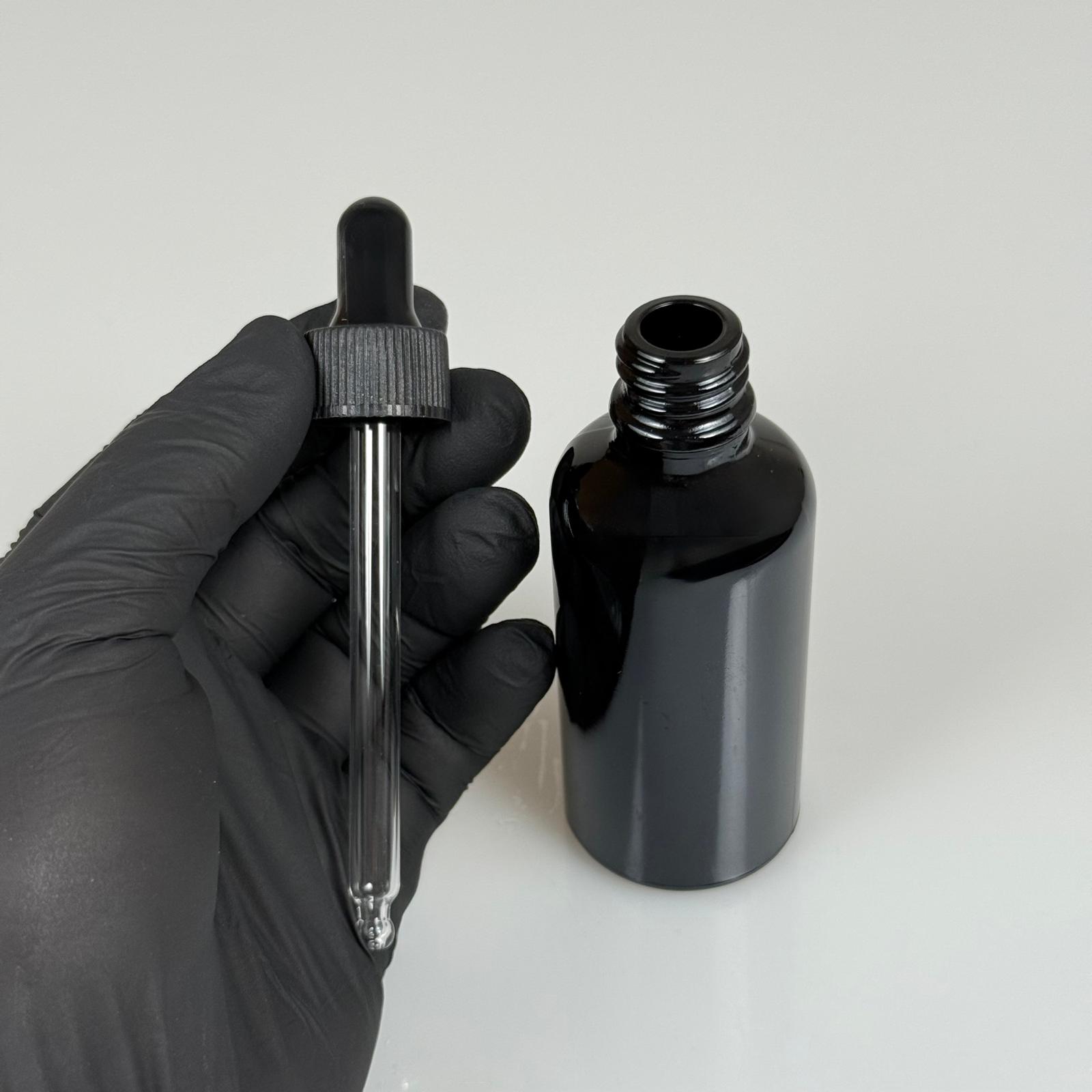 50 CC SİYAH CAM DAMLALIKLI ŞİŞE - SİYAH EMZİK - SİYAH PLASTİK KAPAK - 50 ML SİYAH CAM DAMLALIKLI ŞİŞE - 176 adet