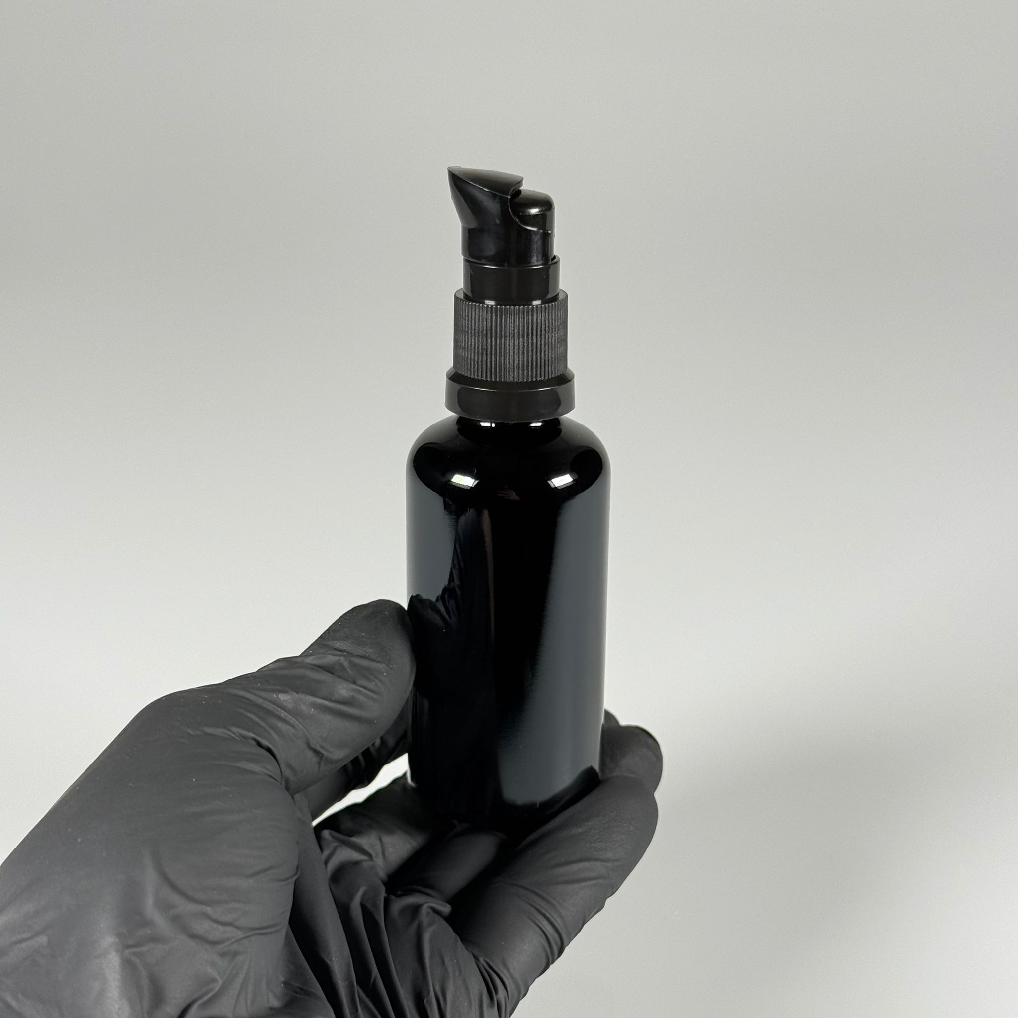 50 CC SİYAH CAM ŞİŞE - SIZDIRMAZ ETEKLİ SİYAH LOSYON POMPALI TAKIM - 50 ML LOSYON ŞİŞESİ - YAĞ, KREM GİBİ YOĞUN KIVAMLI SIVILAR İÇİN CAM AMBALAJ - 176 adet