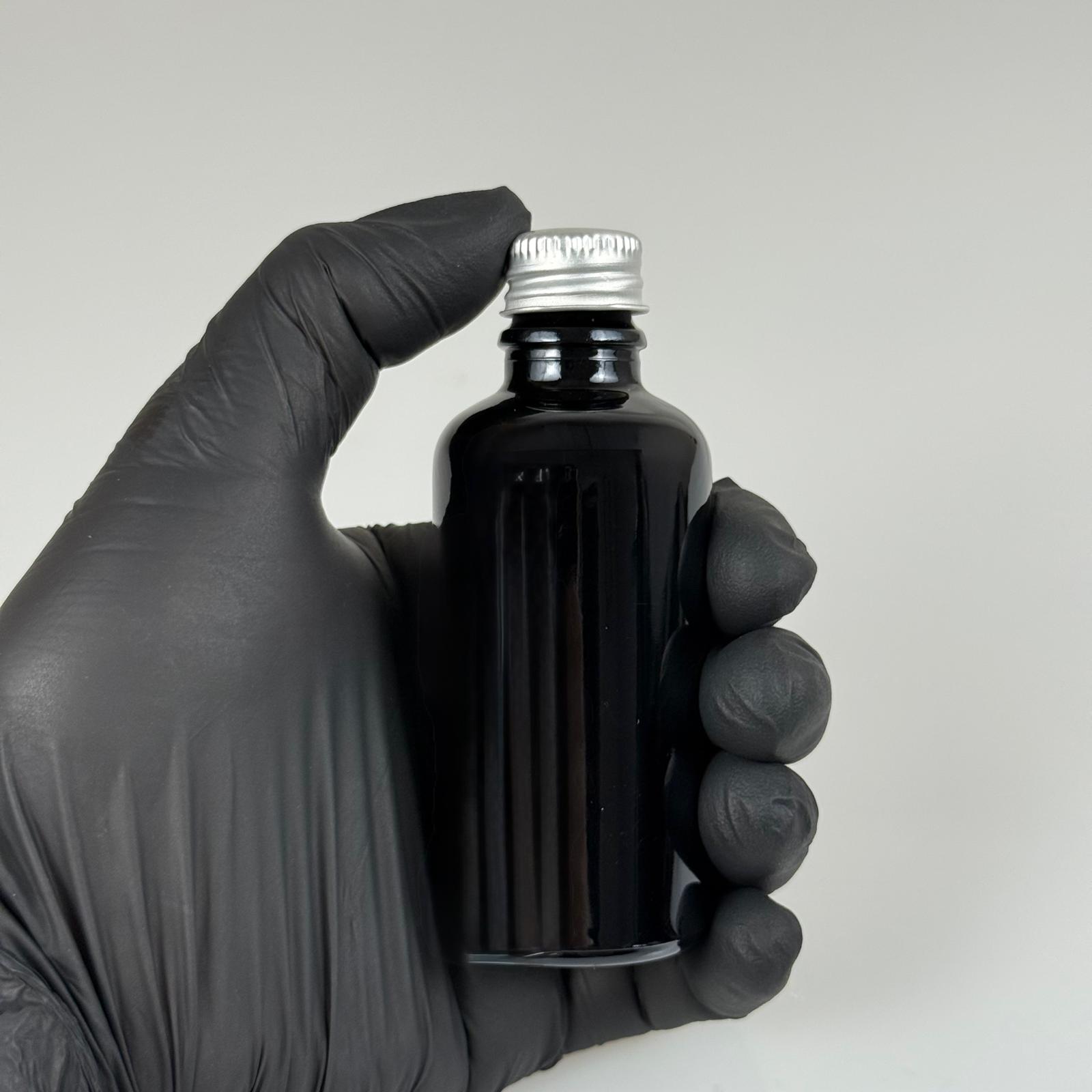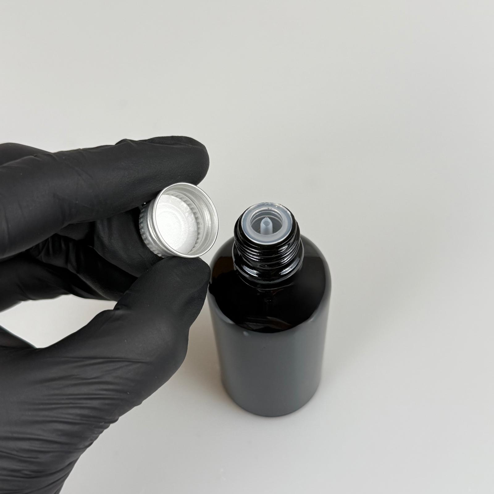 50 CC SİYAH İÇTEN DAMLALIKLI - GÜMÜŞ METAL KAPAKLI CAM ŞİŞE - 50 ML KOLONYA TIPALI CAM ŞİŞE - 176 adet