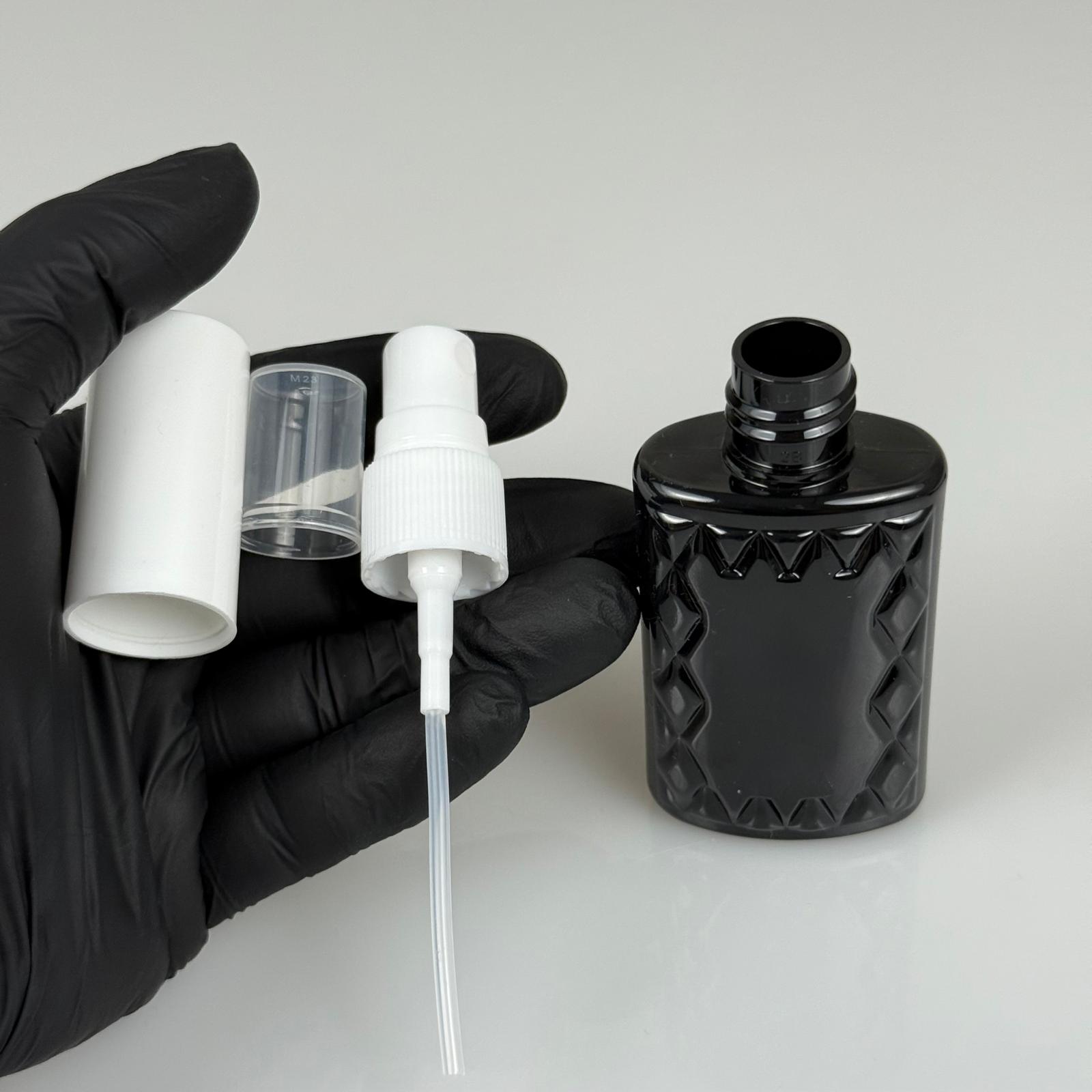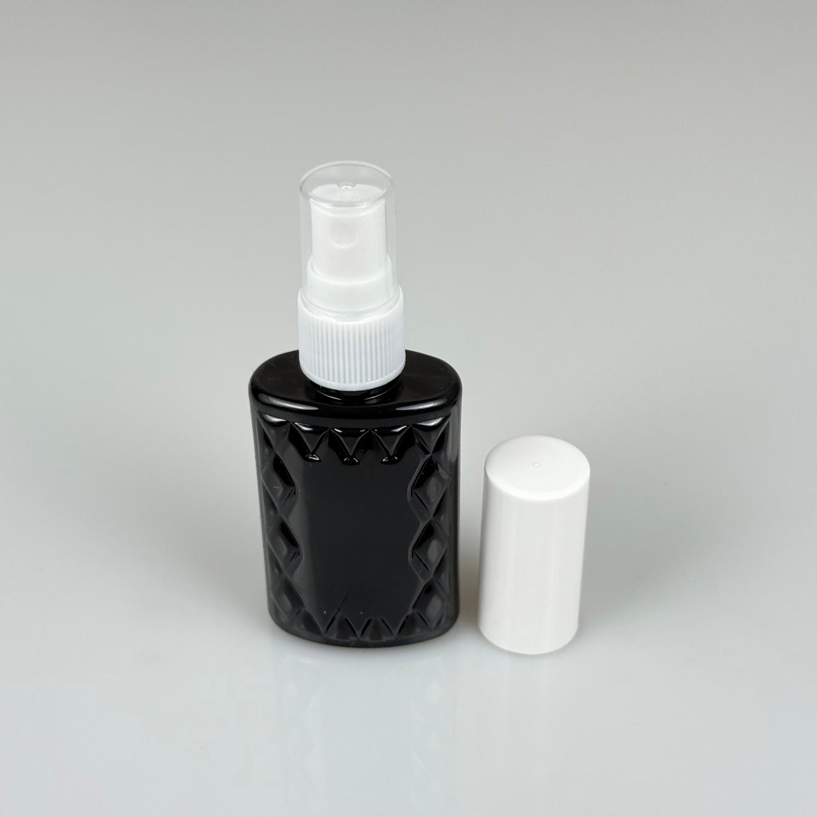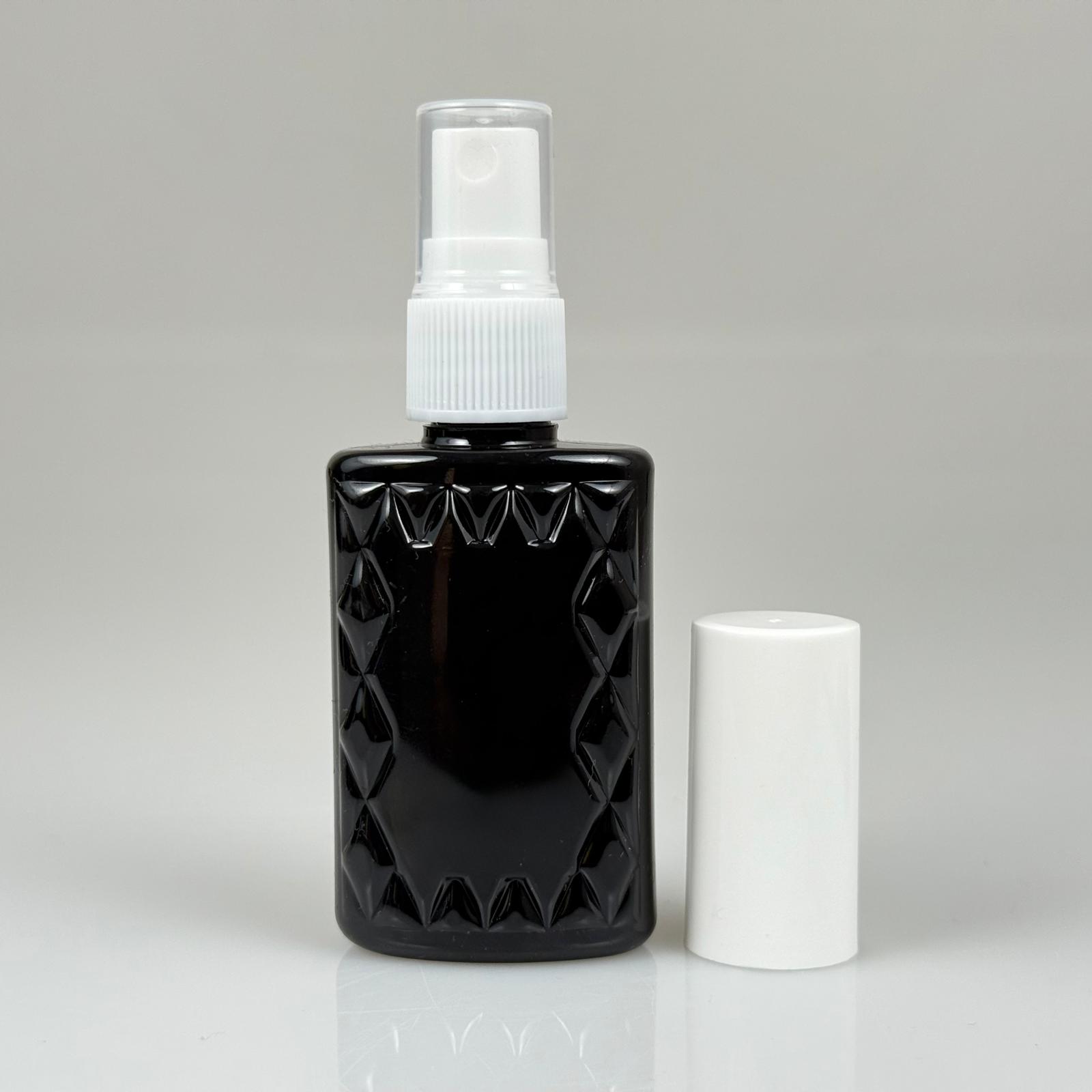 50 CC SİYAH PET KÖŞELİ PARFÜM ŞİŞESİ - BEYAZ SPREYLİ - BEYAZ KORUMA KAPAKLI - 50 ML PLASTİK PARFÜM - KOLONYA ŞİŞESİ - 1300 adet