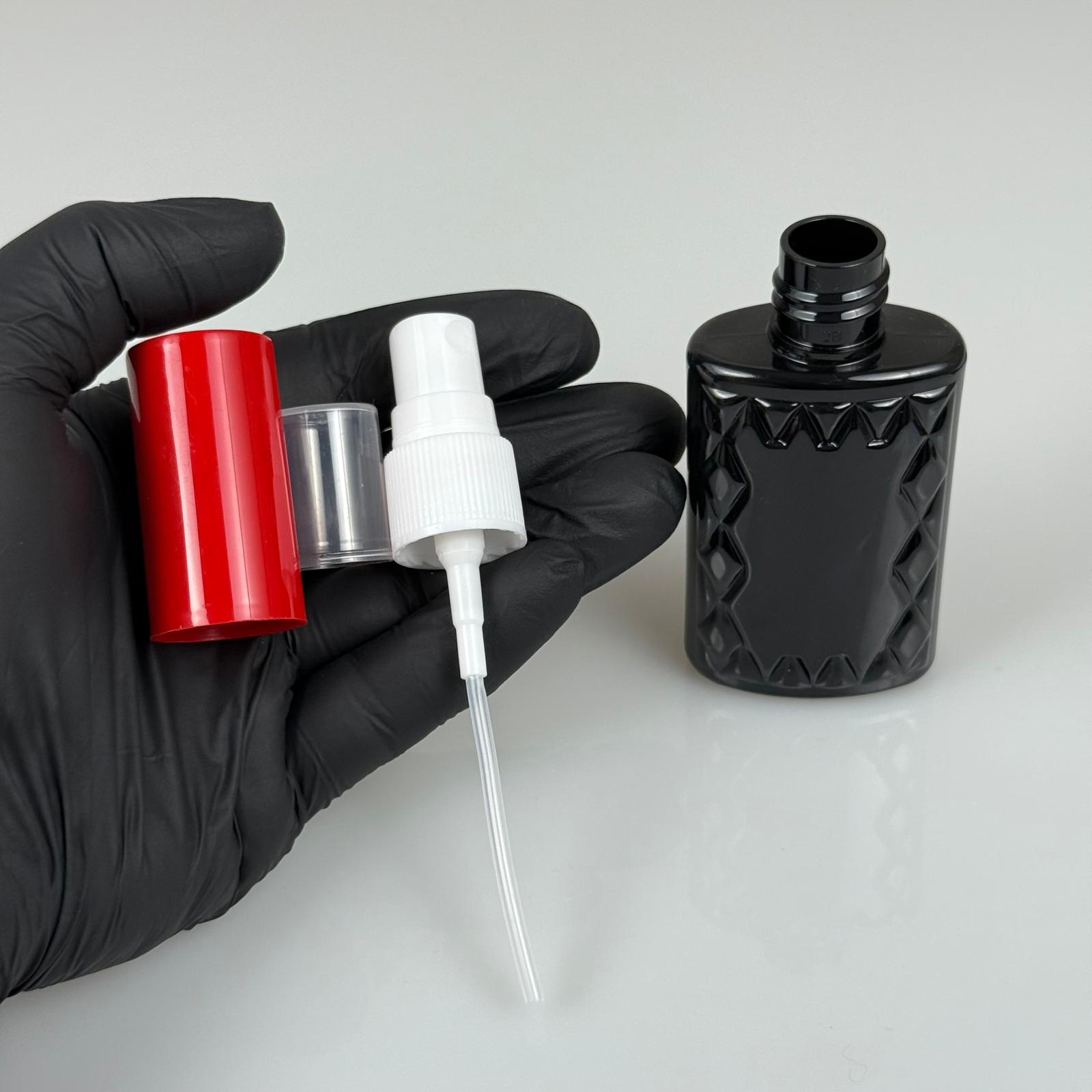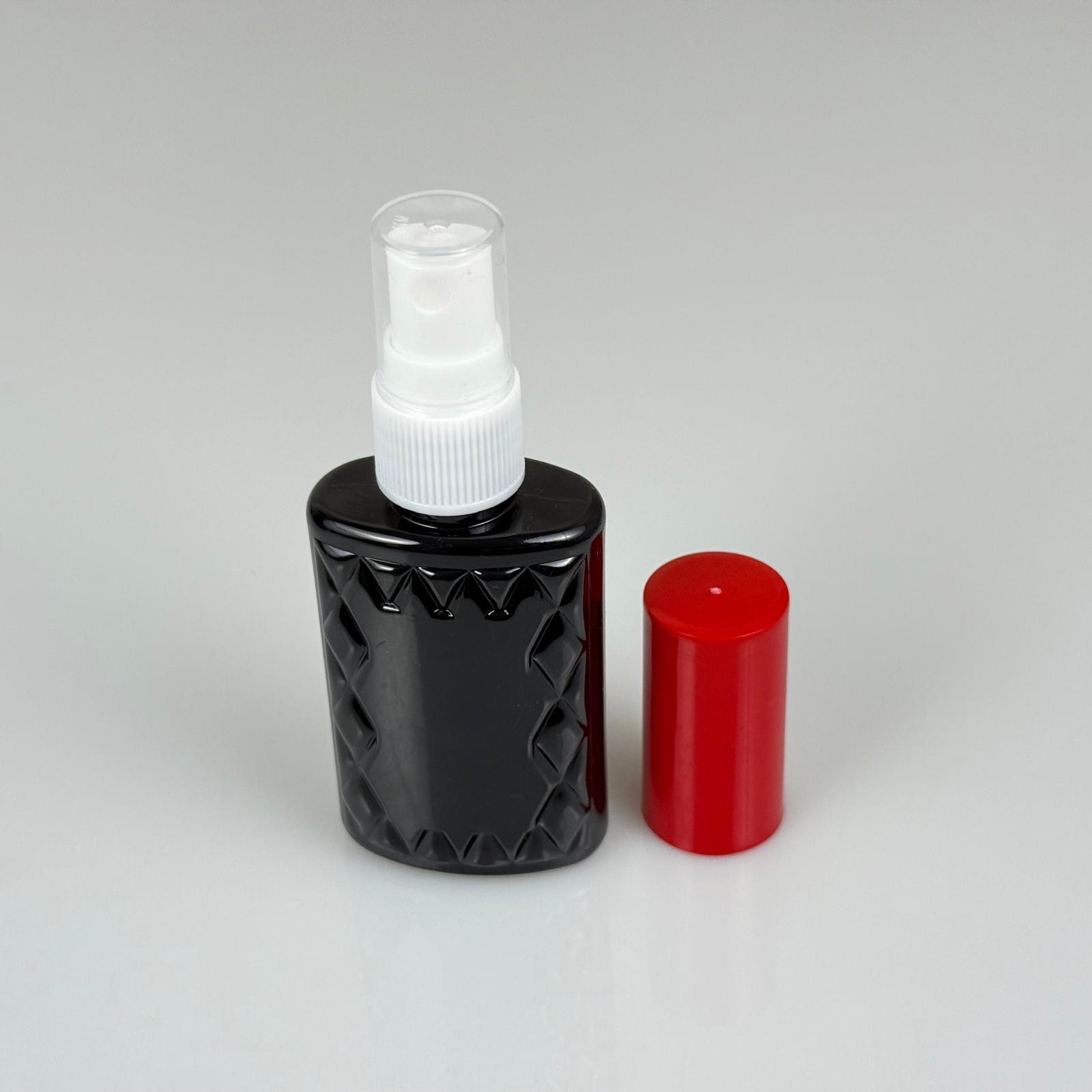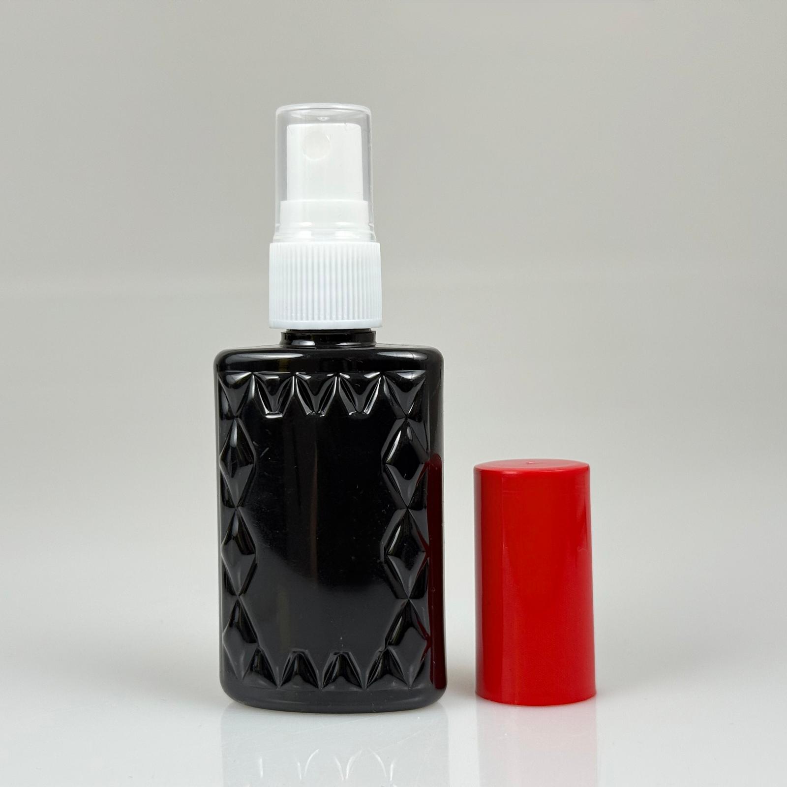 50 CC SİYAH PET KÖŞELİ PARFÜM ŞİŞESİ - BEYAZ SPREYLİ - KIRMIZI KORUMA KAPAKLI - 50 ML PLASTİK PARFÜM - KOLONYA ŞİŞESİ - 1300 adet