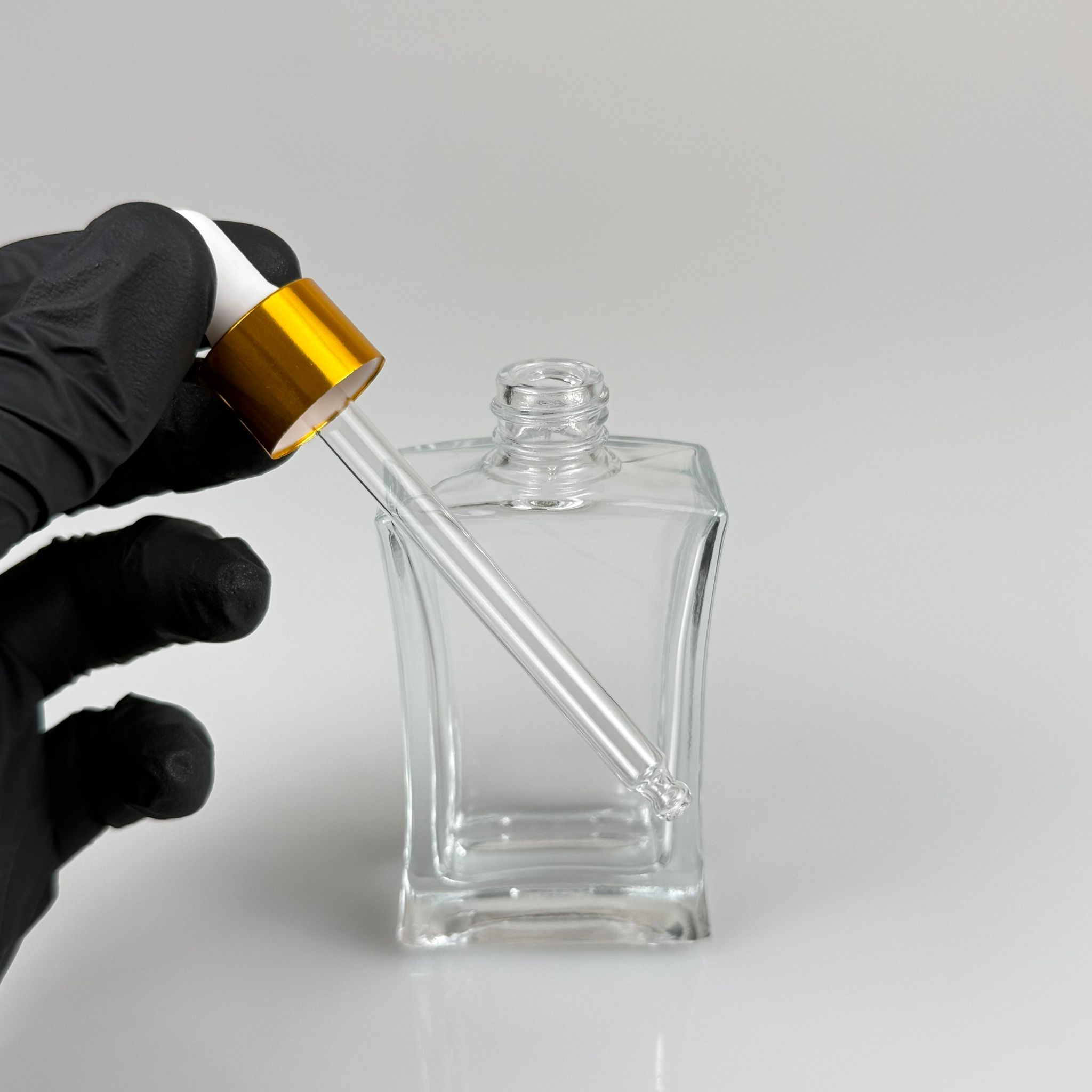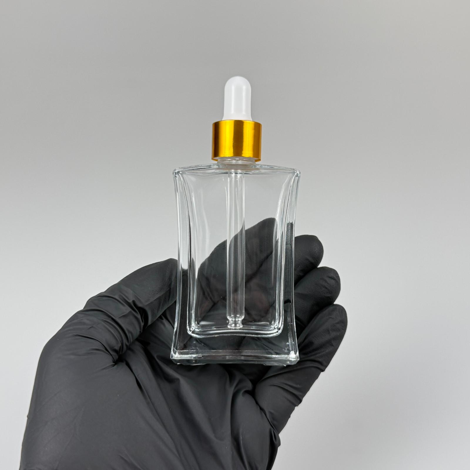 50 CC YASSI DİKDÖRTGEN KÖŞELİ CAM DAMLALIKLI ŞİŞE - BEYAZ EMZİK - GOLD METALİK KAPAK - 50 ML CAM DAMLALIKLI ŞİŞE - DAMLALIKLI BOŞ ŞİŞE - 120 adet