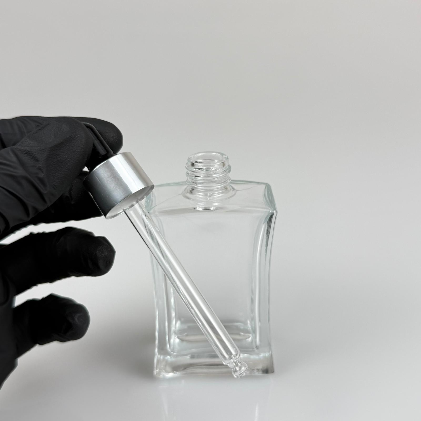 50 CC YASSI DİKDÖRTGEN KÖŞELİ CAM DAMLALIKLI ŞİŞE - SİYAH EMZİK - GÜMÜŞ METALİK KAPAK - 50 ML CAM DAMLALIKLI ŞİŞE - DAMLALIKLI BOŞ ŞİŞE - 120 adet