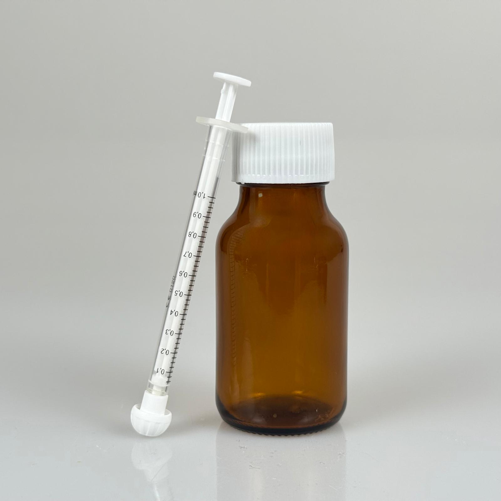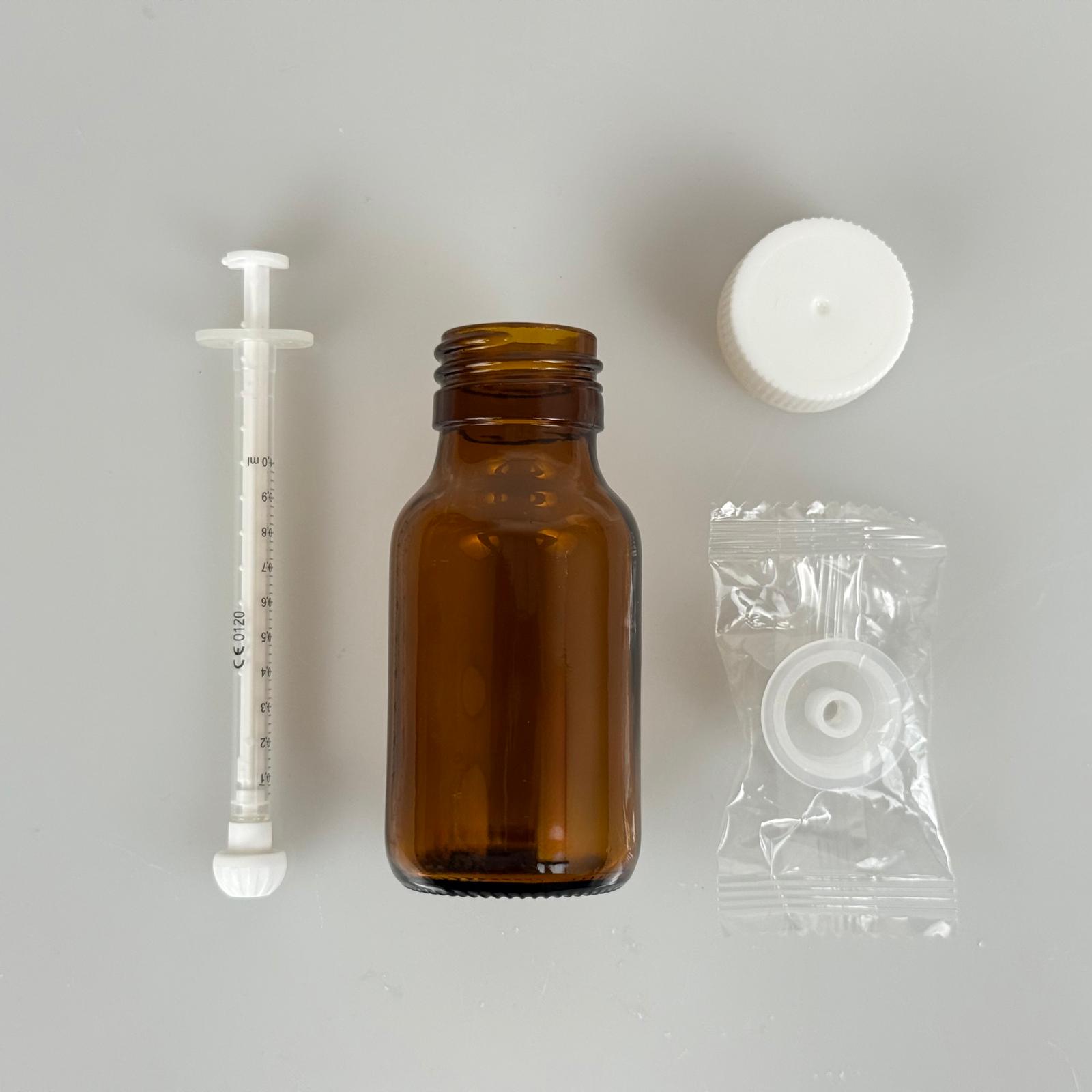 50 ML CAM ECZA ŞİŞESİ + 1 ML DOZAJ PİPETİ + DOZAJ TIPASI + CONTALI PLASTİK KAPAK TAKIM - 154 adet
