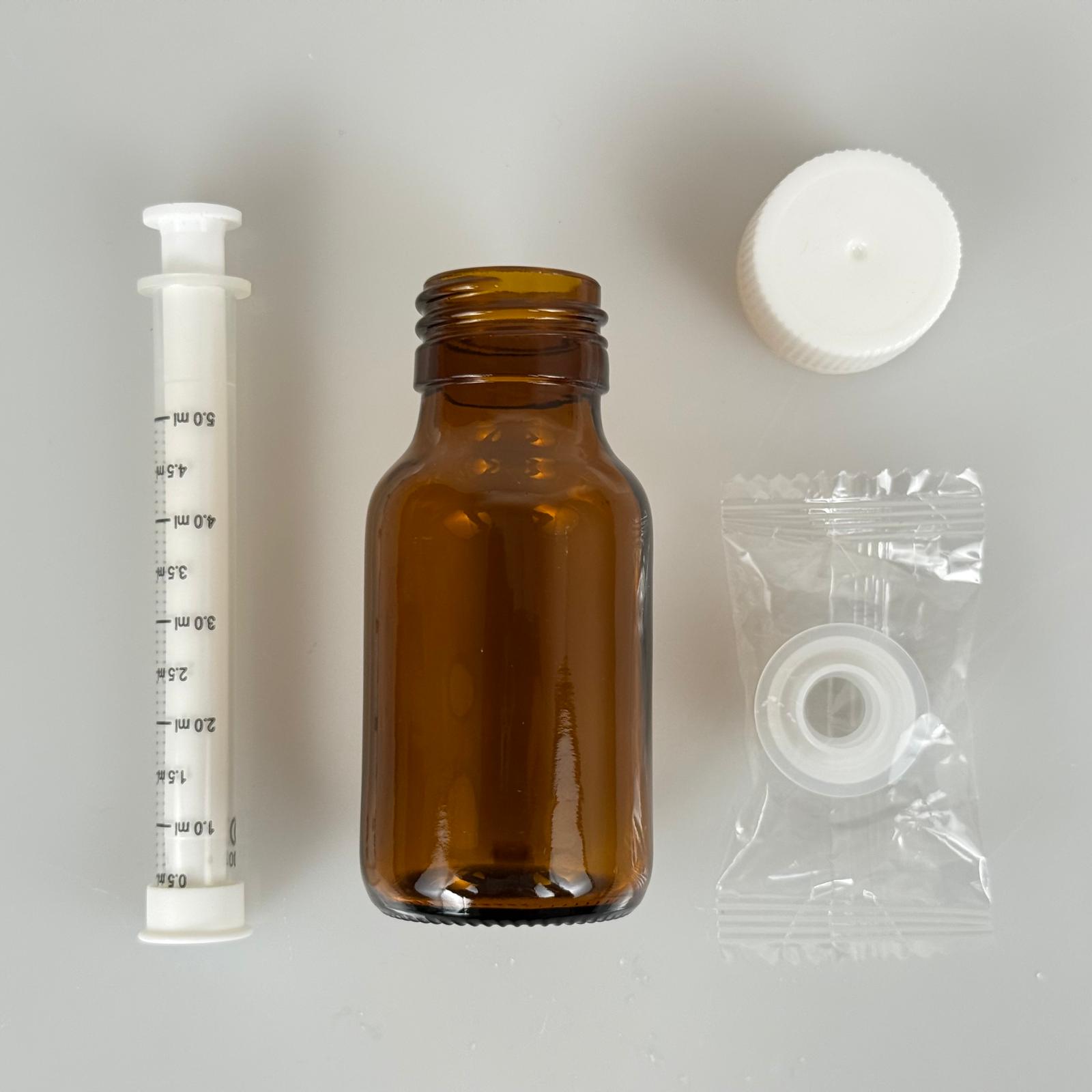 50 ML CAM ECZA ŞİŞESİ + 5 ML DOZAJ PİPETİ + DOZAJ TIPASI + CONTALI PLASTİK KAPAK TAKIM - 154 adet