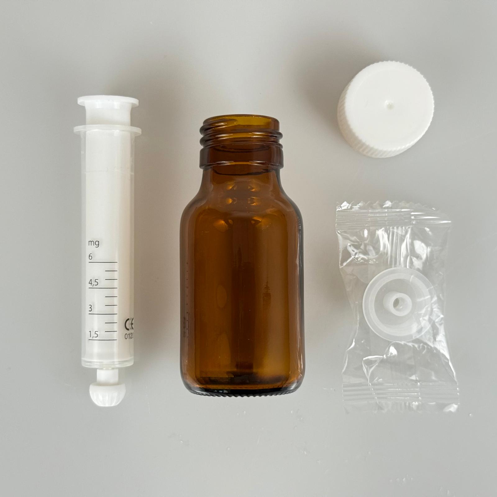 50 ML CAM ECZA ŞİŞESİ + 6 ML DOZAJ PİPETİ + DOZAJ TIPASI + CONTALI PLASTİK KAPAK TAKIM - 154 adet