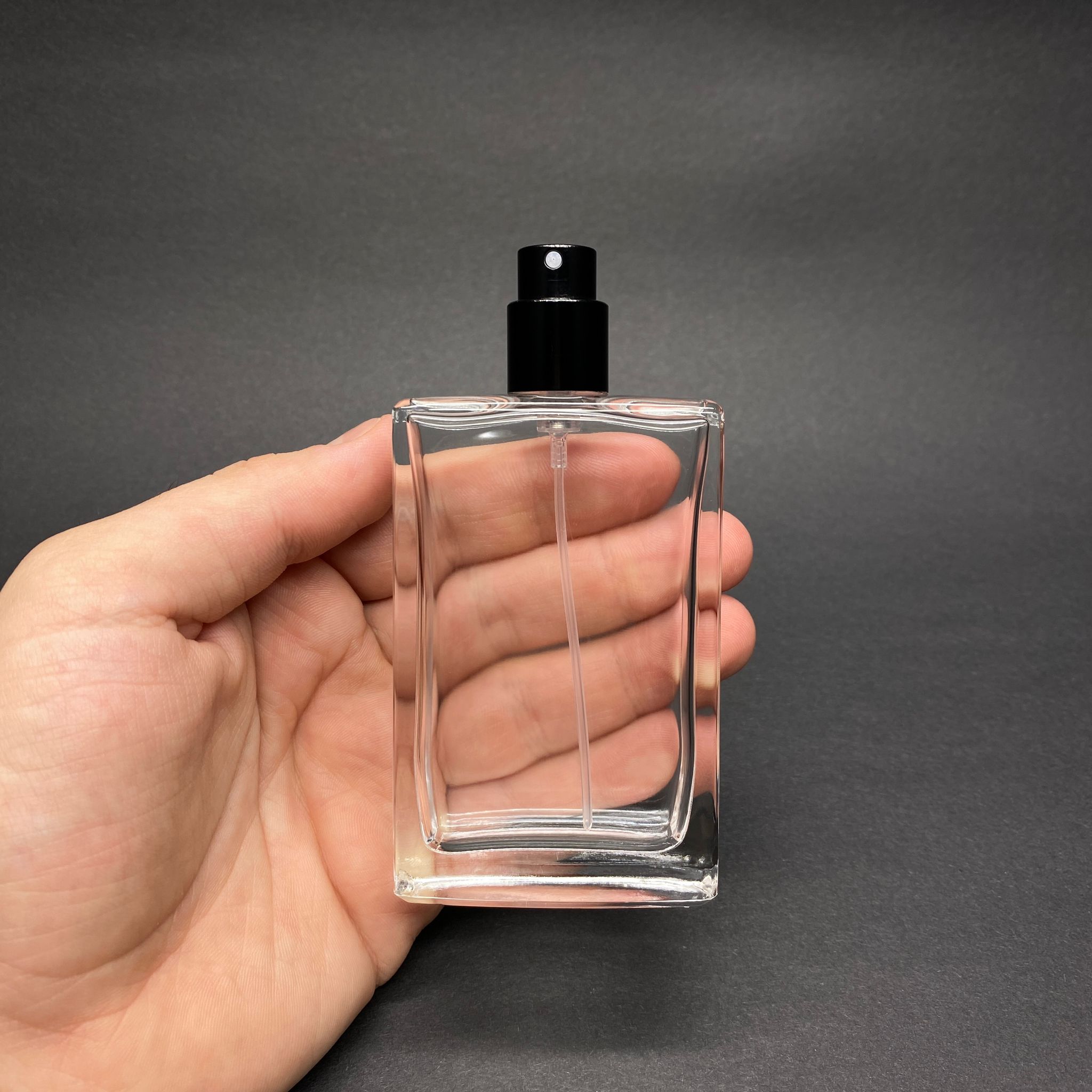 50 ML DİKDÖRTGEN MODEL SOSSA PARFÜM ŞİŞESİ - SİYAH METAL SPREYLİ (AĞIZ 15 MM GEÇME KOLAY KAPAMA) - 99 adet