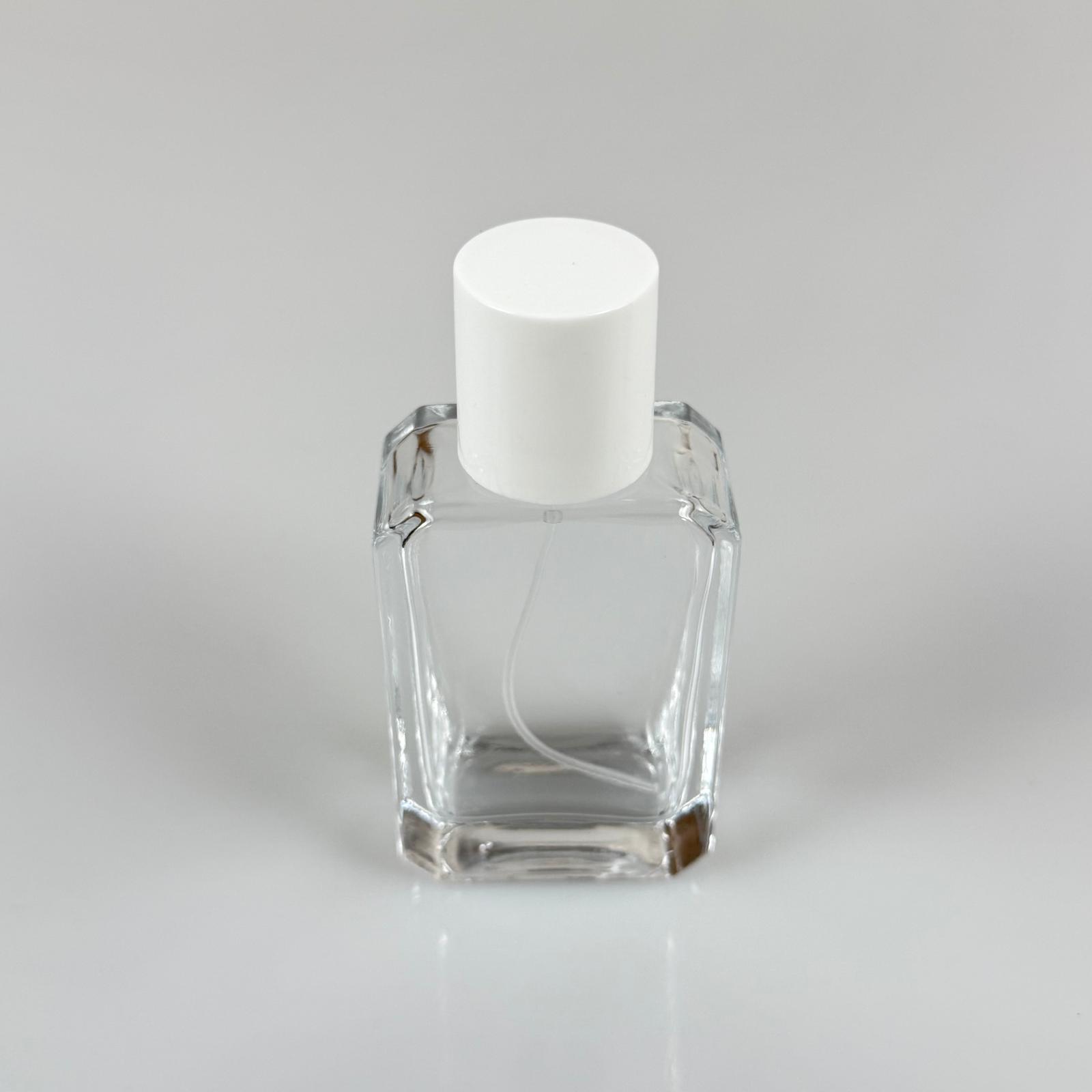 50 ML KÖŞELİ MODEL ANGEL PARFÜM ŞİŞESİ - GÜMÜŞ METAL SPREYLİ + BEYAZ KAPAKLI (AĞIZ 15 MM GEÇME KOLAY KAPAMA) - 80 adet