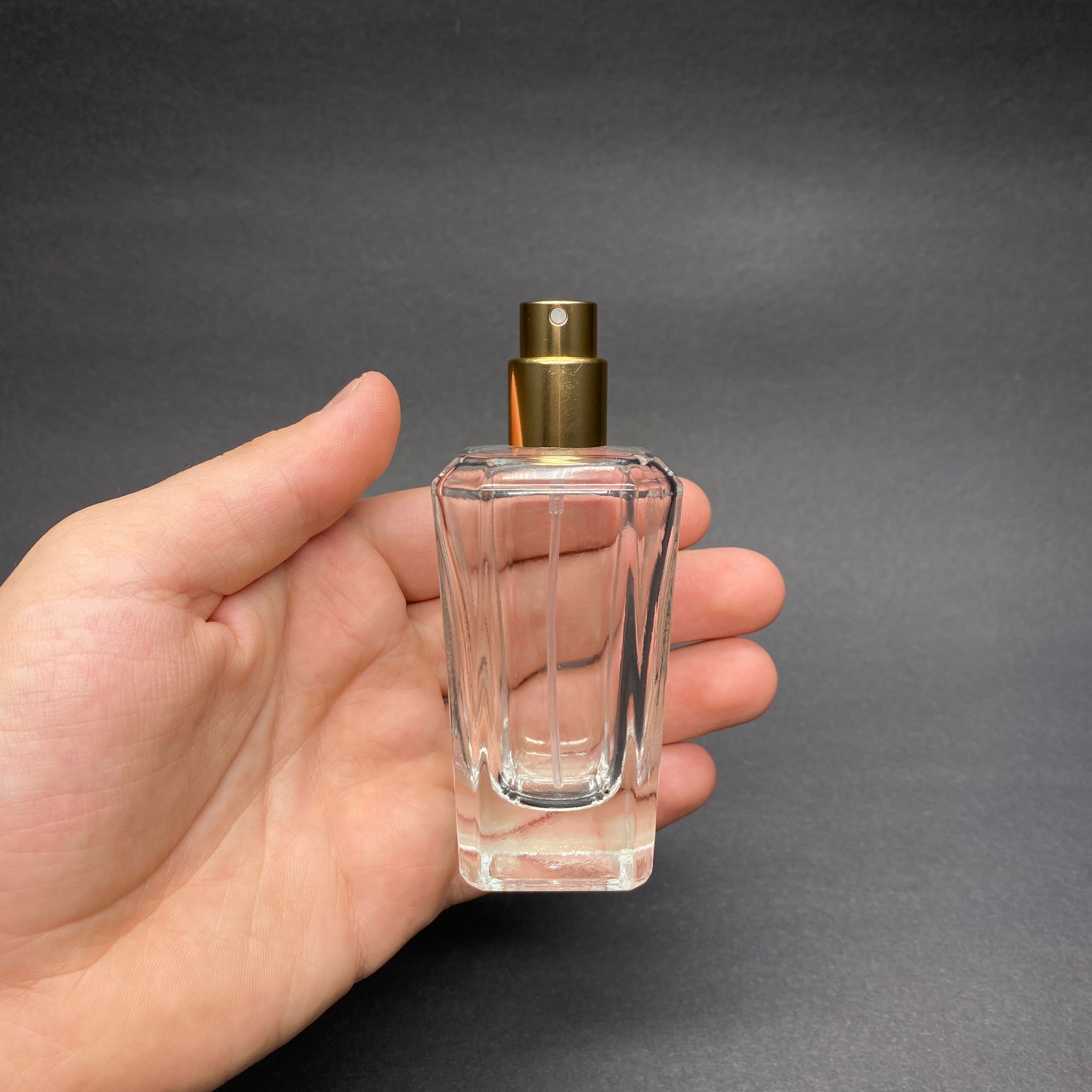 50 ML KÖŞELİ MODEL MİRA PARFÜM ŞİŞESİ - GOLD METAL SPREYLİ (AĞIZ 15 MM GEÇME KOLAY KAPAMA) - 240 adet