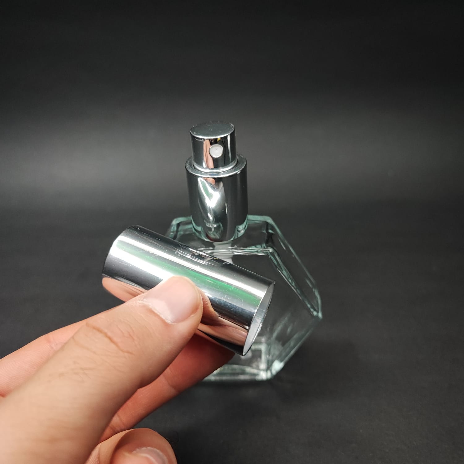 50 ML LÜKS VİDALI VALF ÇEVİRME PARFÜM ŞİŞELERİ - 50 CC ALTIGEN ŞEFFAF CAM ŞİŞE - GÜMÜŞ METAL SPREYLİ KAPAKLI SET - 162 adet