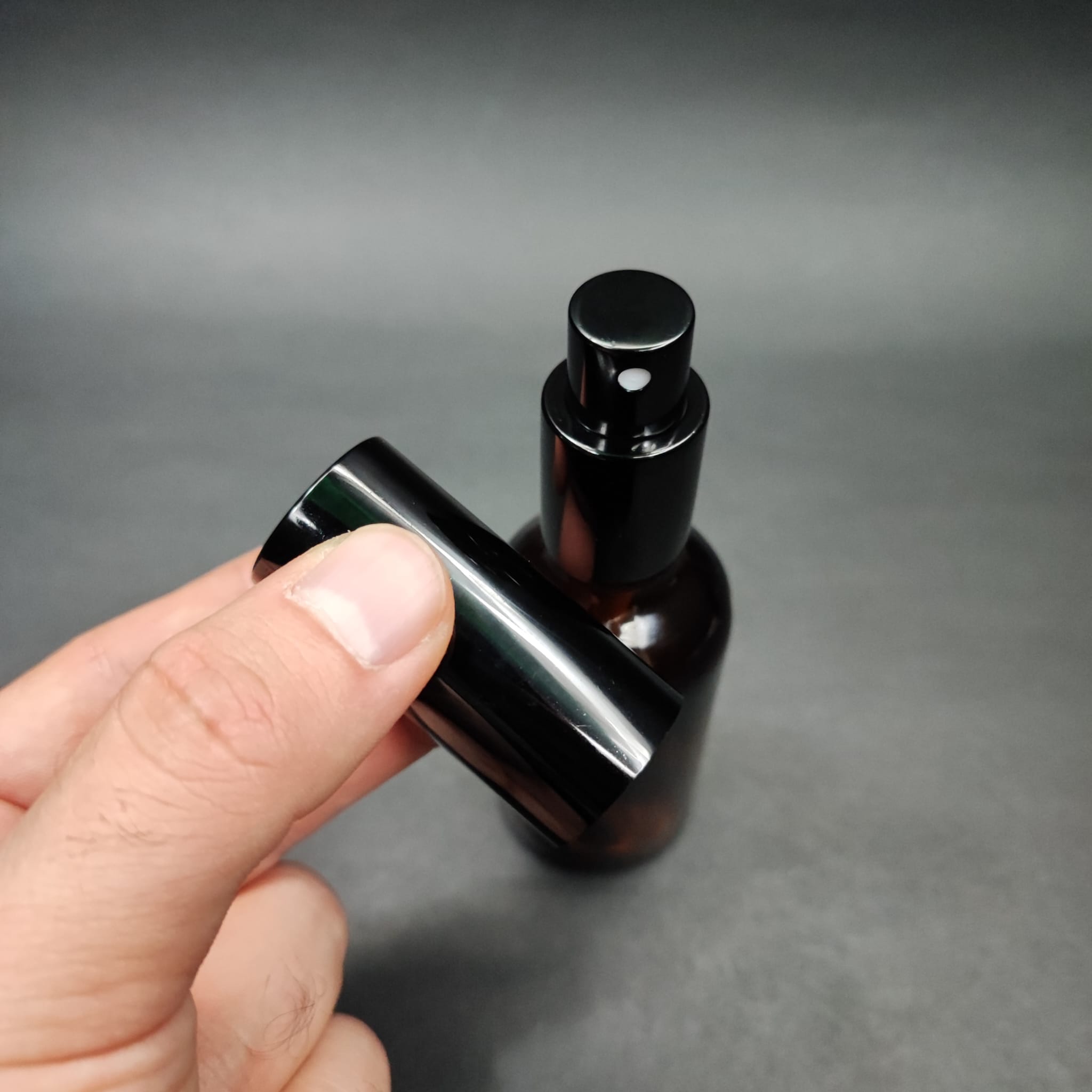 50 ML LÜKS VİDALI VALF ÇEVİRME PARFÜM ŞİŞELERİ - 50 CC AMBER CAM ŞİŞE - SİYAH METAL SPREYLİ KAPAKLI SET - 264 adet