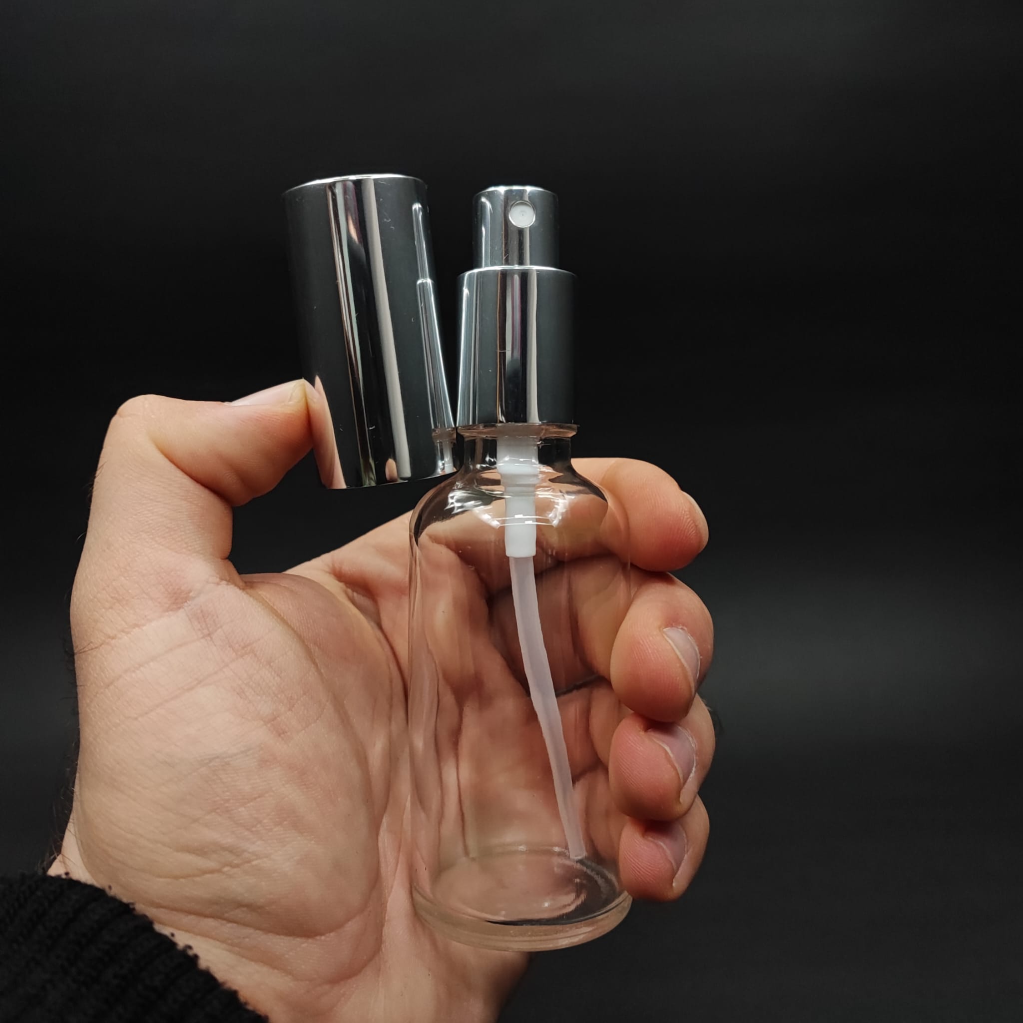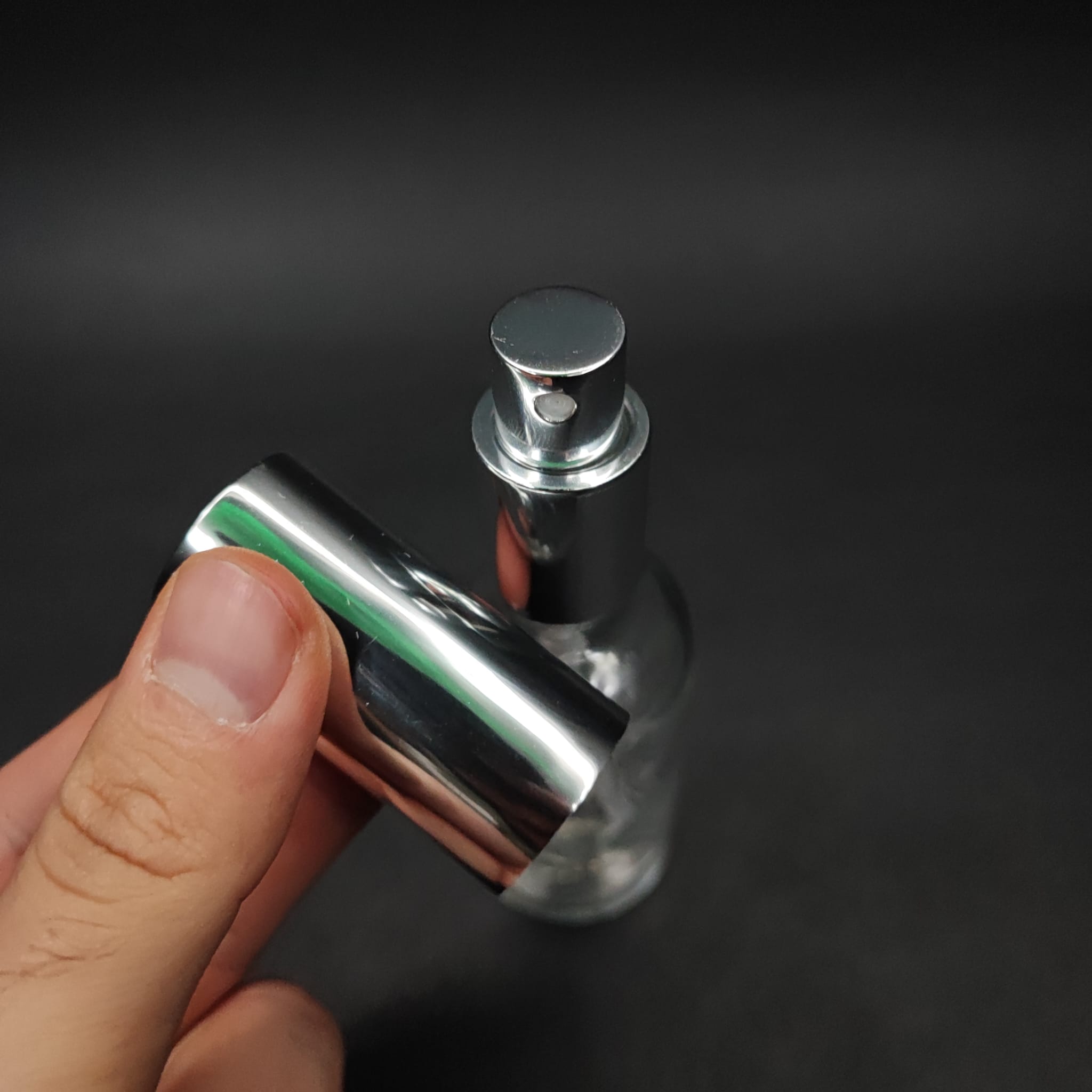 50 ML LÜKS VİDALI VALF ÇEVİRME PARFÜM ŞİŞELERİ - 50 CC ŞEFFAF CAM ŞİŞE - GÜMÜŞ METAL SPREYLİ KAPAKLI SET - 264 adet