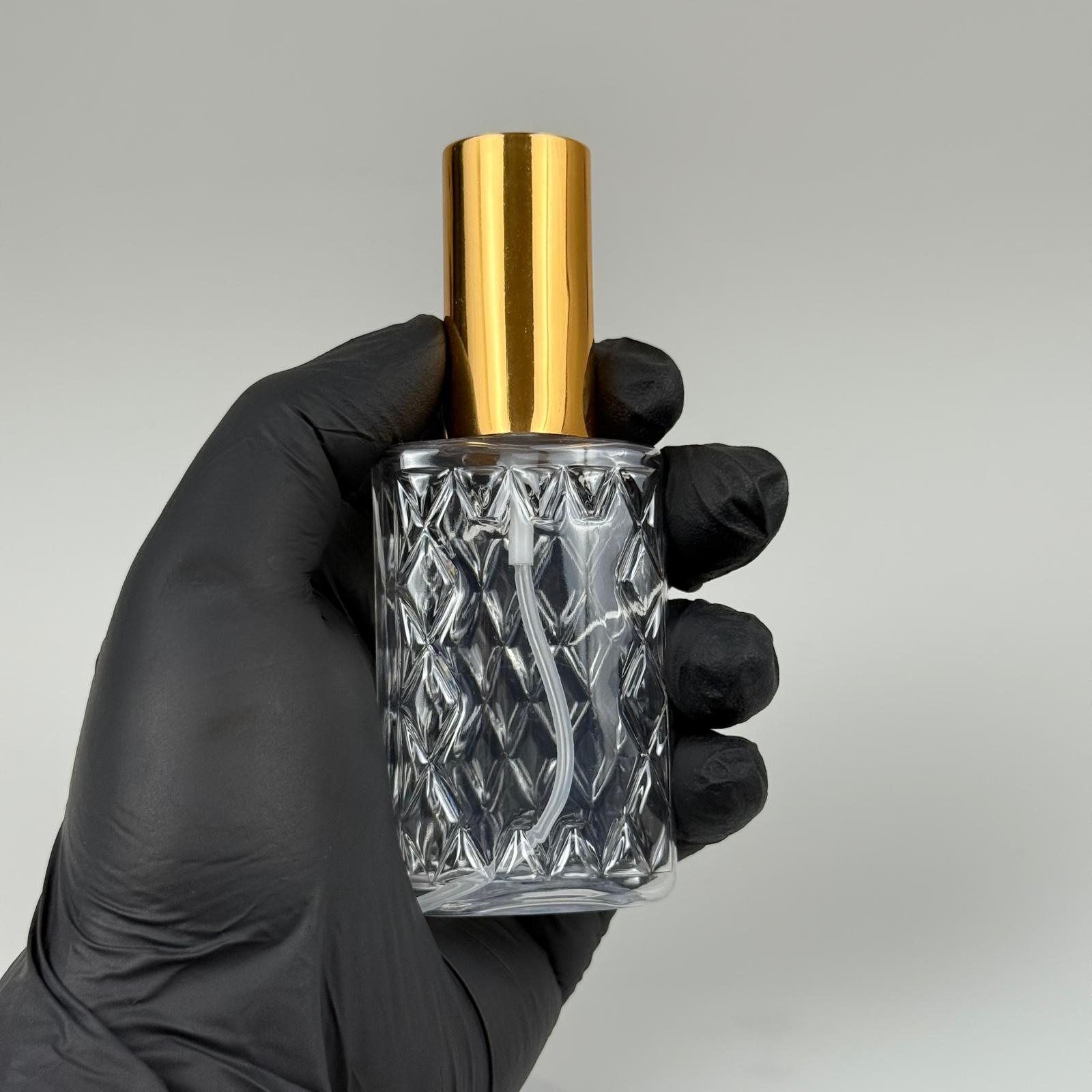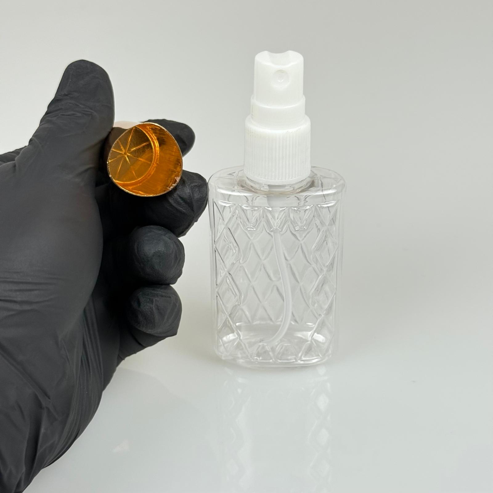50 ML PET KOLONYA, PARFÜM VB ŞİŞELERİ - METAL ALÜMİNYUM GOLD KAPAK + VİDALI SPREY + 50 CC KÖŞELİ ŞEFFAF ŞİŞE SET TAKIM - 1000 adet