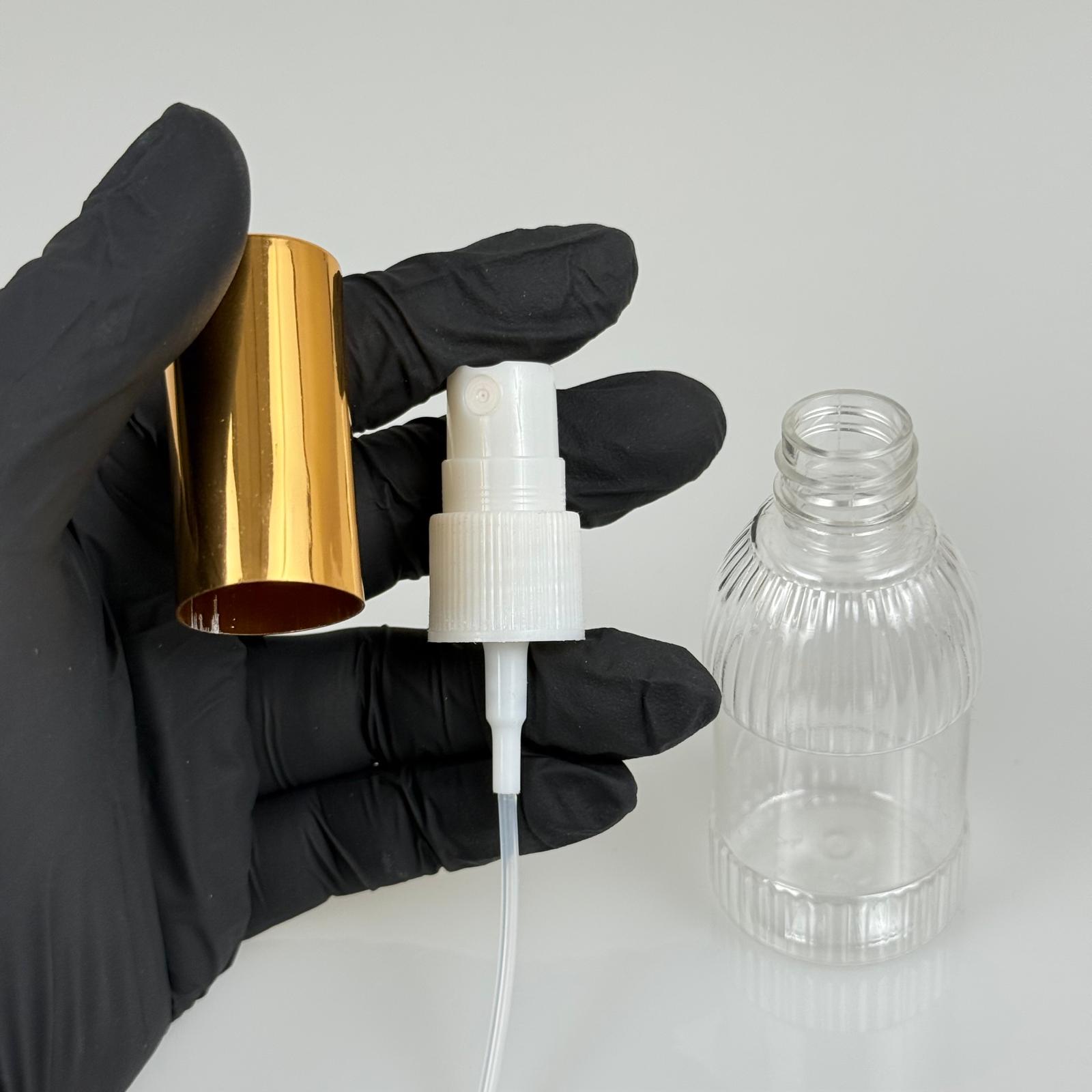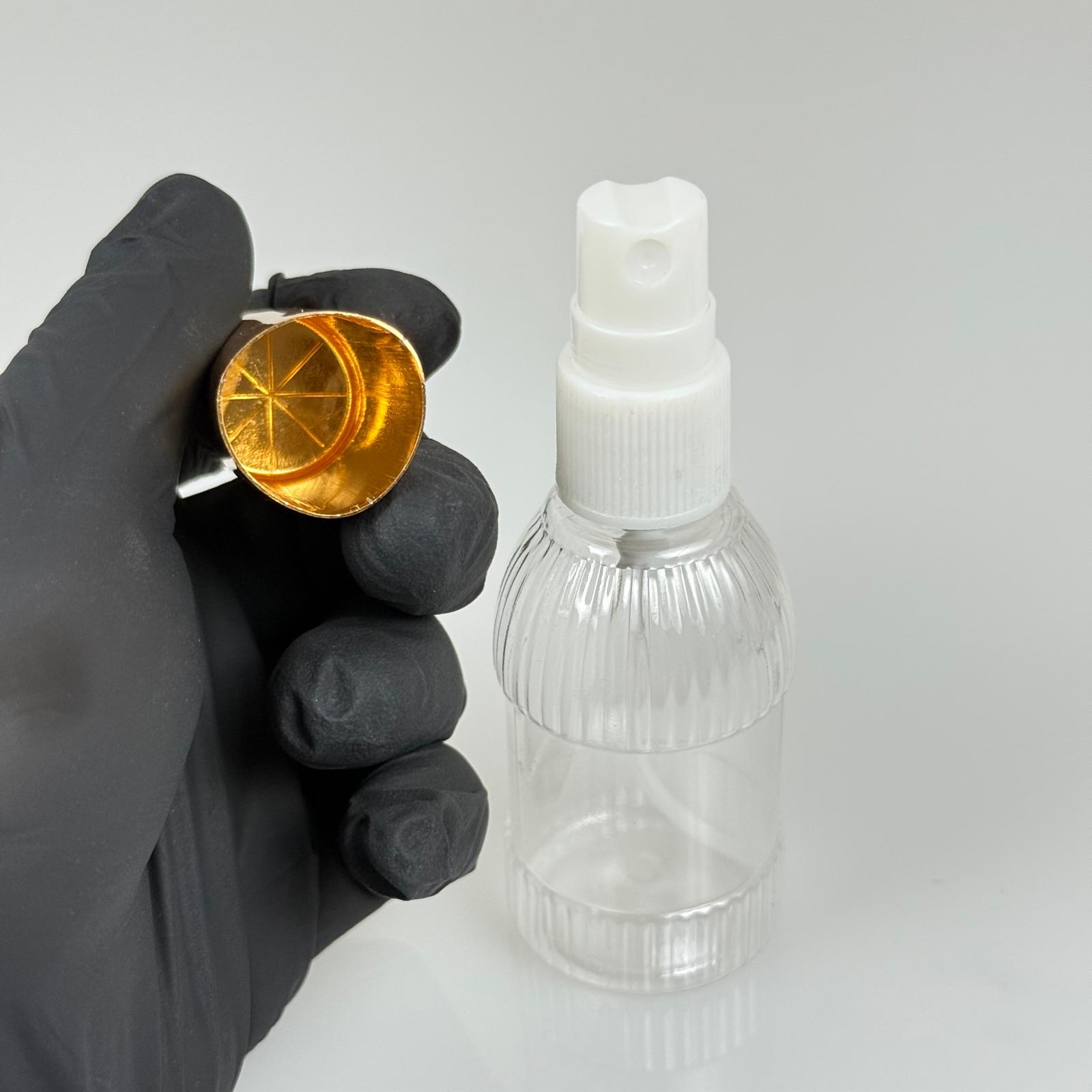 50 ML PET KOLONYA, PARFÜM VB ŞİŞELERİ - METAL ALÜMİNYUM GOLD KAPAK + VİDALI SPREY + 50 CC MANDALİNA MODEL ŞİŞE SET TAKIM - 1000 adet