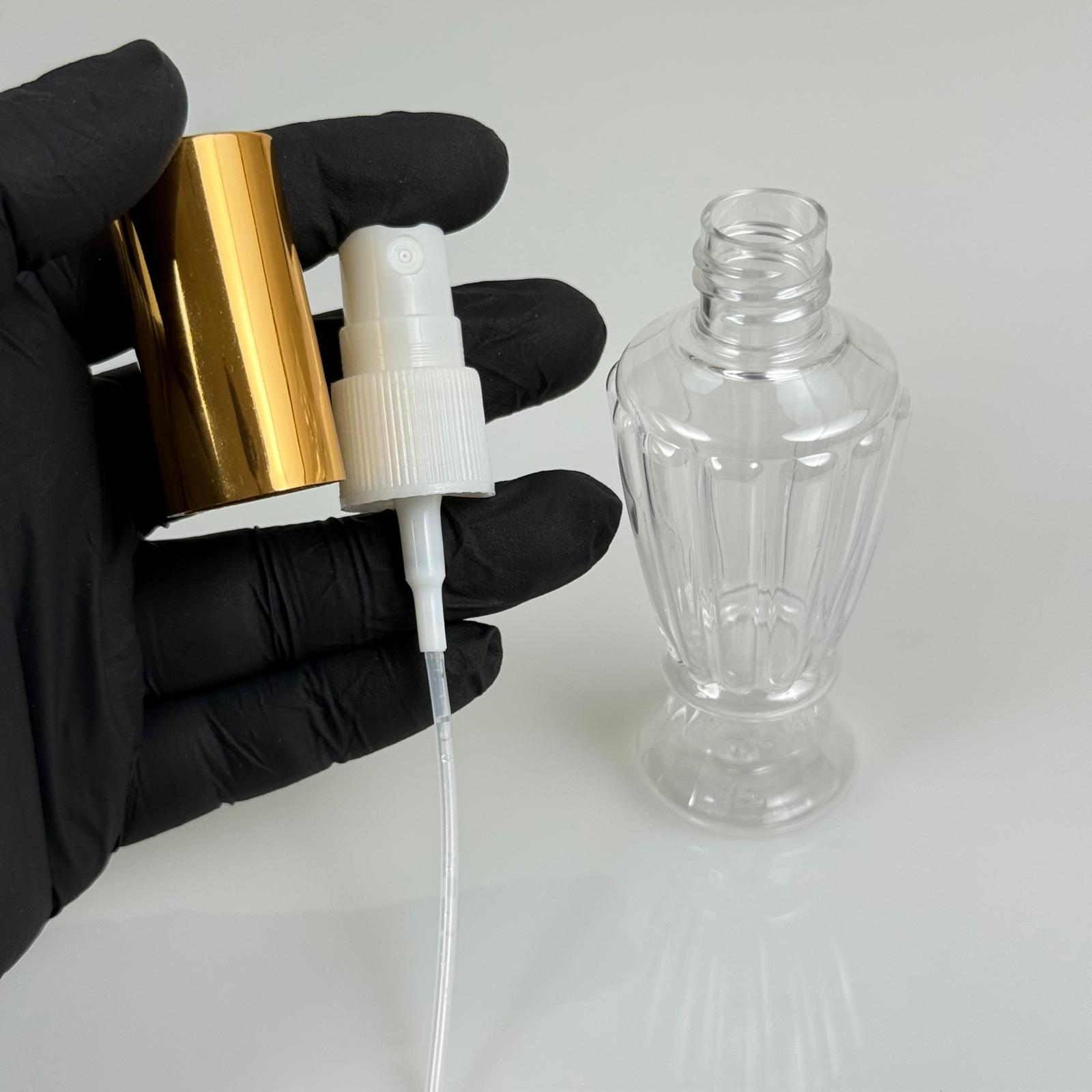 50 ML PET KOLONYA, PARFÜM VB ŞİŞELERİ - METAL ALÜMİNYUM GOLD KAPAK + VİDALI SPREY + 50 CC VAZO HÜRREM ŞİŞE SET TAKIM - 1000 adet