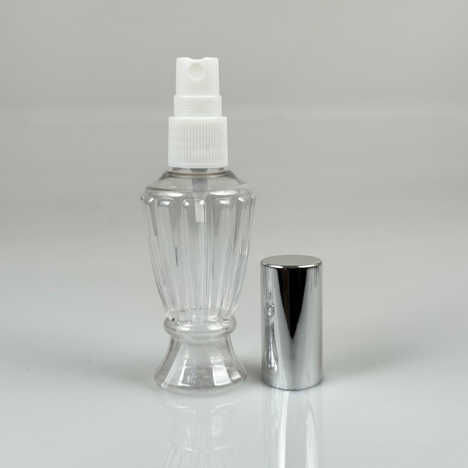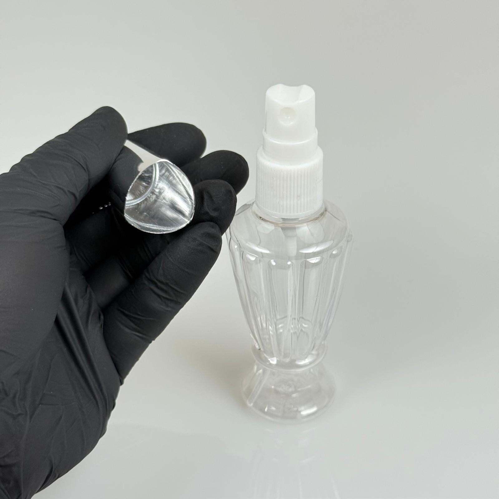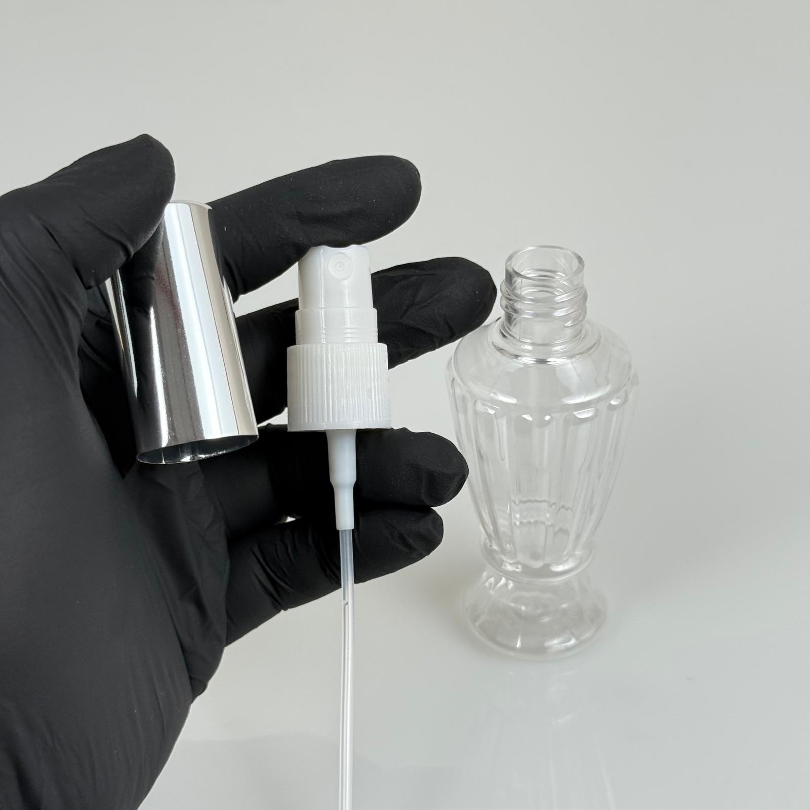50 ML PET KOLONYA, PARFÜM VB ŞİŞELERİ - METAL ALÜMİNYUM GÜMÜŞ KAPAK + VİDALI SPREY + 50 CC VAZO HÜRREM ŞİŞE SET TAKIM - 1000 adet