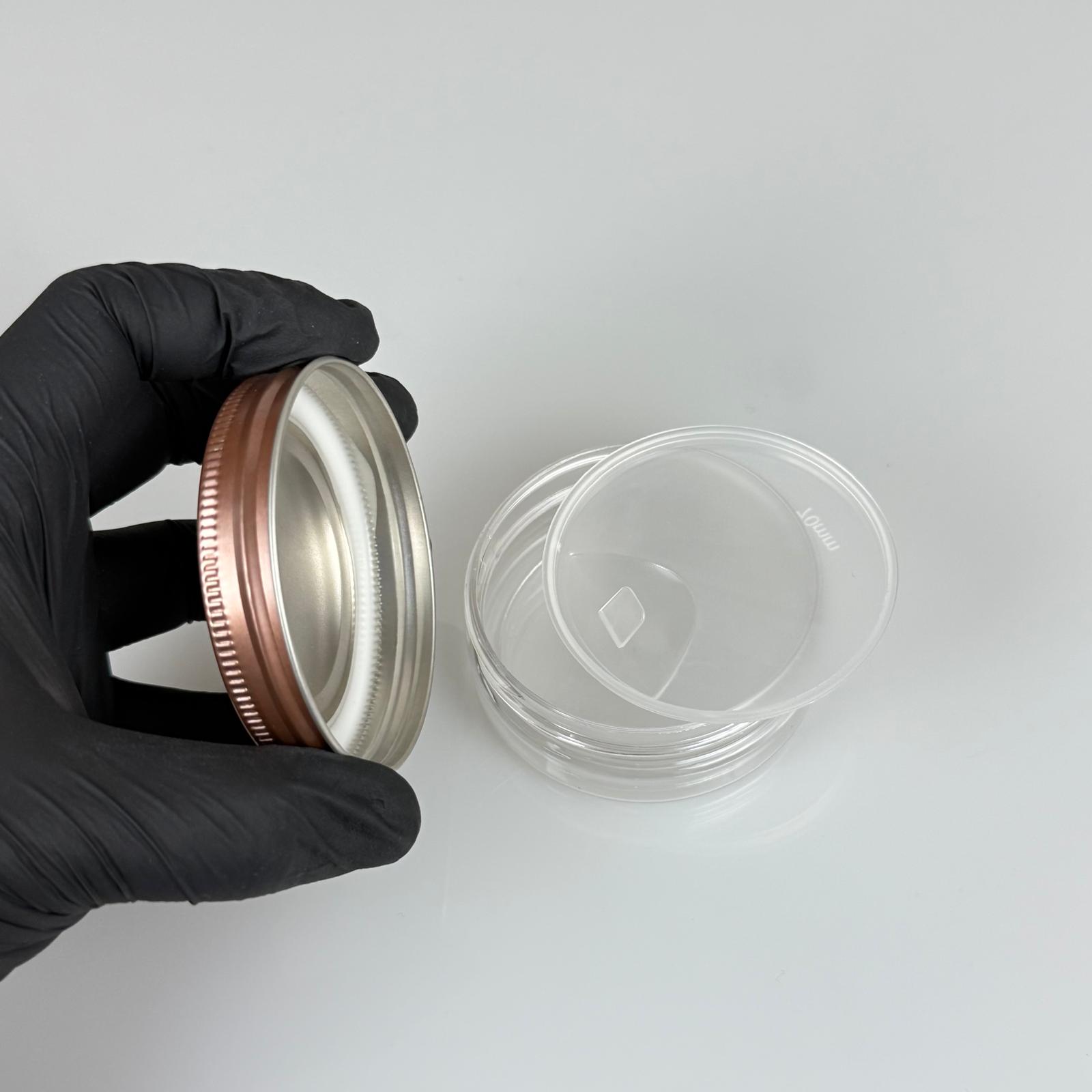 50 ML SERT PET KAVANOZ + BRONZ METAL KAPAK + İÇ TIPA - 50 CC KALIN ŞEFFAF PLASTİK KAVANOZ BRONZ METAL KAPAKLI İÇ TIPALI TAKIM - KREM KAVANOZLARI - 1000 adet